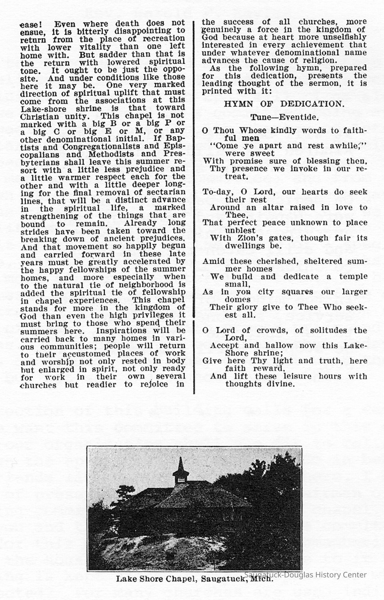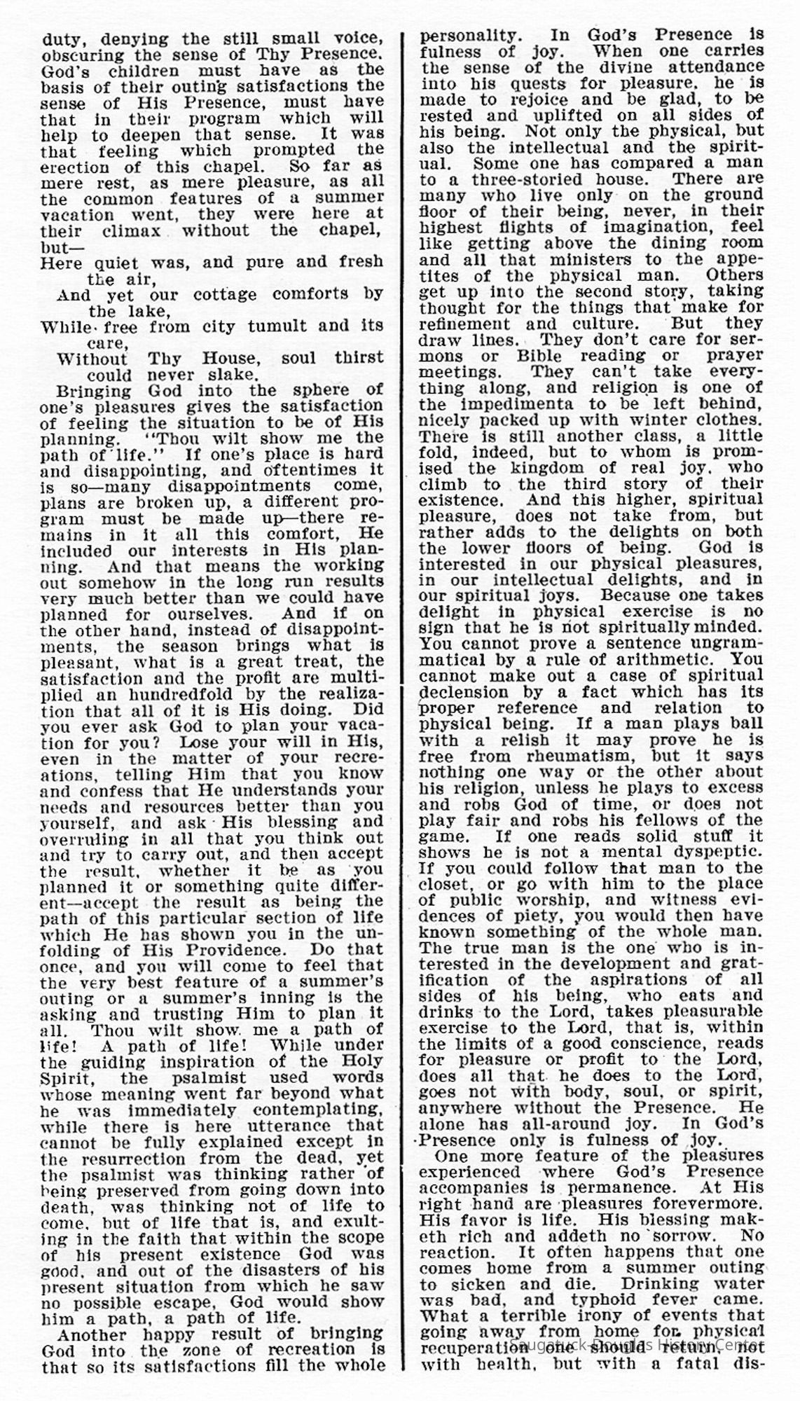 The Ideal Pleasure Resort, Sermon preached by Rev. G. N. Luccock at the dedication of Lake Shore Chapel, near Saugatuck, Mich., July 17, 1904.Context