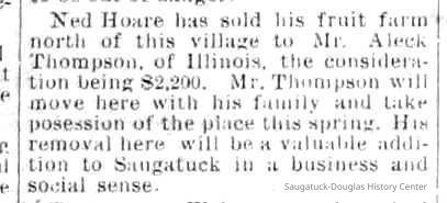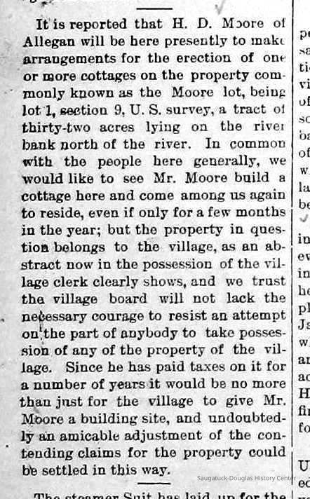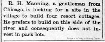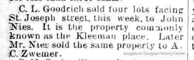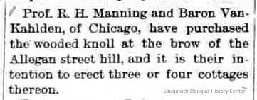 Collier, Thomas c1841-1871, Robb, A., Spencer, Michael B. 1820-1891, D. Gerber & Son Tannery/Tannery Hill, Gerber, Daniel 1820-1890, Ox-Bow House/Old Library/Douglas Athletic Clubhouse/Methodist Episcopal Church, Weed, William H. "Will" 1866-1909, Goodrich, Charles Langdon 1825-1903, Nies, Jan "John" 1836-1920, Zwemer, Adrian Cornelius 1835-1909, Billings, Charles Clark 1843-1924, Morrison, Stephen A. Jr. 1815-1905, Newnham, Stephen Lynne "Squire" 1854-1945, Moore, R.M., Thompson, Riley 1828-1908, Pfaff, August Sr. 1831-1903, Moore, Horace Duncan 1821-1915, Lakeshore Drive, Douglas, Willow Park/Mosquito Park