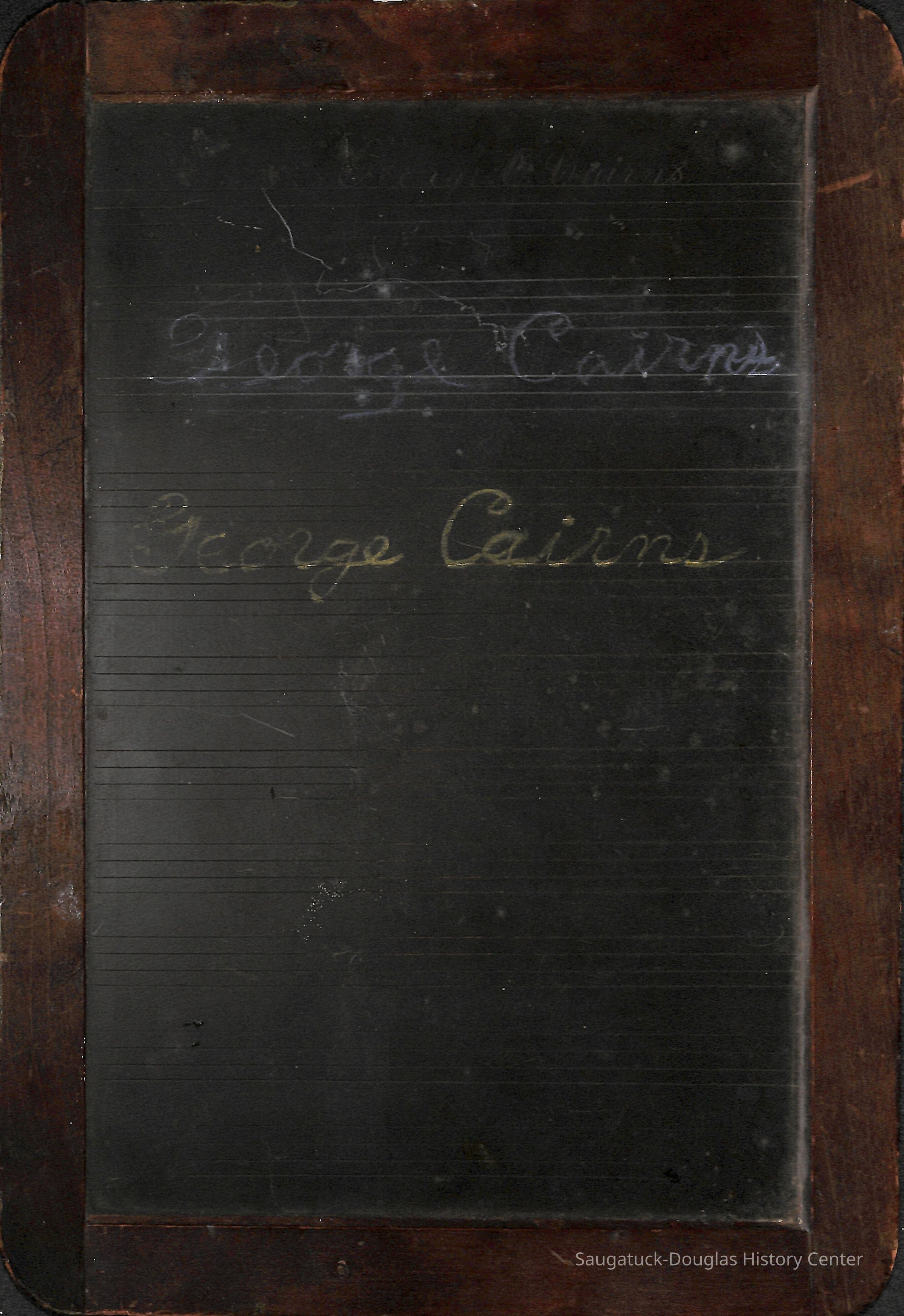 George O. Cairns signature and name engraved on reverse of slate.Collection