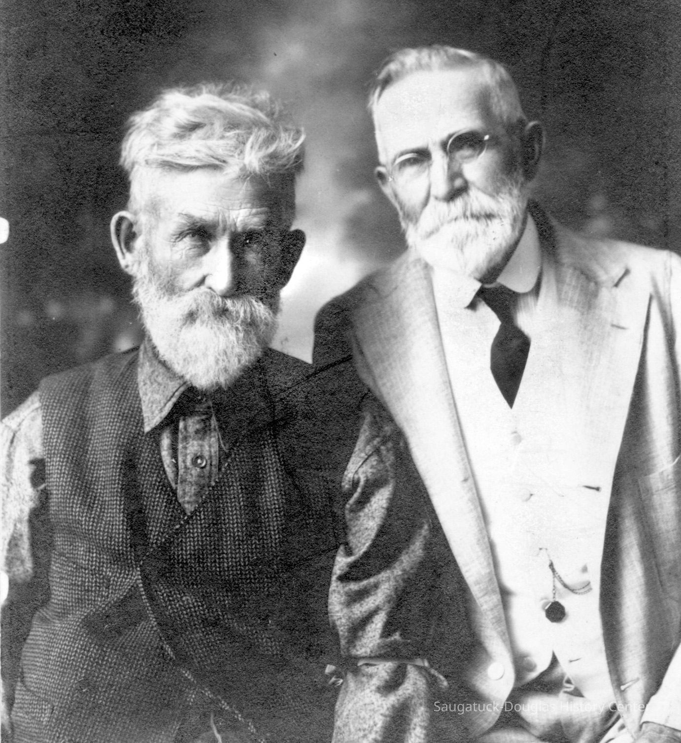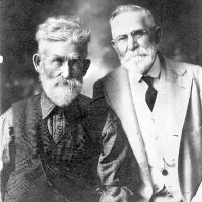 Charles Clark Billings (at left) and Scott Wilmoth Eddy, both men born in 1843 and Civil War veterans, pose for a photo in honor of their 80th birthdays.
