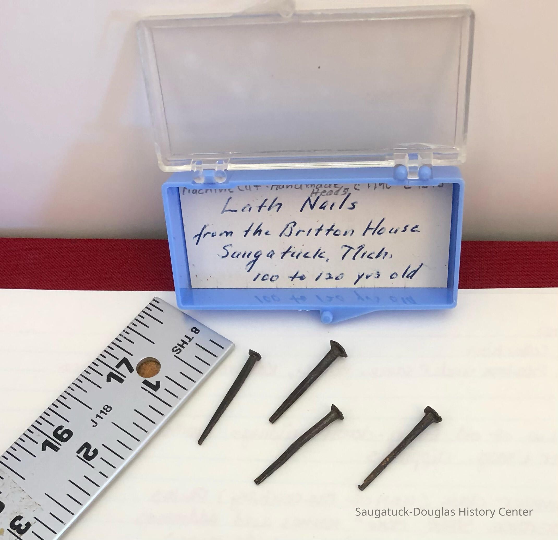 100-120 plus years old. Nails are in plastic hinged box 3 inch by 1 1/4 inch in size.Cataloged By