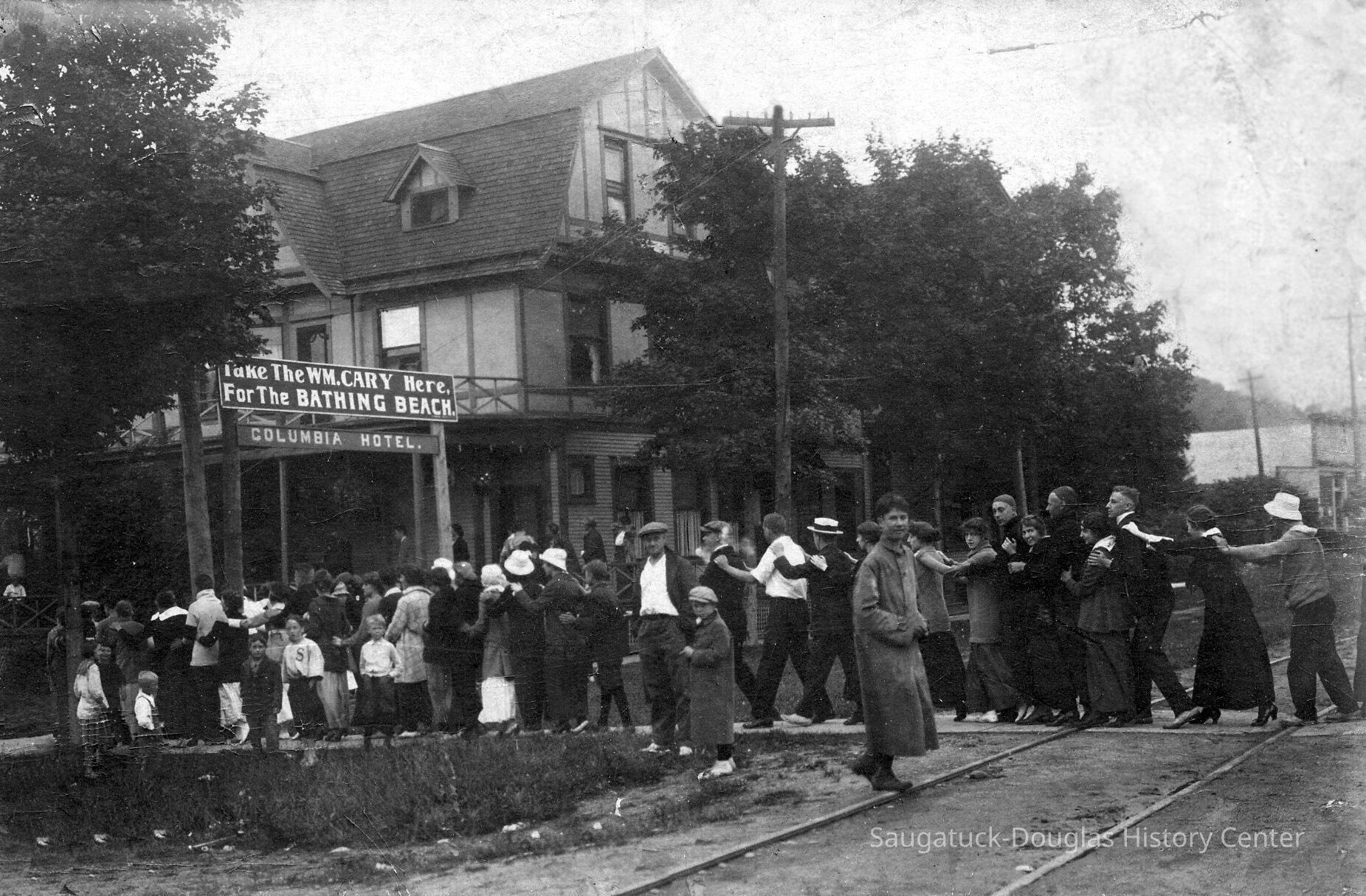 But, Hotel owners in Saugatuck Township were dealt a severe blow in 1907. After years of effort by opponents of “demon rum” the Township finally voted for "Local Option"--a state law which allowed local governments to ban the sale of alcoholic beverages. Since the bar business was important to the profitability of the hotel, this development resulted in the Leiendeckers turning the operation over to J. F. Hall in 1911 on a lease. The place was renamed the Columbia Hotel and struggled for five years before the doors closed. After a four year shut-down the building was sold to became Hotel Saugatuck. Under several owners in the next forty years the Hotel Saugatuck and the Old Crow Bar prospered and became a local institution. The Johnson family acquired the business in 1959 and under the Coral Gables name has kept it going strong ever since. By Jack SheridanCollection