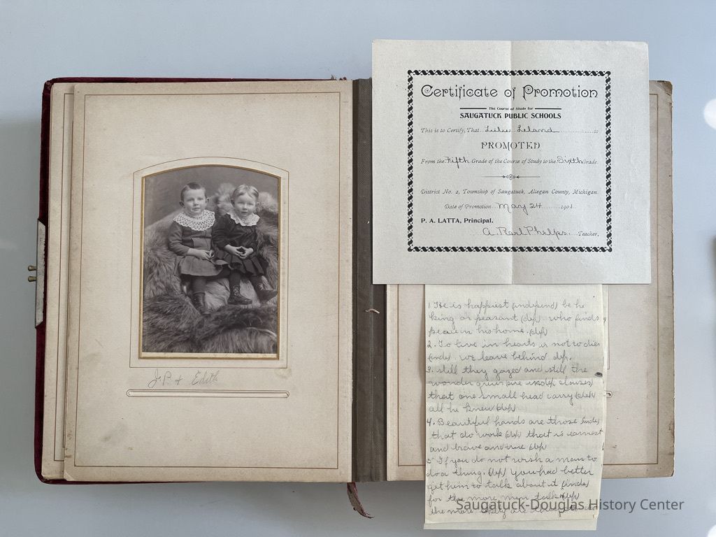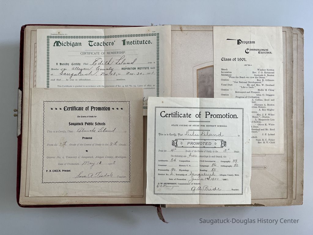 1902 Saugatuck Public Schools certificate of promotion for Blanche Leland