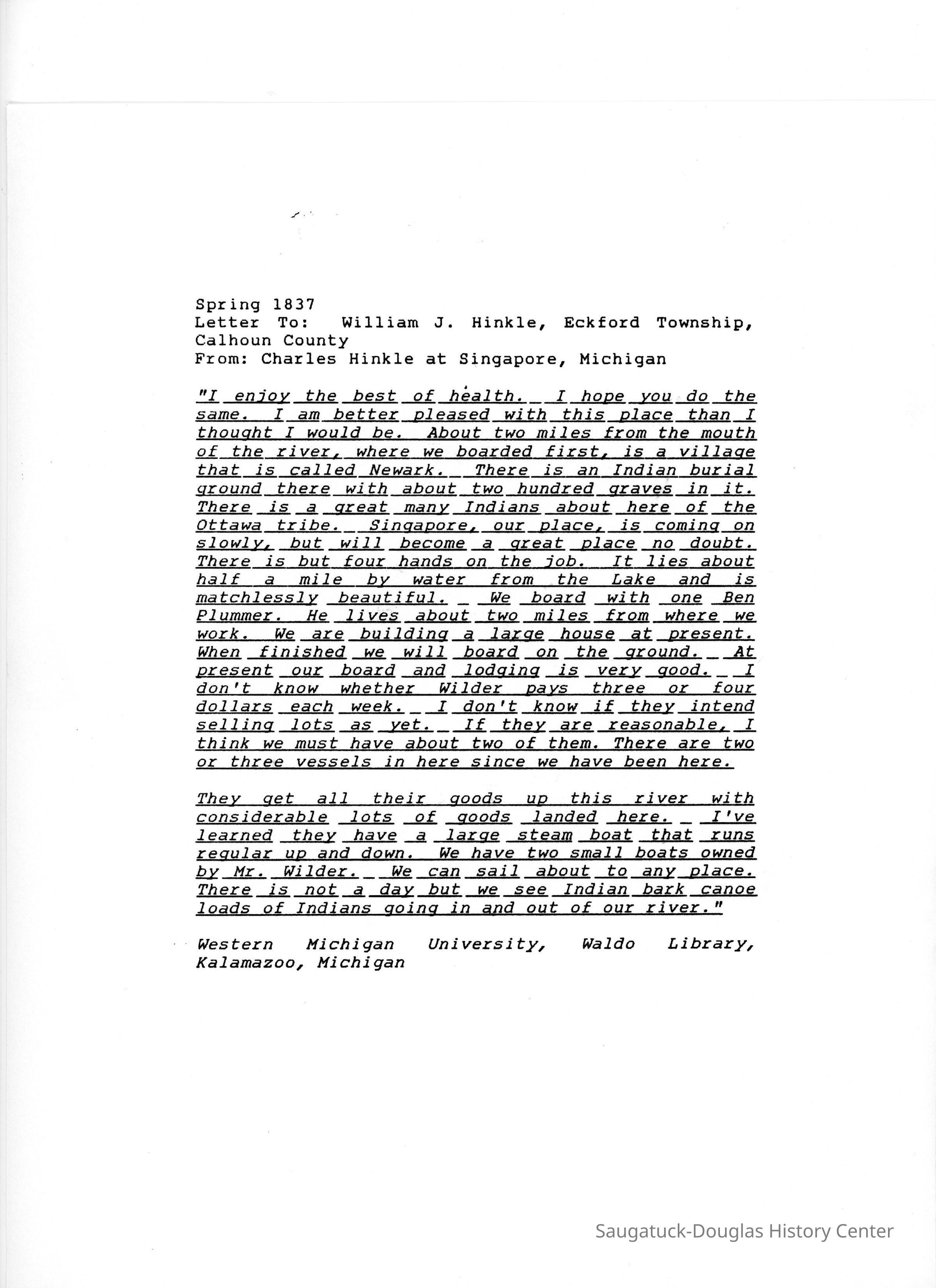 Letter from Charles Hinkle of Singapore (1837)Entry/Object ID