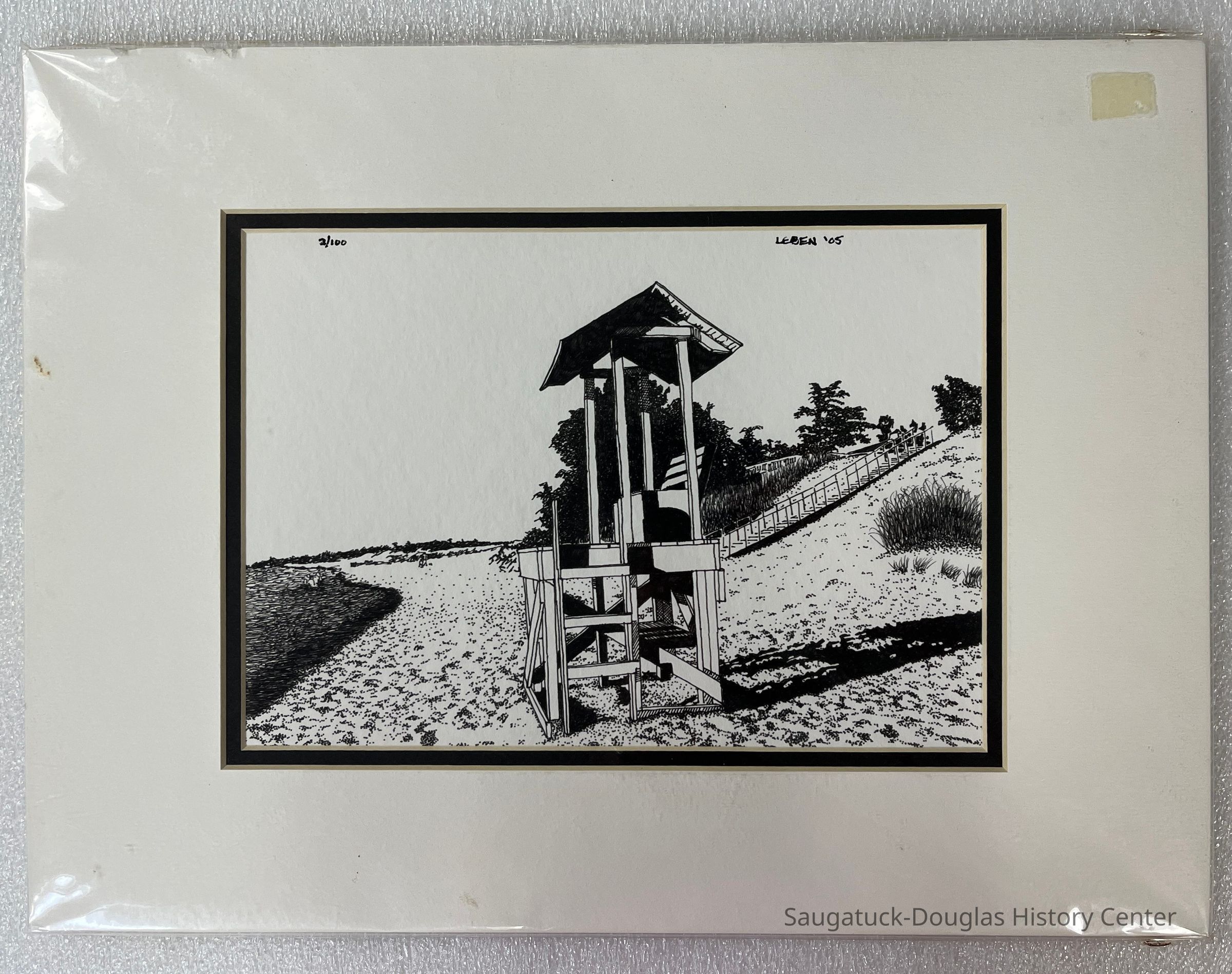 10" x 8" ink drawing of the lifeguard stand possibly at the Saugatuck OvalType of Drawing