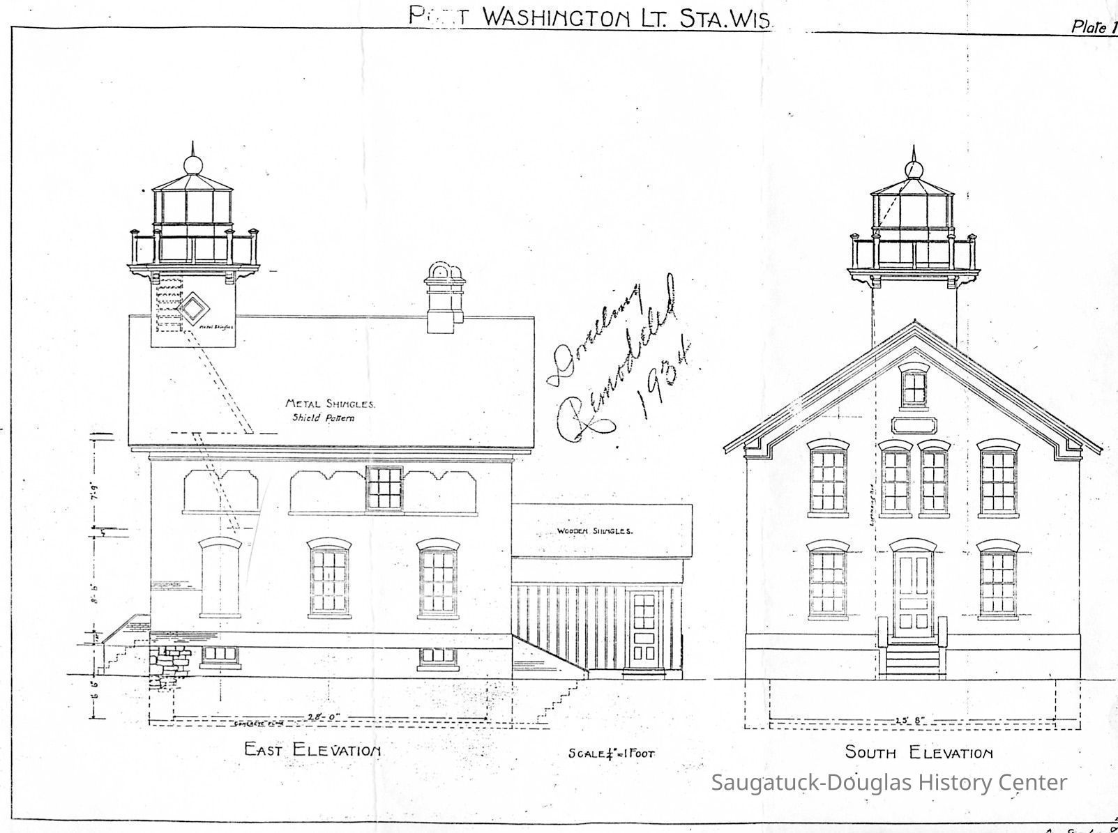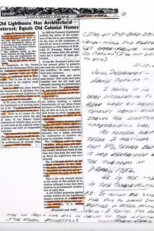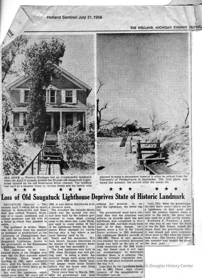 These are not photos of Art Deam's similar-looking cottage built on the same site after the lighthouse was destroyed by a tornado in 1956.Photograph Details