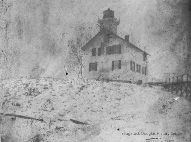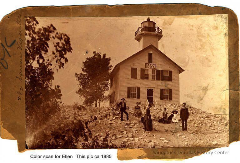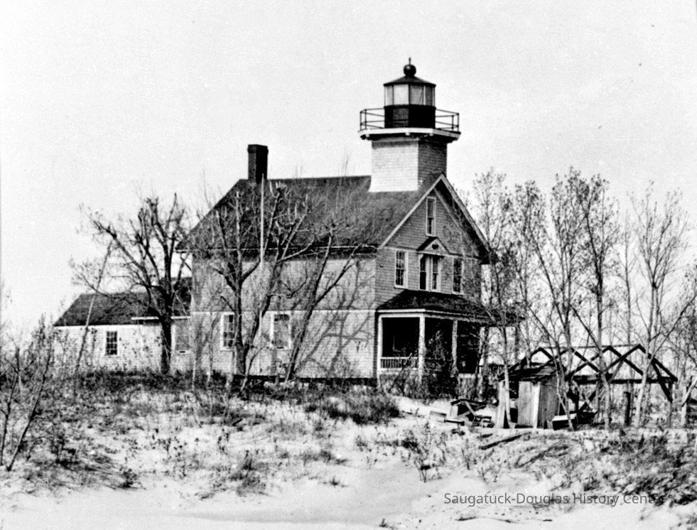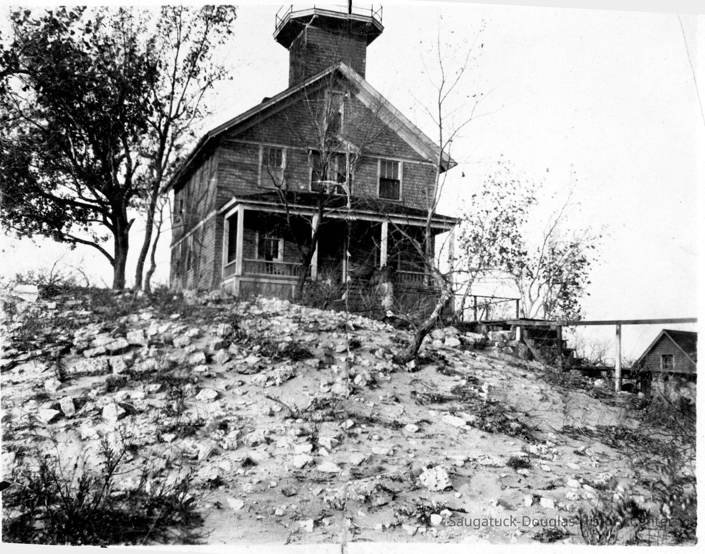 Multiple images of the Kalamazoo Lighthouse that was located on the north side of the old Kalamazoo River mouth.