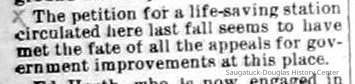 Newspaper articles about the lighthouse, a petition for a life-saving station and the donation of the land to build a new lighthouse.