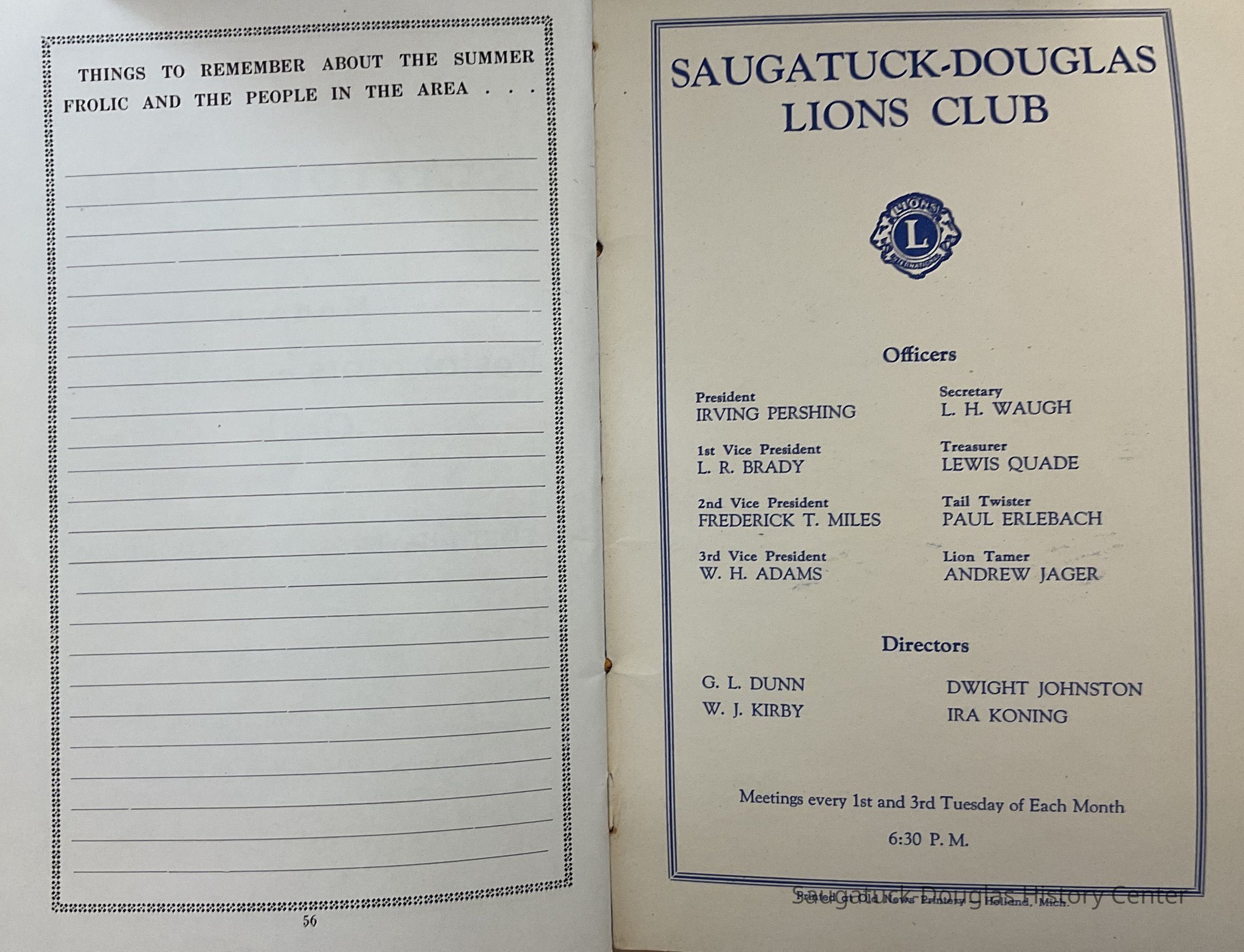 Lions Club, Saugatuck-DouglasDate(s) of Creation