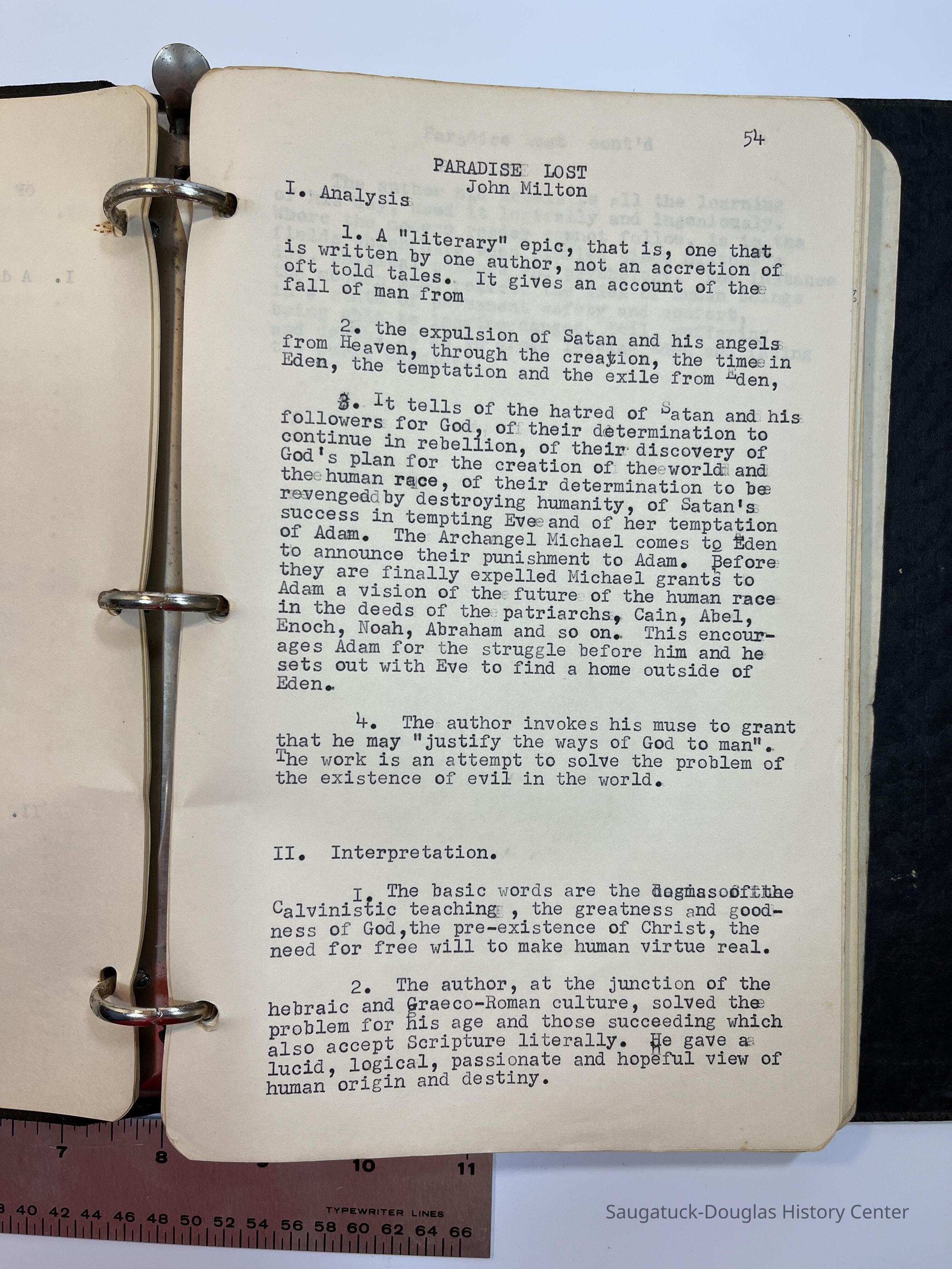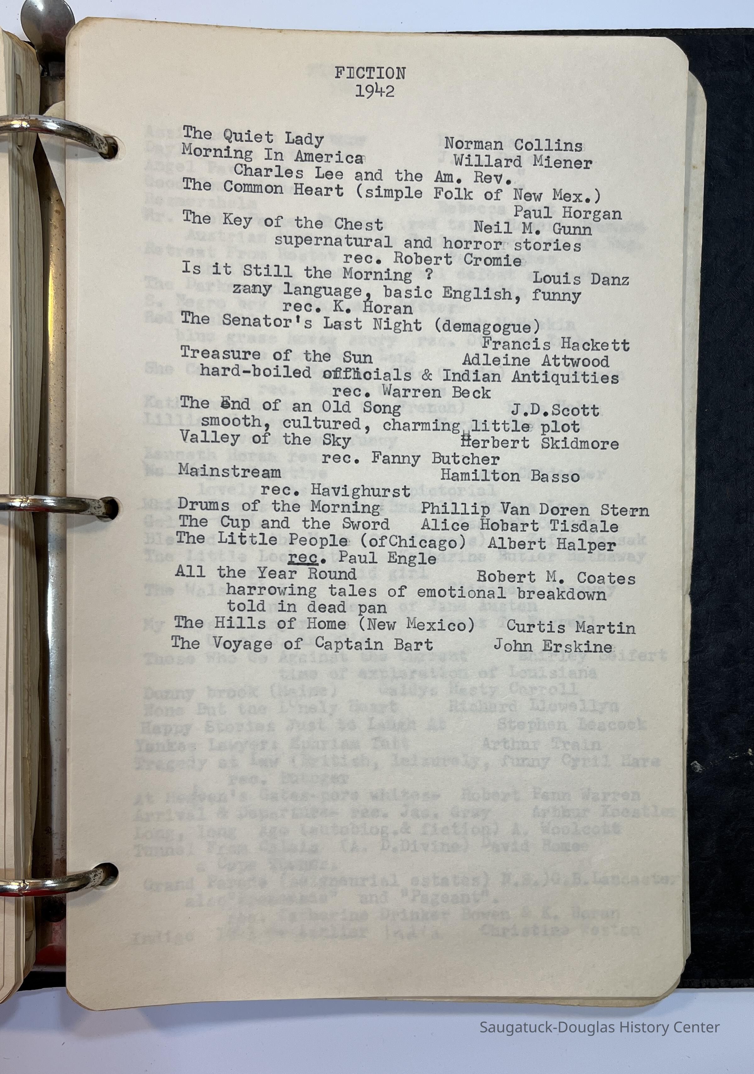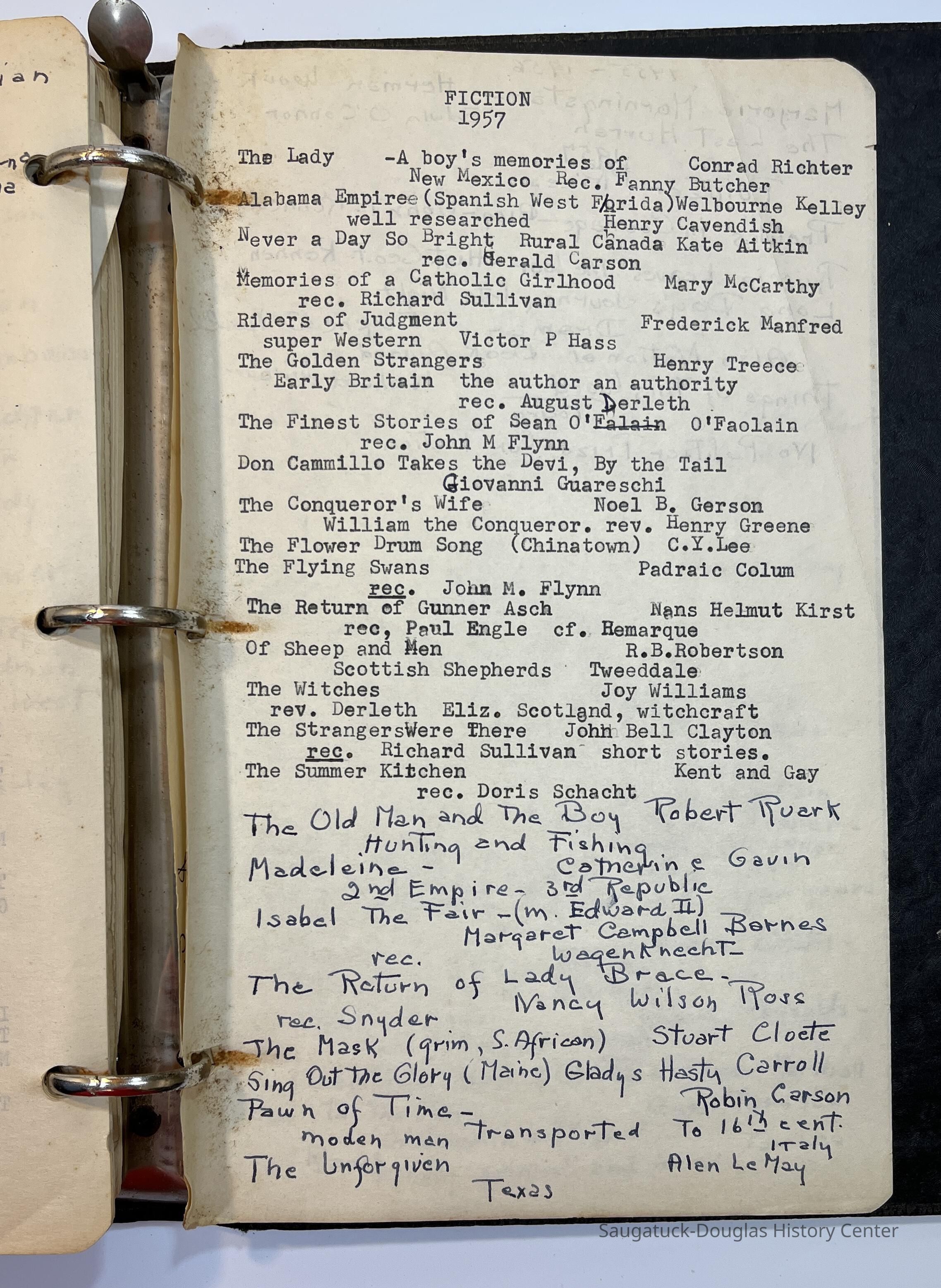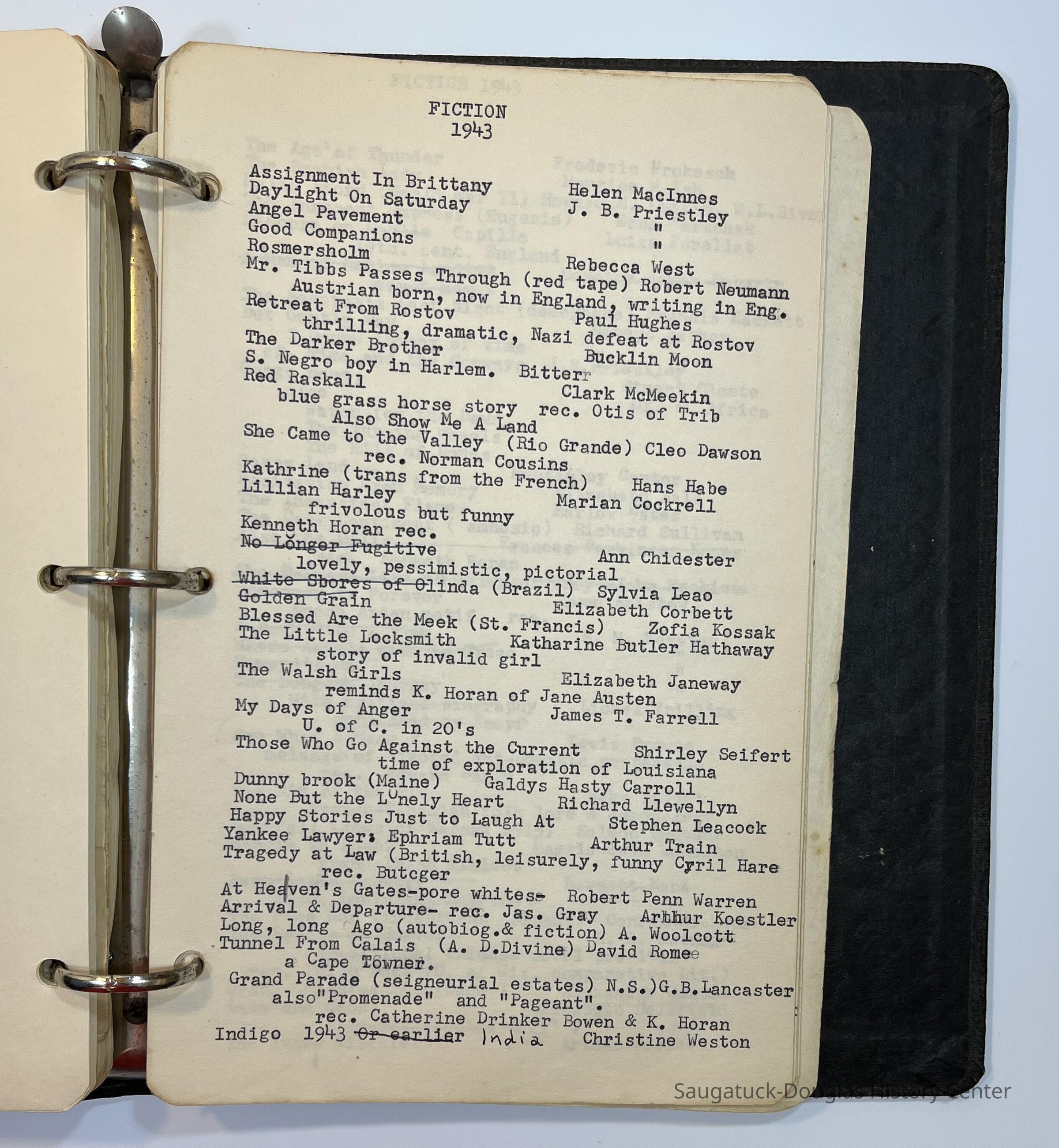 Binder one is book-lovers notes with lists of "great books," critic- recommended and top books from the 1940s to 1950s.