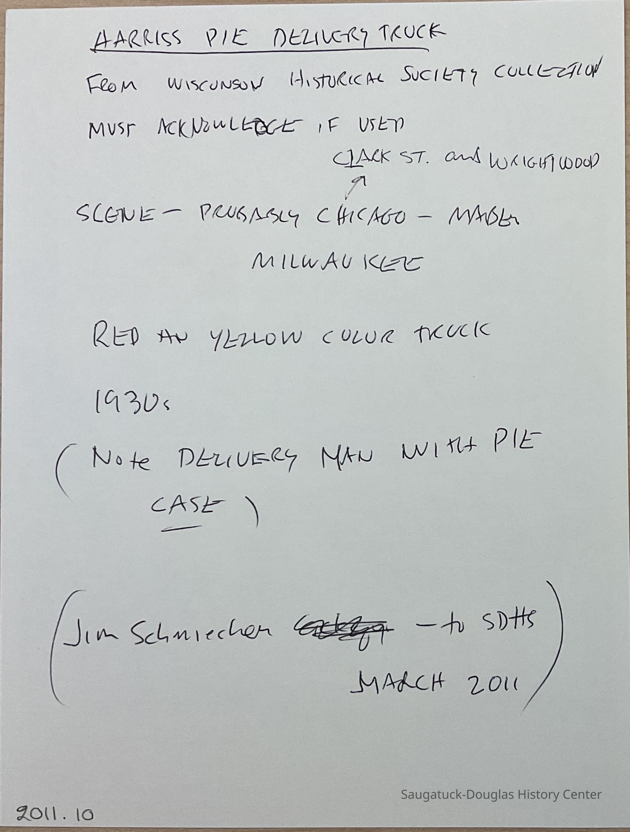 Notes: Extensive notes on truck and delivery man.