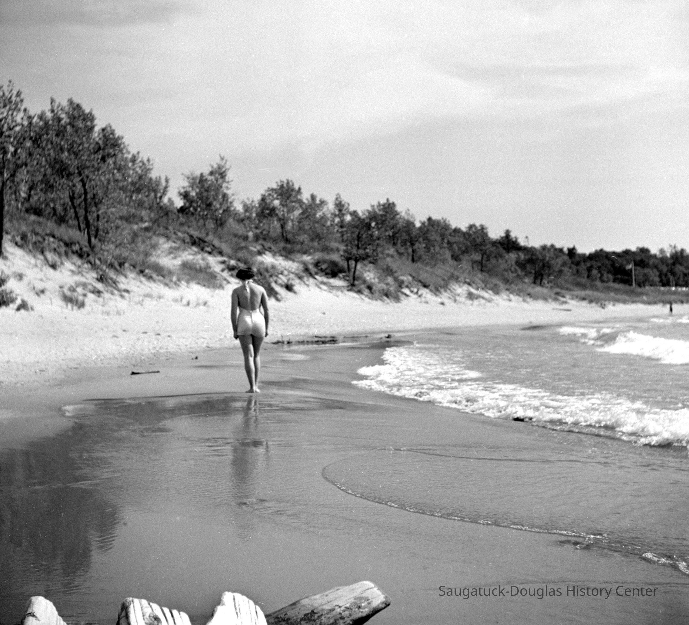 111 5/7 Saugatuck - Beach 9/1949 Hikers on beach