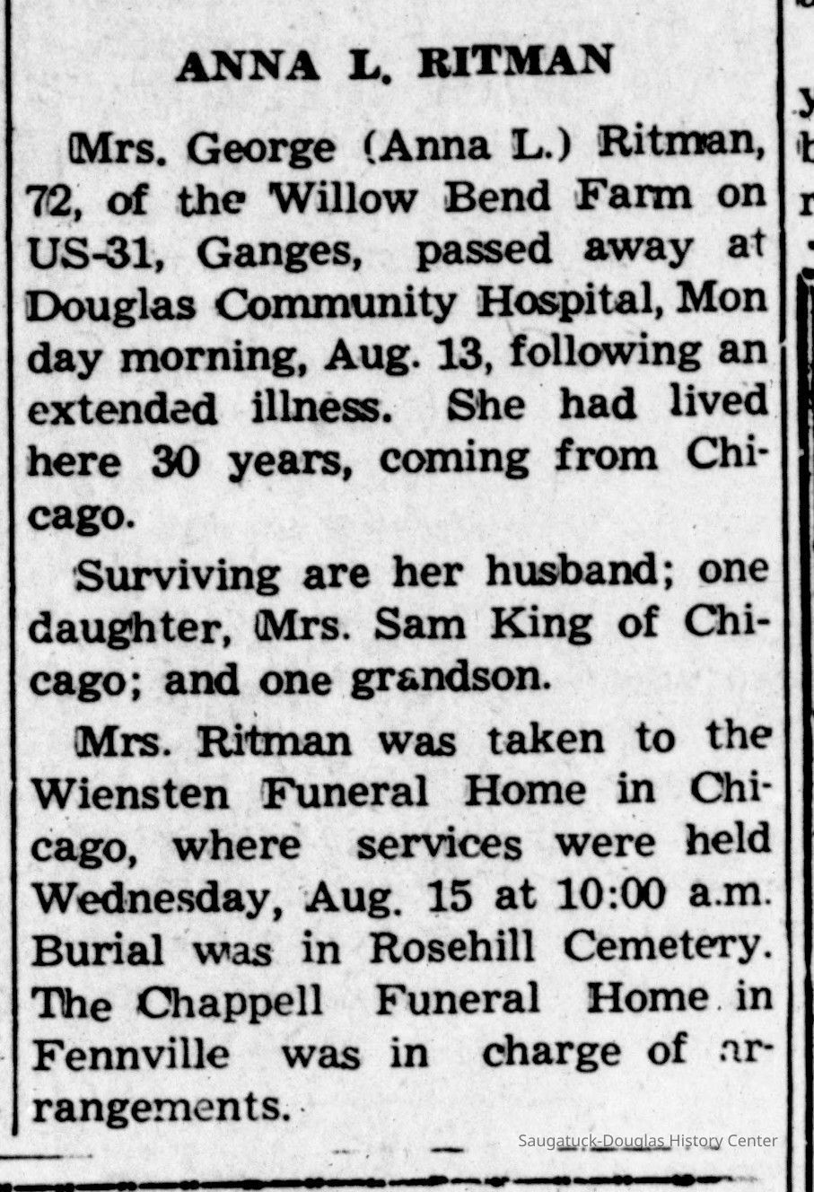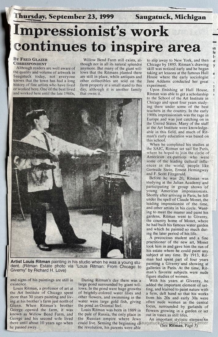 According to the article, Ritman, a professor of art the Art Institute of Chicago, spent more than 30 years painting and living at this brother George's "Willow Bend Farm" just north of Glenn.Collection