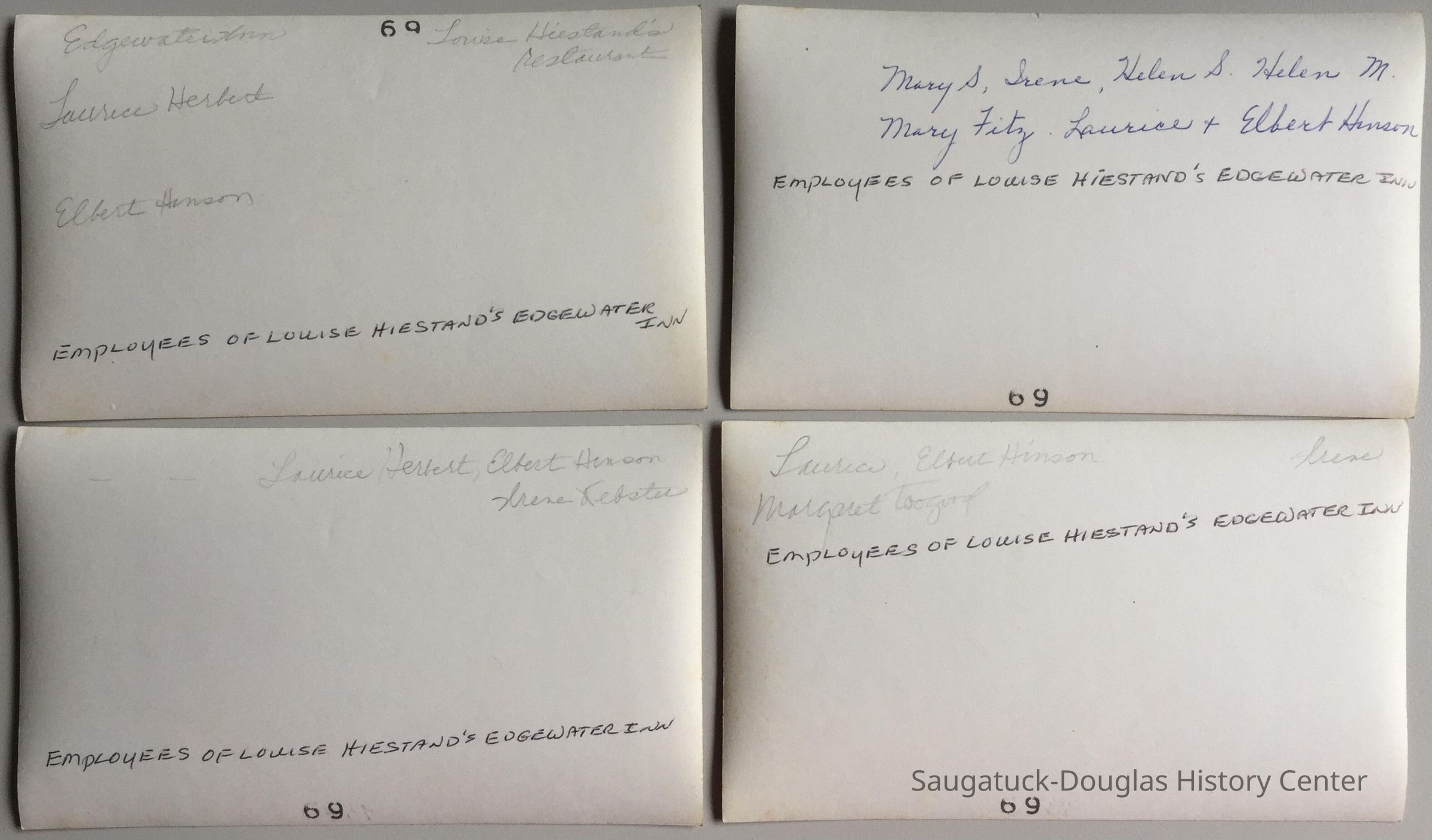 Mr. & Mrs. Hiestand lived in the house, called “The Edgewater Inn” that is between the current “Mermaid” restaurant and “The Annex” coffee shop. He ran that boat livery for many years and Mrs. Louise Hiestand operated a restaurant in the house.