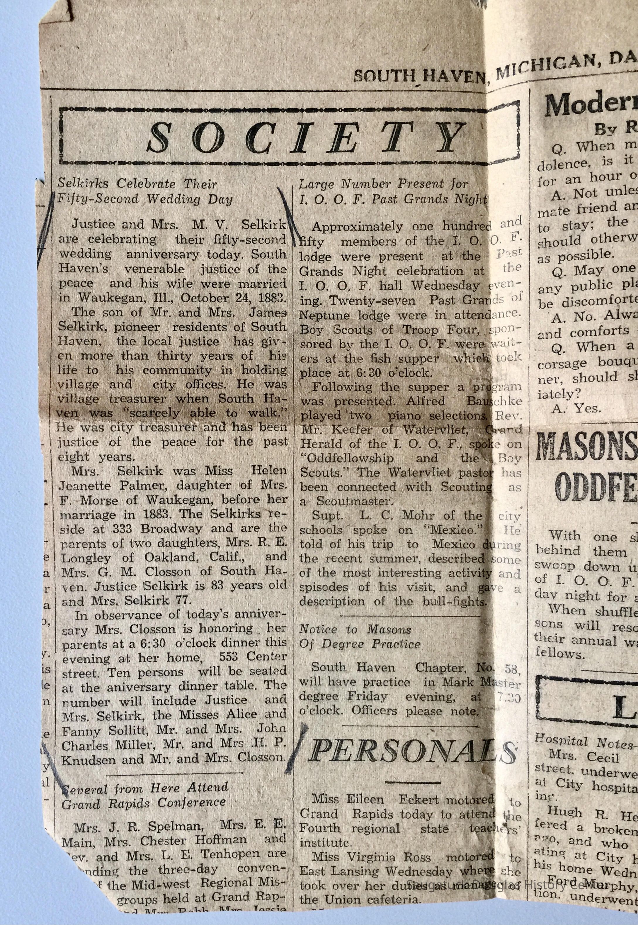 Anniversary of Justice and Mrs. M. V. Selkirk of South HavenCreator