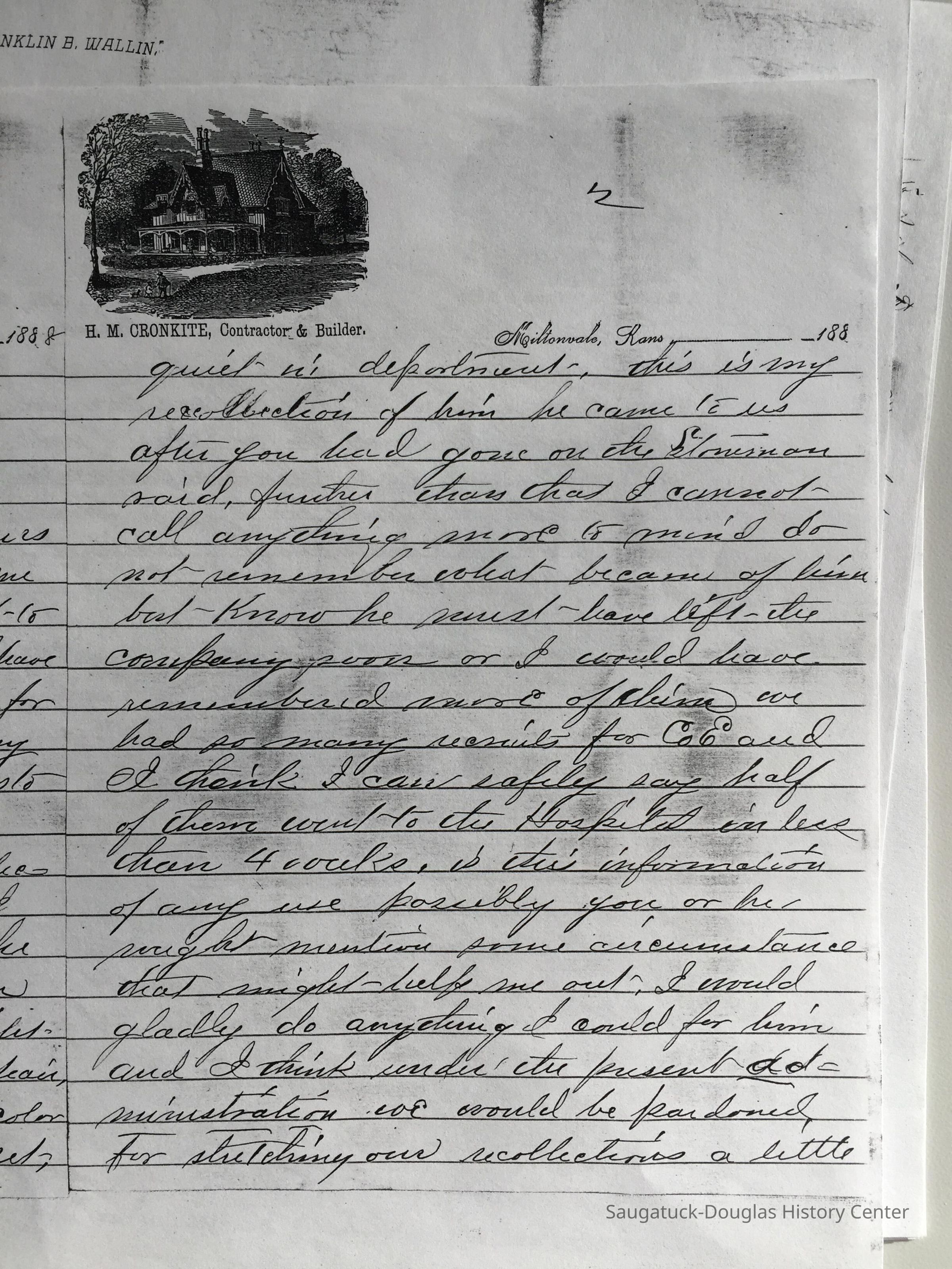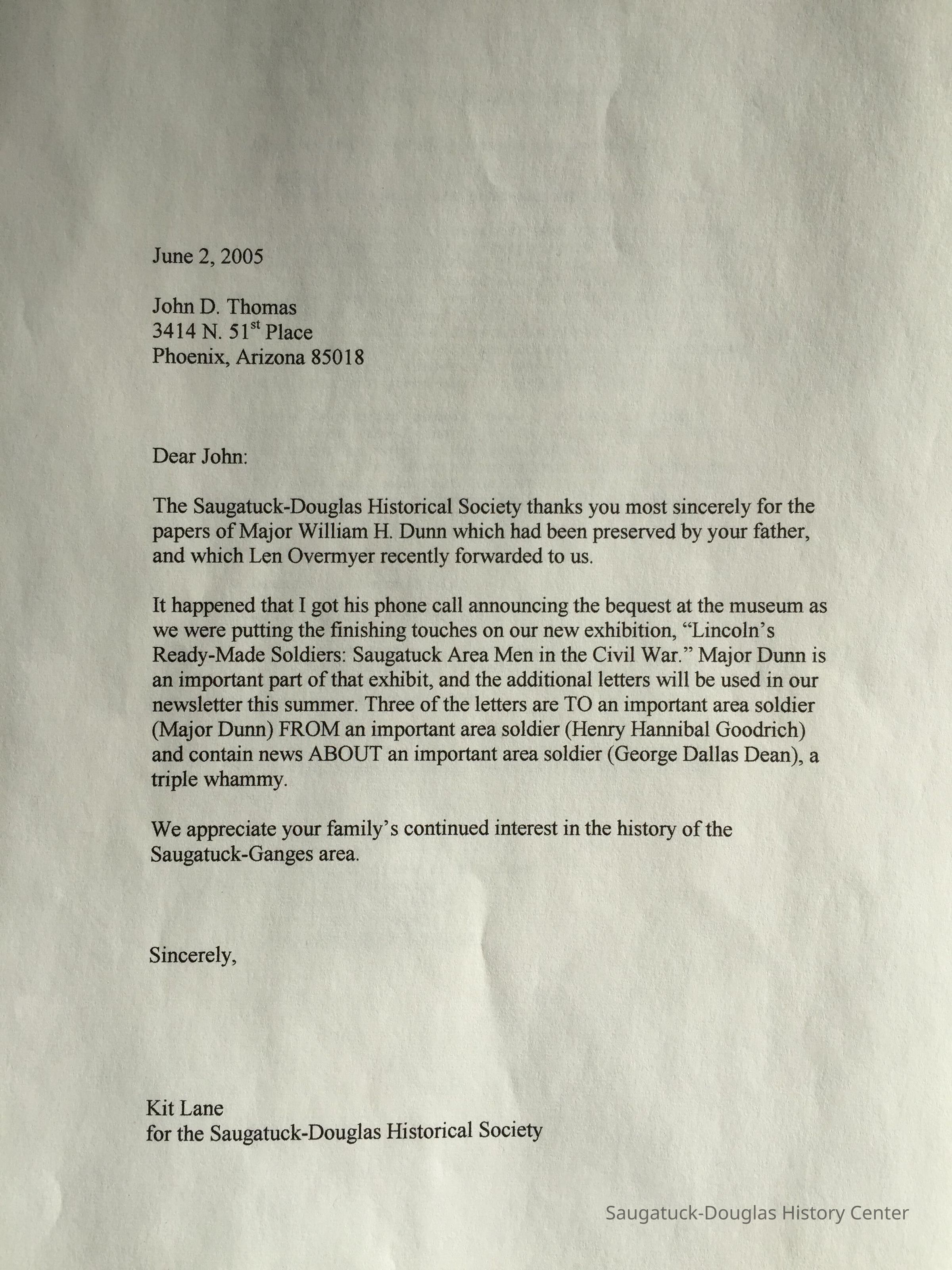 I think that under the new Bounty Law you can collect a claim for my Father, it is like this. My Brother Leonidas H. Dunn enlisted Oct 23rd 1863 at Grand Rapids in Co. D.10th' Mich Cav for three years, was mustered in the same day. He accompanied the Regt to Camp Nelson Ky and was taken sick and died there March 22/64 and my father recd from George his back pay and $75.00 Bounty making $100.00 but under the new law, I think he is entitled to $100.00 more, if so please write and let me know and I will see that you get the Business.