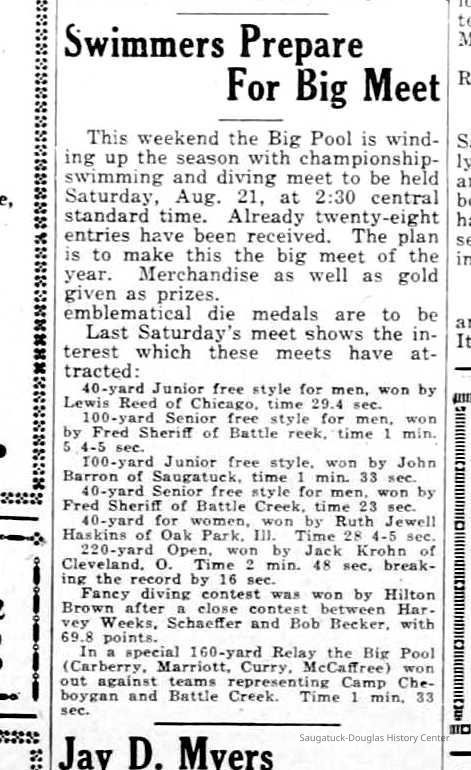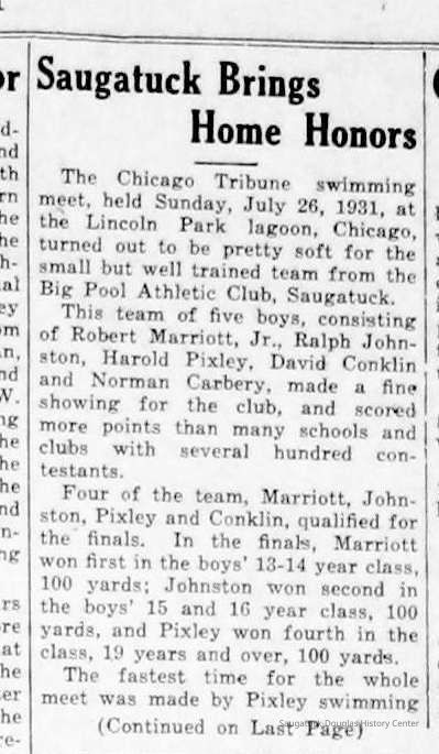Research includes references to Marriott family, their homes, the Big Pool and its swim teams. Much of the information was provided by Nancy Gregory, the daughter of Dale Marriott Williamson.