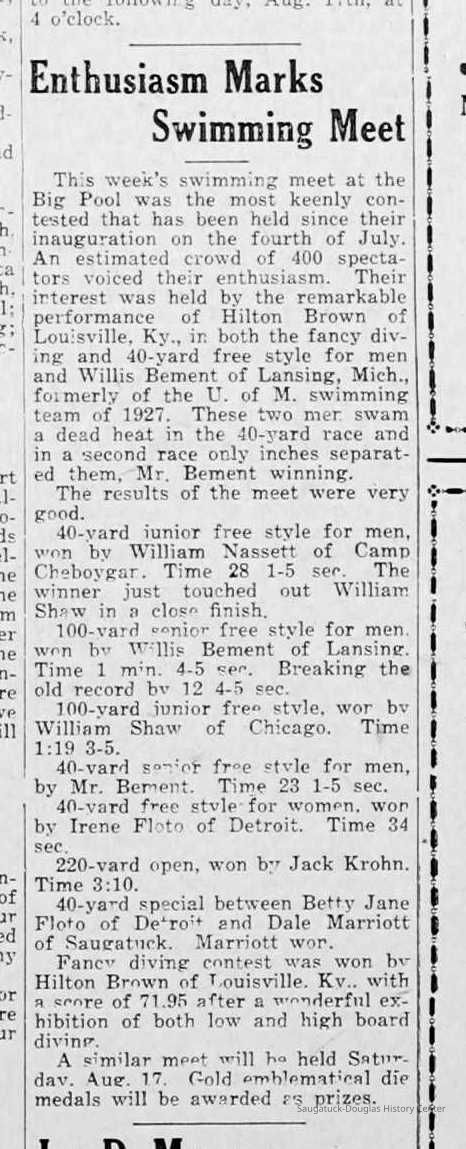 Big Pool c1927-1935, Marriott, Robert William Sr., Marriott, Abraham Robert c1860-1931, Hershaw, Melvin Arthur 1921-2020, Maines, Shirely (Springer) 1924-2003General Notes