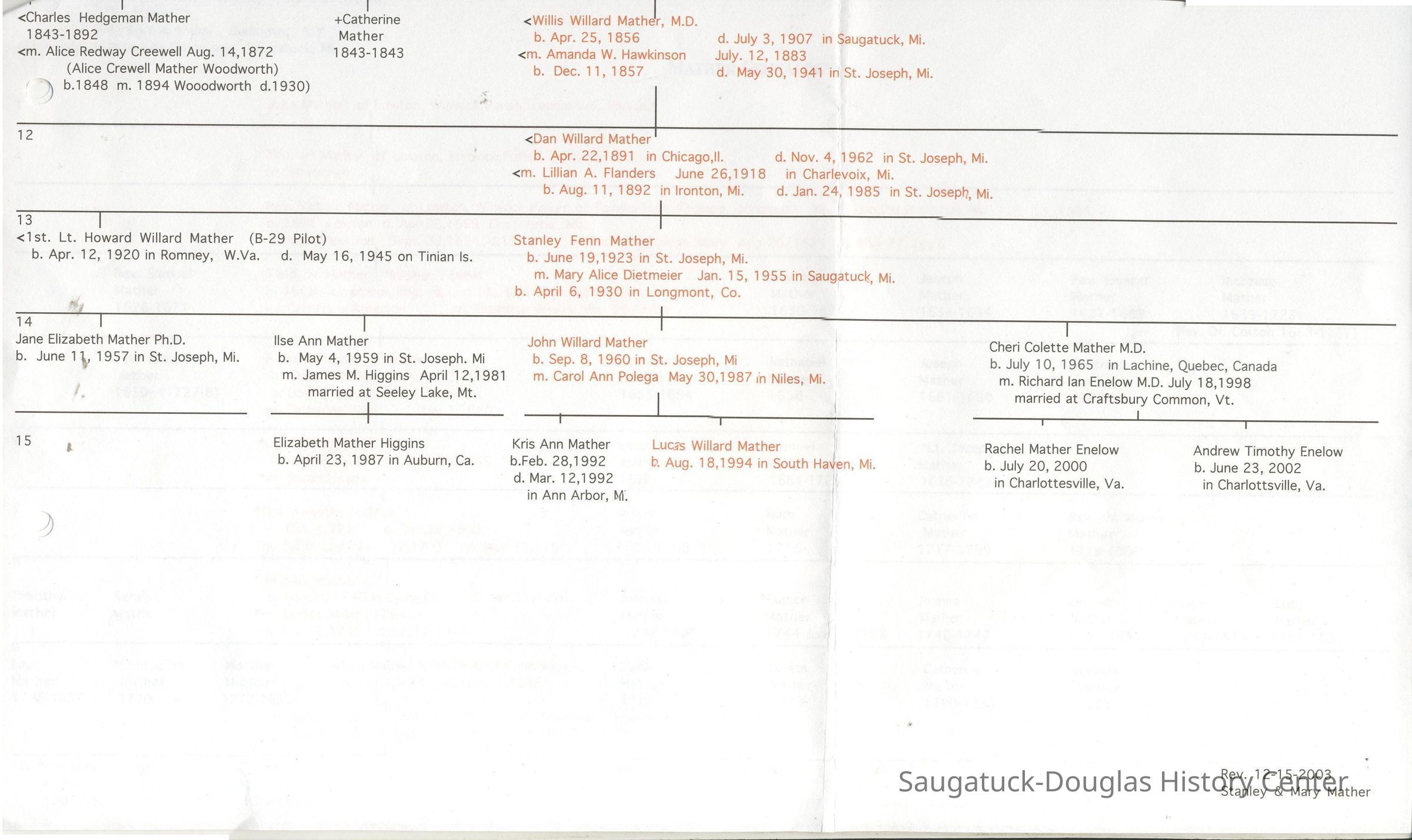 Mather, Willis Willard, d. 1907 Jul 3, age: 51yr F, bur. Block-3, R-14, L-3, Gr #1