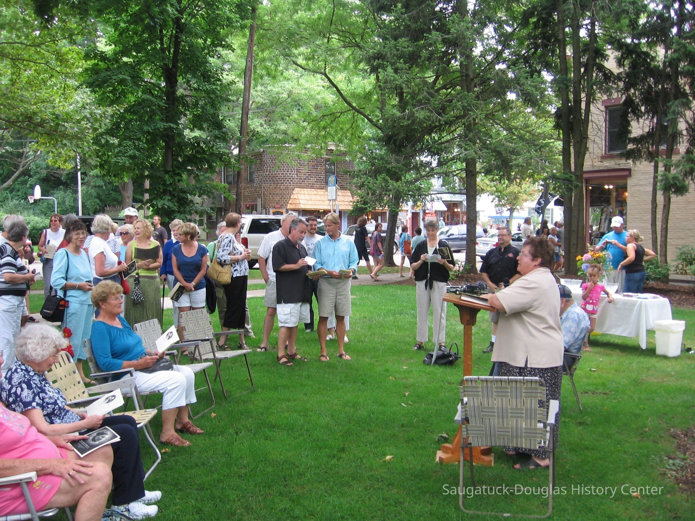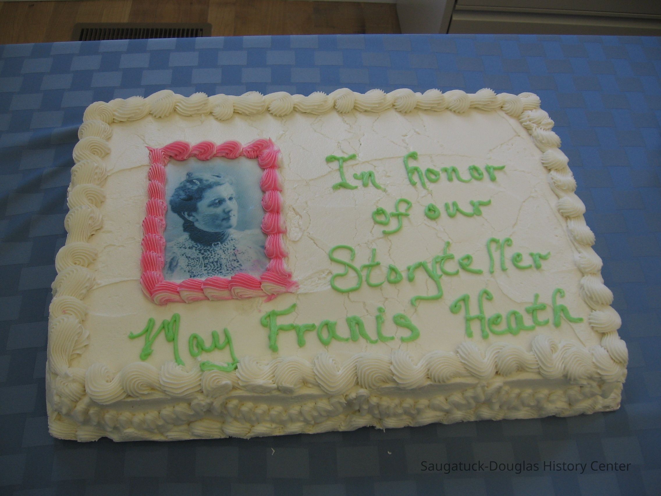 As granddaughter of S. A. Morrison, the man credited with naming Saugatuck when the town's first post office opened, May Heath was one of Saugatuck's most influential citizens of her time. She was instrumental in establishing Saugatuck Woman's Club, Saugatuck-Douglas Art Club and the town's first public lending library, spearheaded historical events such as the 1930 centennial celebration, and was personally responsible for preventing the cutting down of the Saugatuck Treaty Oak, which still stands on the west side of Holland Street north of Francis Street.