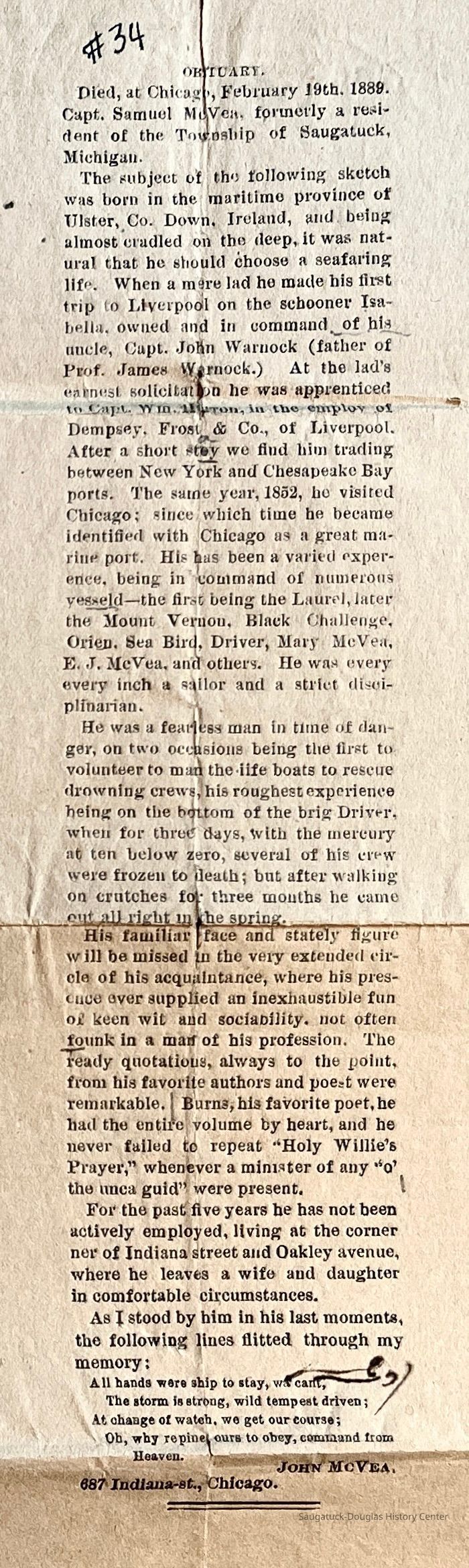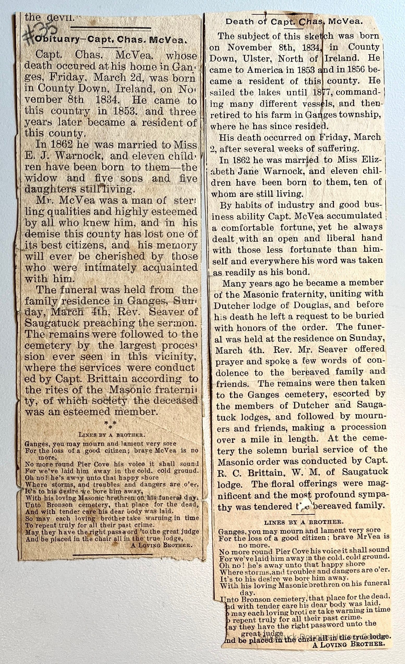 L. Two newspaper clippings of obituaries for Capt. Char. McVea #35