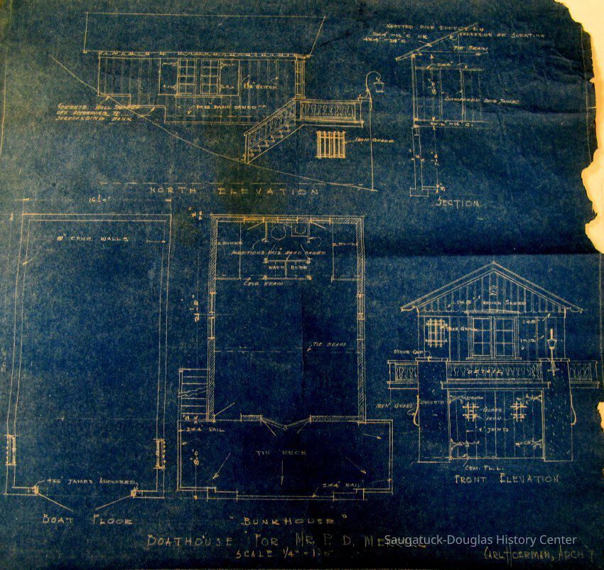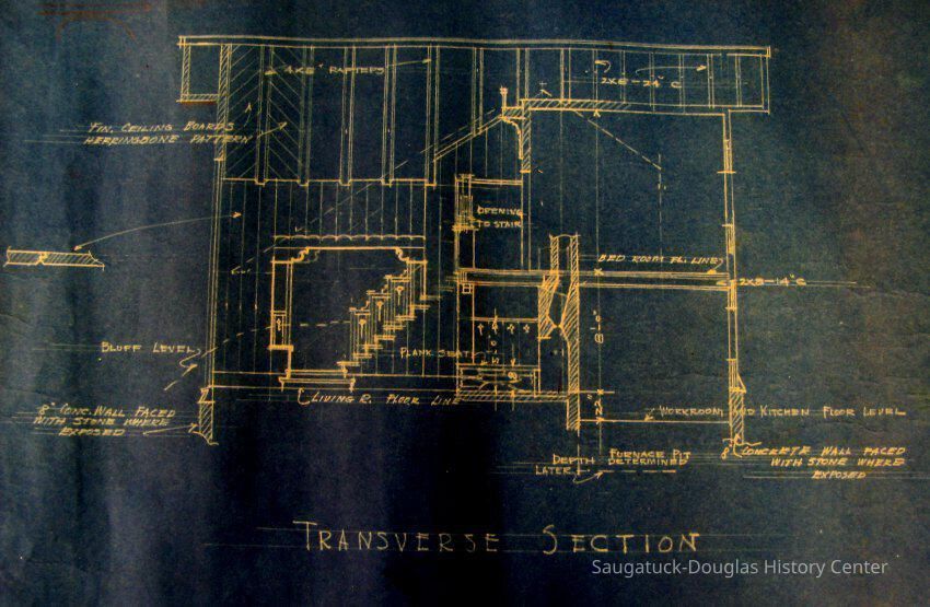 13 architectual drawings by Carl Hoerman of the Peterson D. Merrill cottage at 2420 Lakeshore Dr. Fennville MI. The cottage was built in 1937.Collection