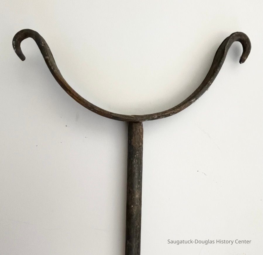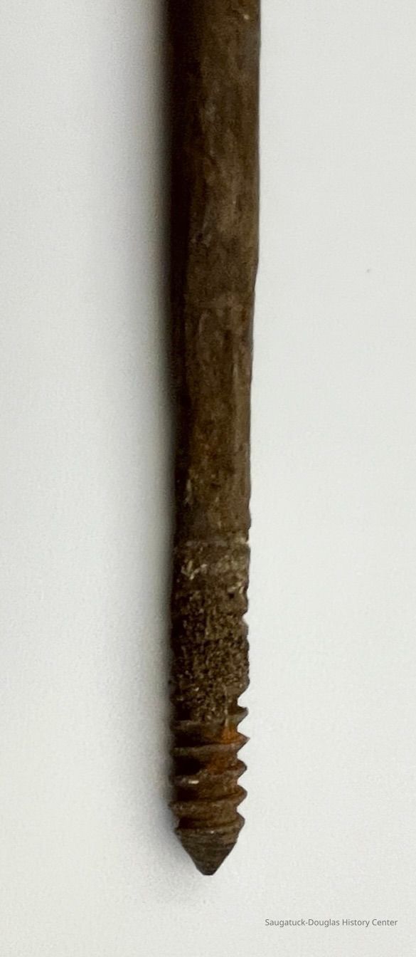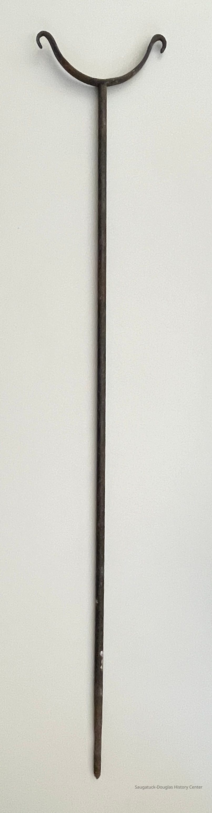 Metal Y-shaped stake with threads on the point.Cataloged By