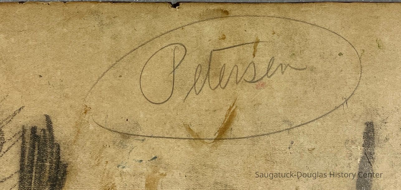 Side two has a pencil sketch of a saluting, uniformed World War I soldier, with a second study of the uniform sleeve section of the drawing. At the bottom of this panel is the word "Petersen" written with a different pencil.Type of Painting