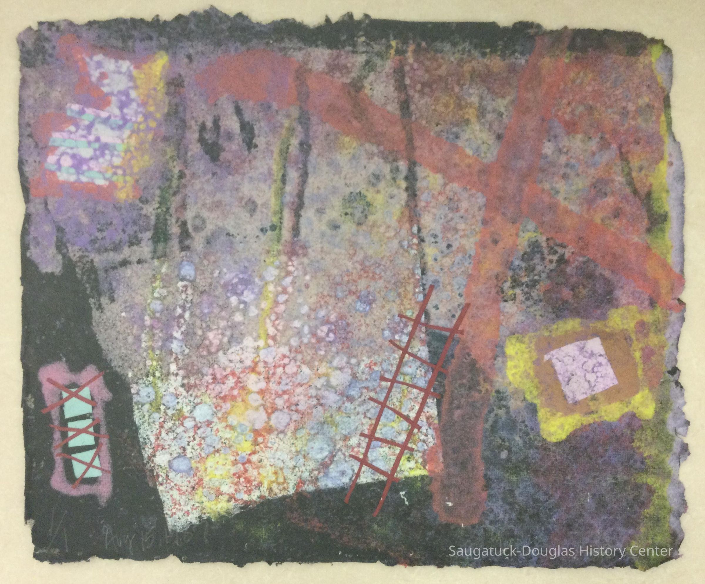 Mixed media on black handmade paper. Made at Oxbow by C. Spencer.Collection