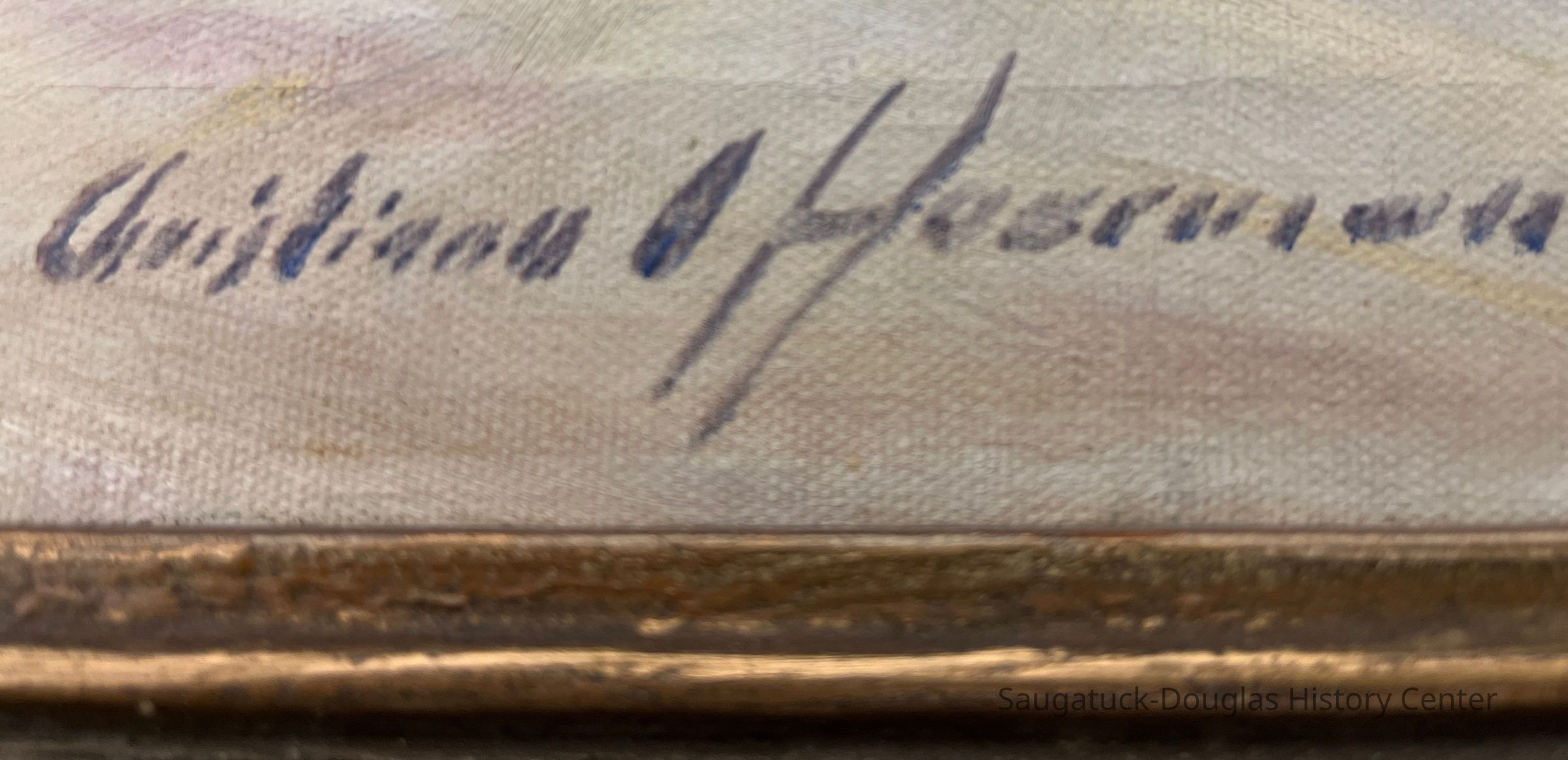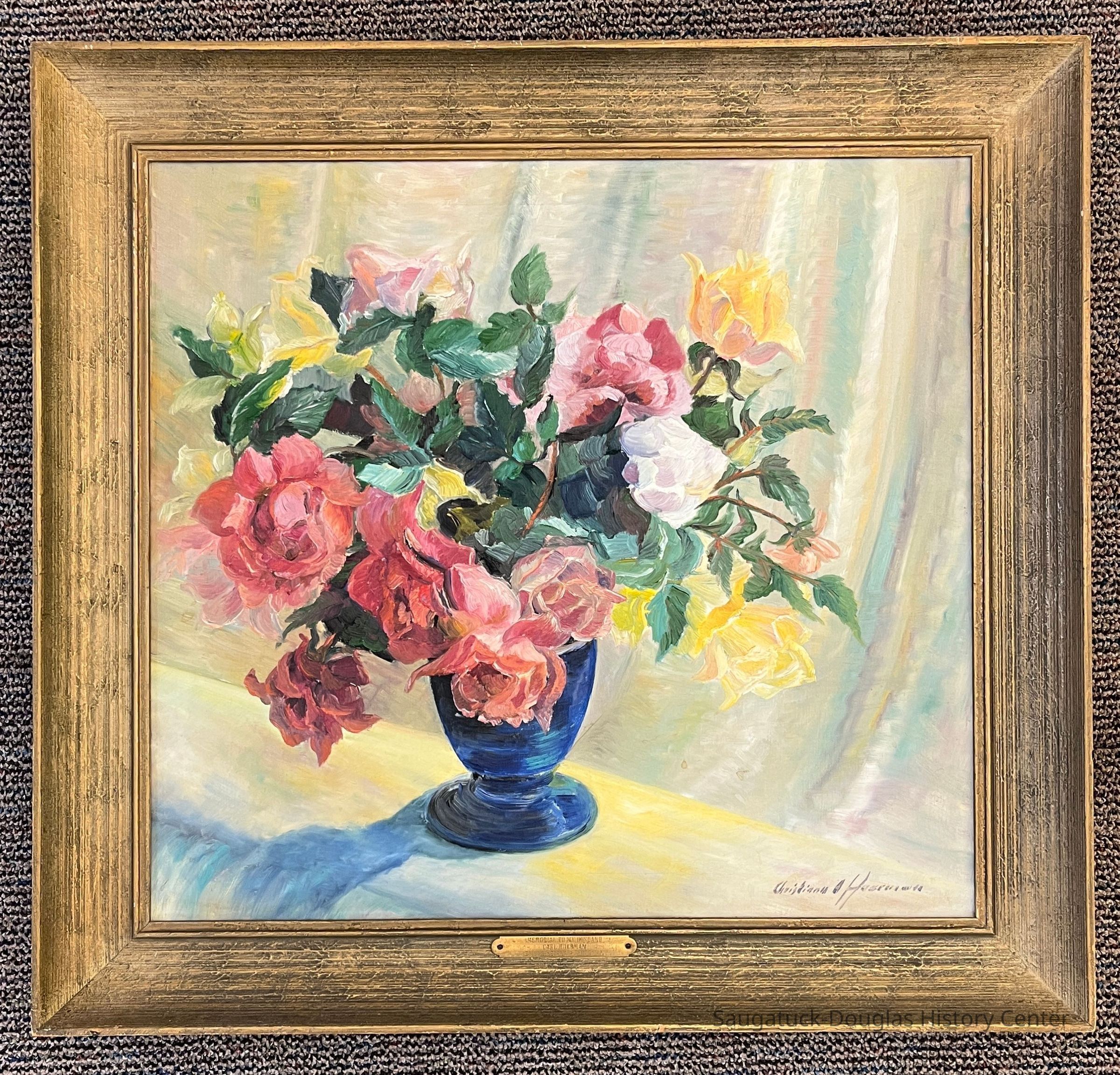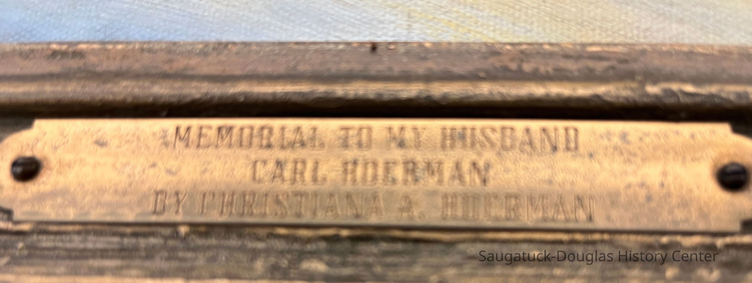 Brass plaque on frame reads "Memorial to my husband Carl Hoerman by Christiana Hoerman"