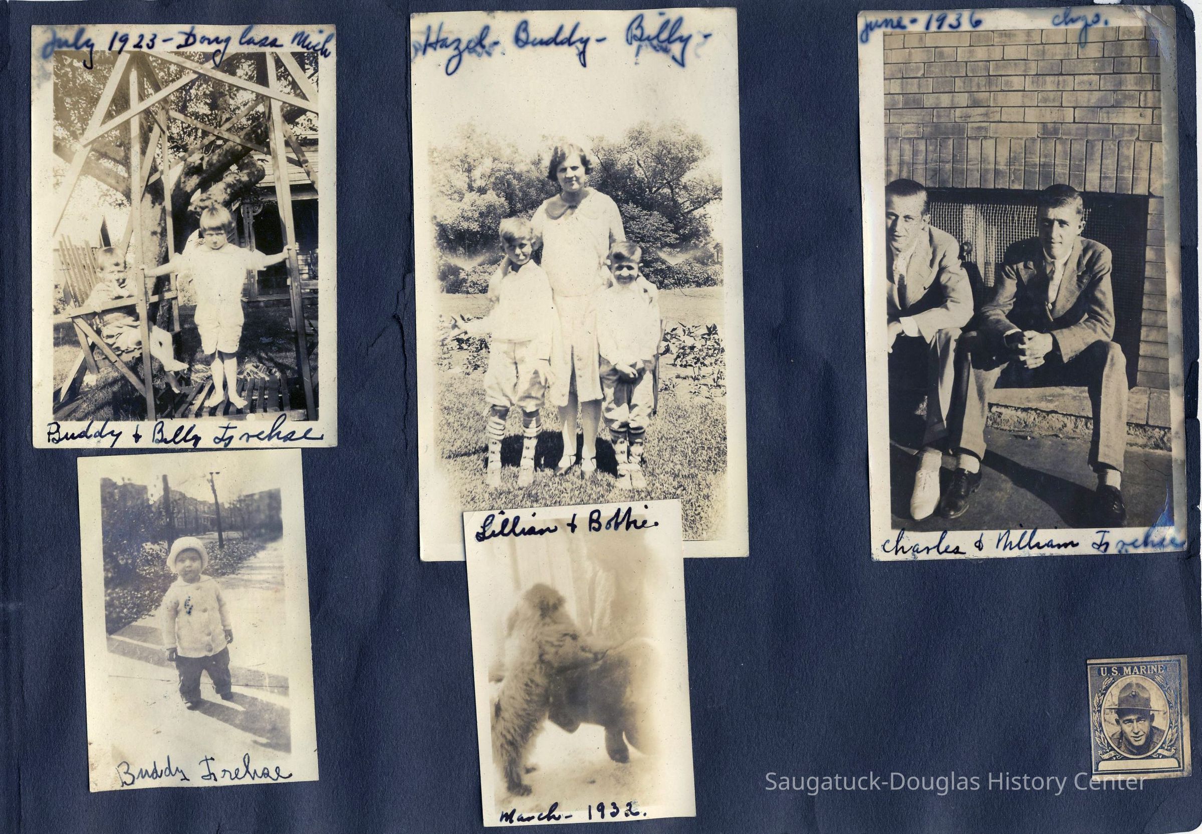 Frehse, Russell Raymond 1892-1976, Morris, Lillian (Sterzing) Frehse 1872-1964, Morris, Harry A. 1866-1946, Frehse, Charles John 1893-1918, Pear, Clarence James 1890-1933, Smith, Frank, Richards, Charles Jr. "Plug Hat Charlie" 1855-1928, Old Chain Ferry Scows c1836-1947, 660 Lake/Cozy Cottage/Morris-Freshe, Rehberg, Amil Fred 1863-1947, Rehberg, Catherine (Halgren) 1862-1954, Koning, Mary (Van Zoeren) 1860-1939, Koning, Cornelia 1890-1977, Snay, George W. 1898-1969, Tubbs, Ruth, Falconer, Donald, Brackenridge, Evelyn, White, D., Brackenridge, Mildred Claire, Brackenridge, Arthur M. 1903-1969, Lighthart, Francis "Frank" 1852-1938, Brittain, Florence M. (Snyder) 1854-1884