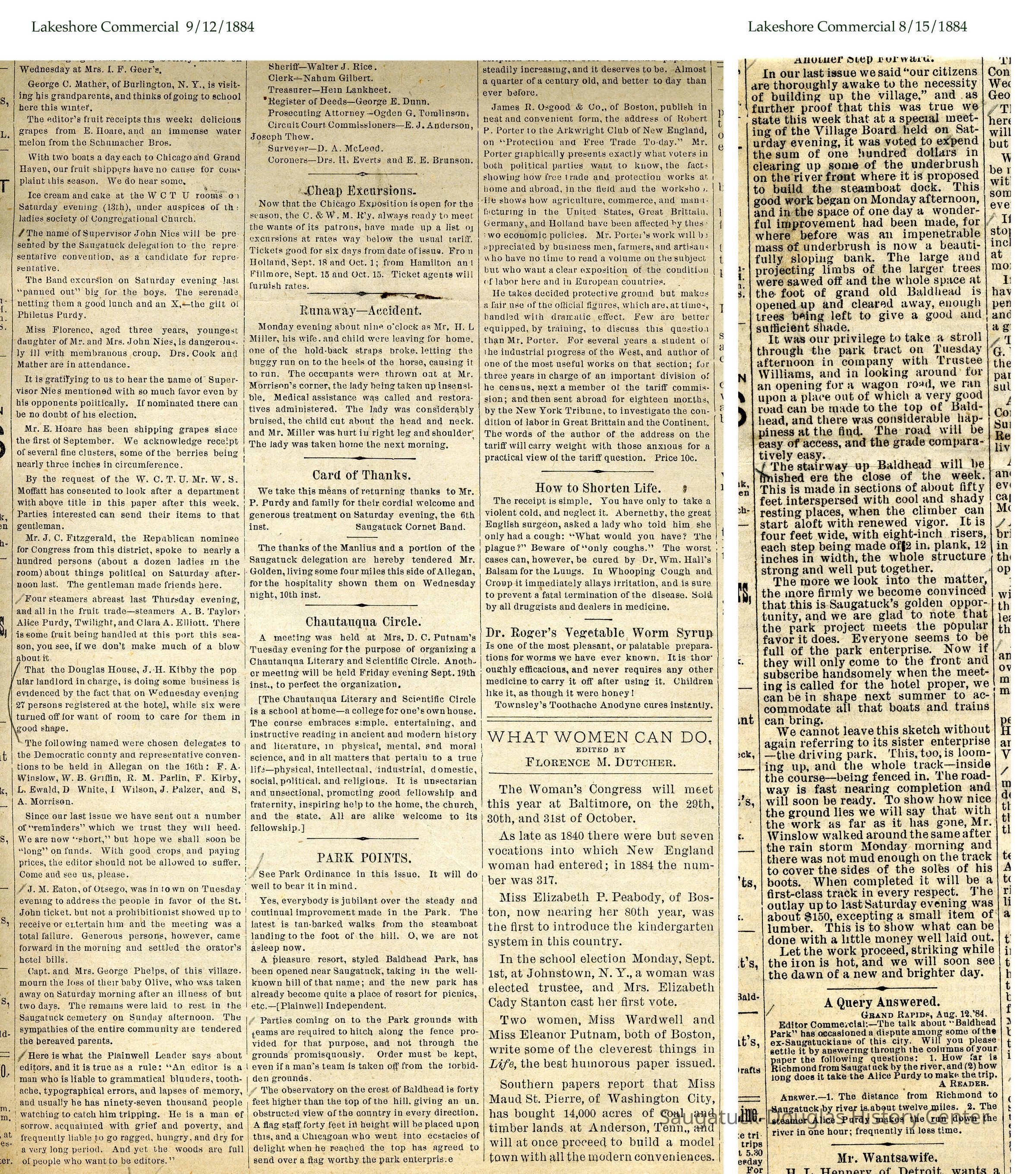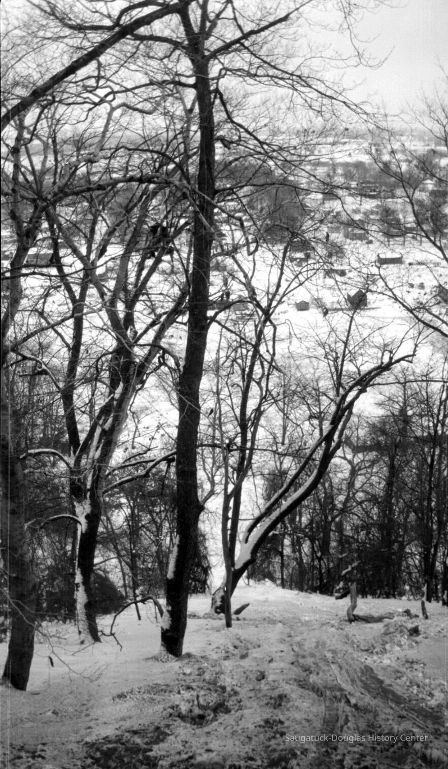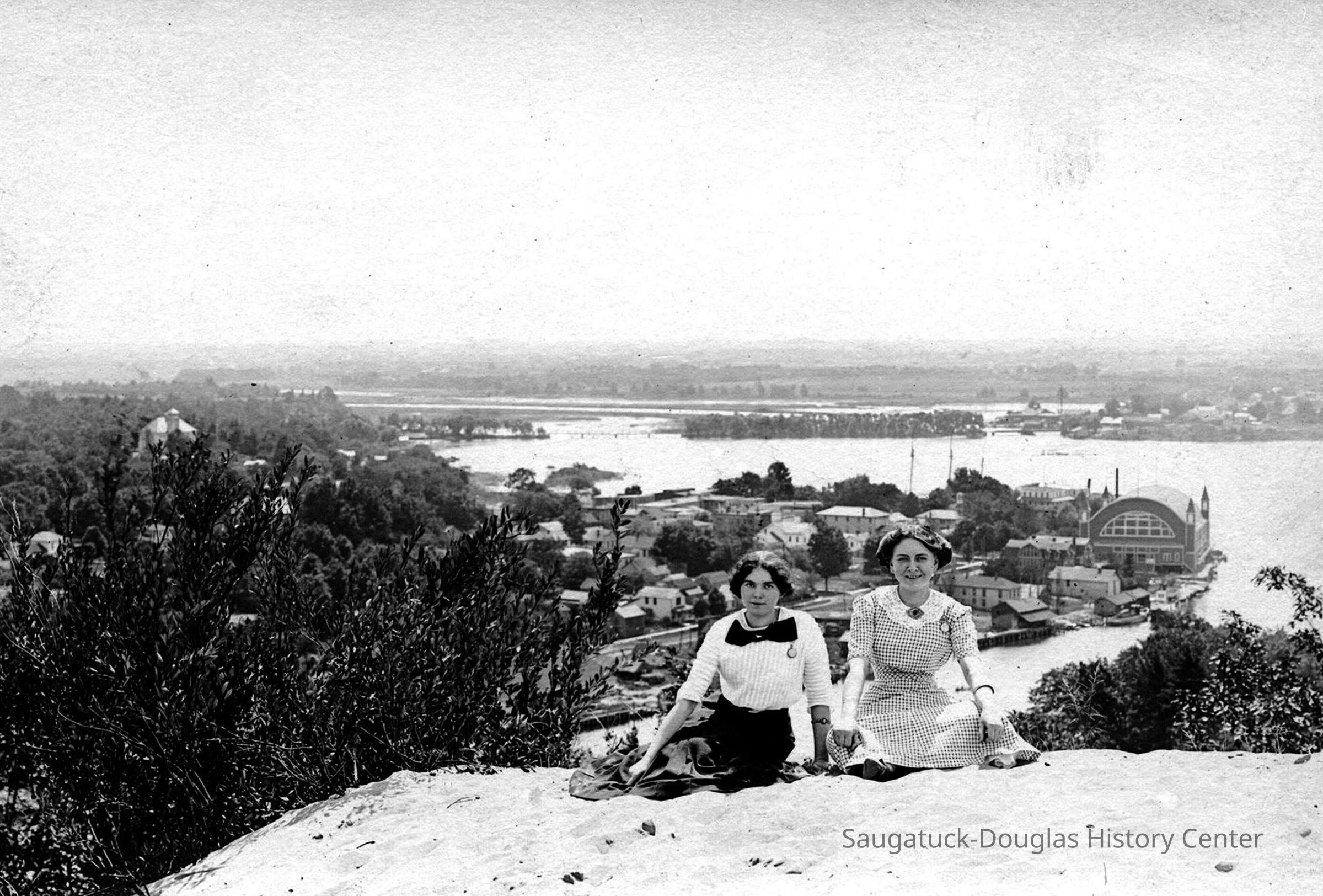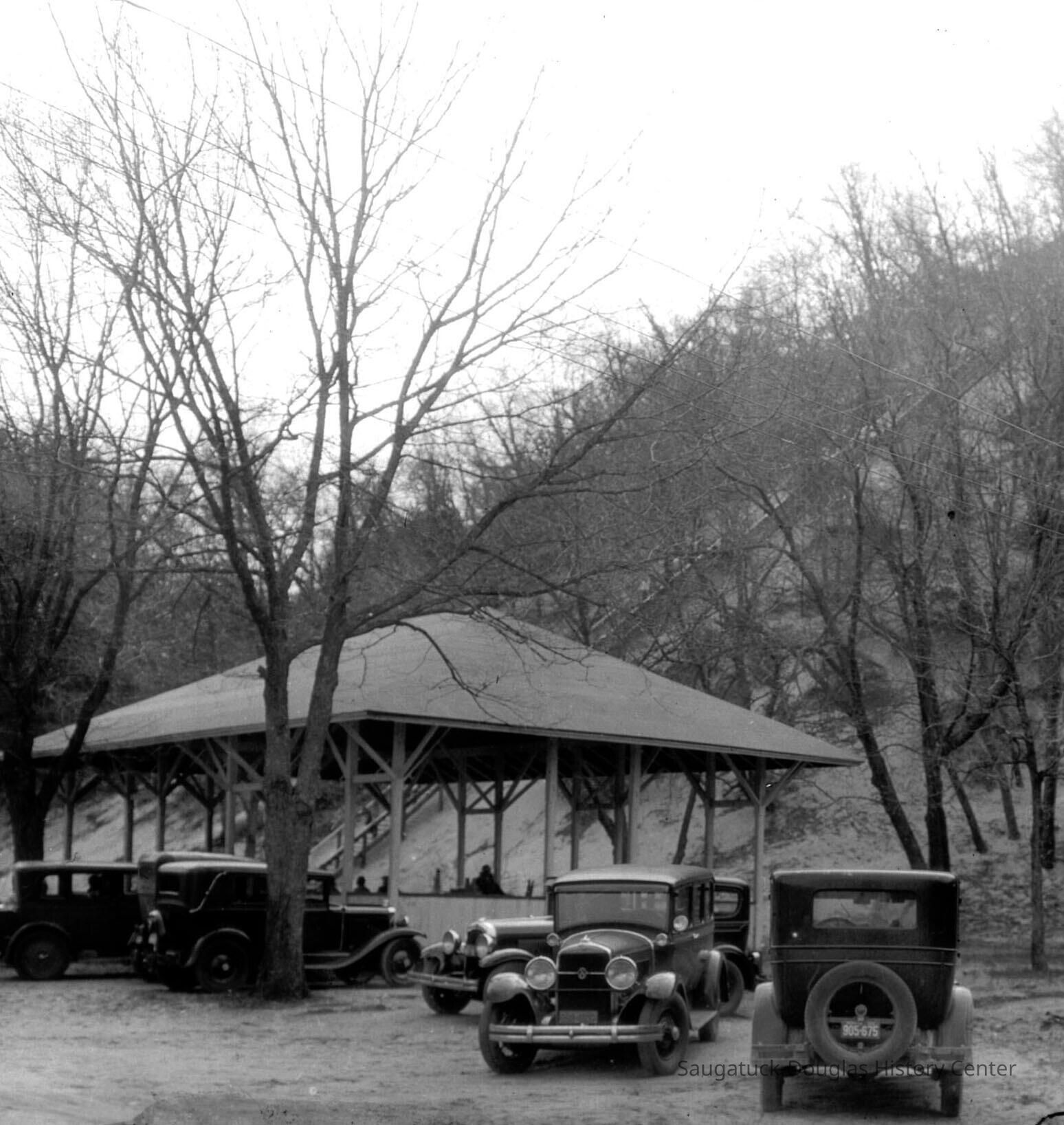 “The stairway up Baldhead will be finished ere the close of the week. This is made in sections of about fifty feet interspersed with cool and shady resting places, when the climber can start aloft with renewed vigor. It is four feet wide, with eight inch risers, each step being of 2 in. plank, 12 inches in width, the whole structure strong and well put together. The more we look into the matter, the more firmly we become convinced that this is Saugatuck’s golden opportunity, and we are glad to note that the park project meets the popular favor that it does.”