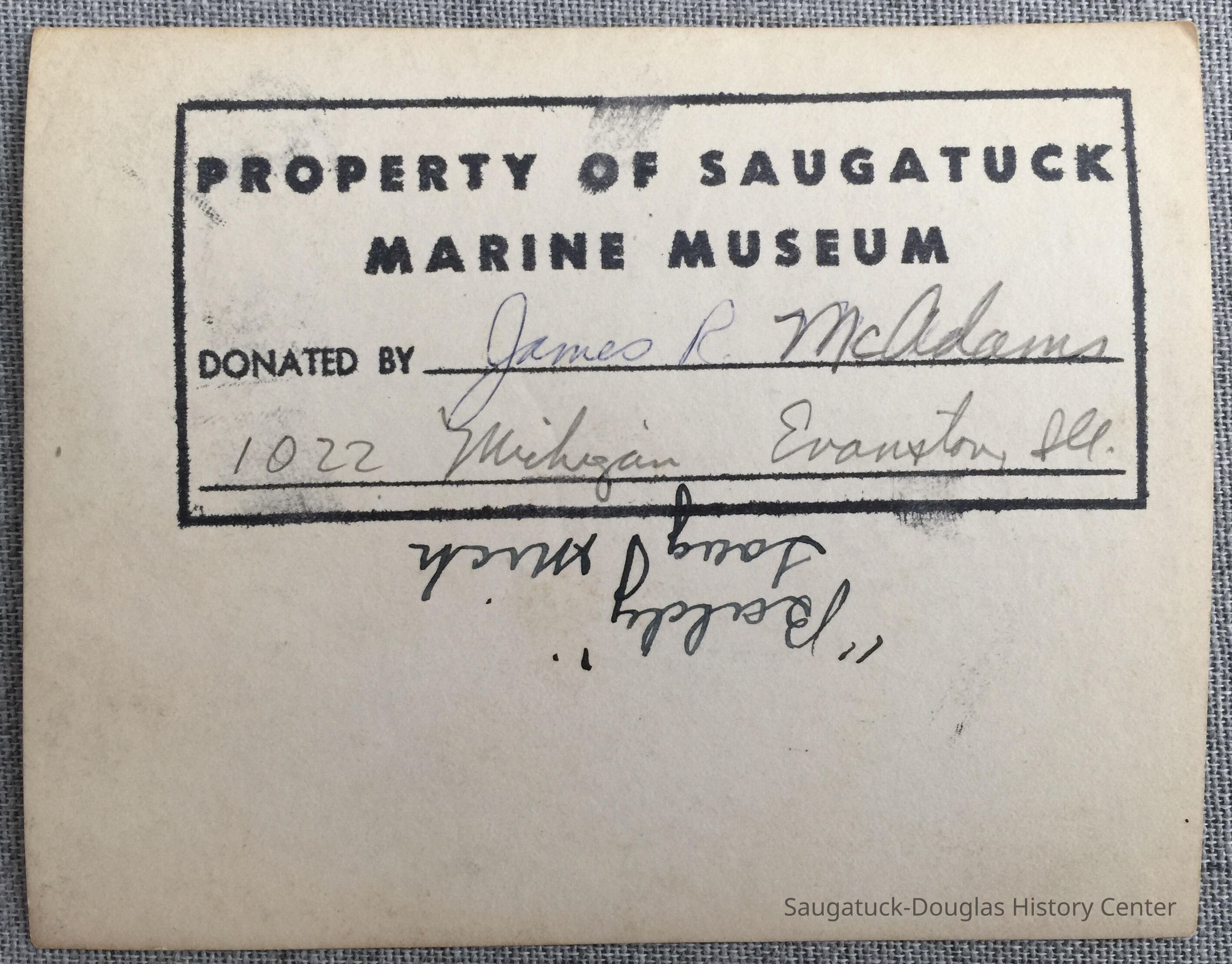 "Property of Saugatuck Marine Museum Donated by"
