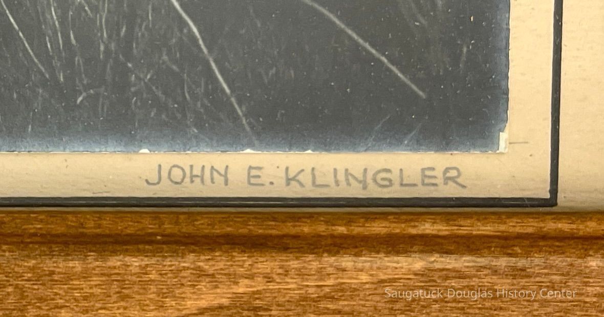 The photo is behind glass, mounted to a backing board with a pinstripe detail and a wooden frame.Photograph Details