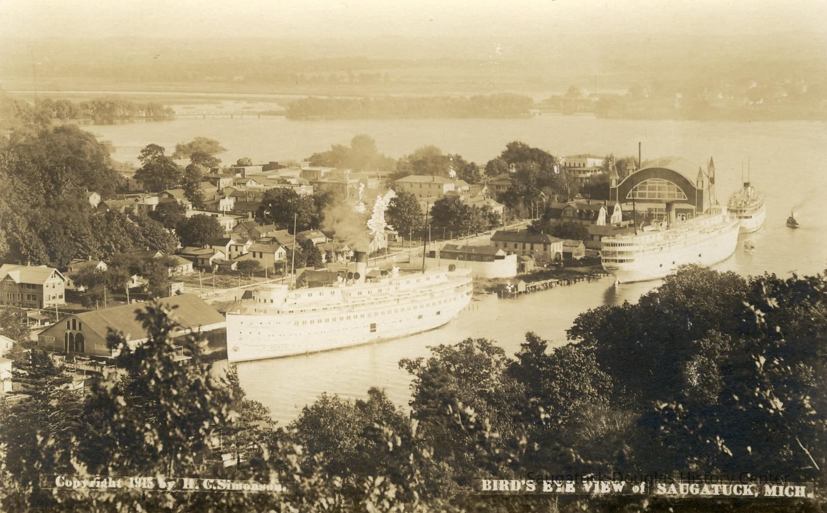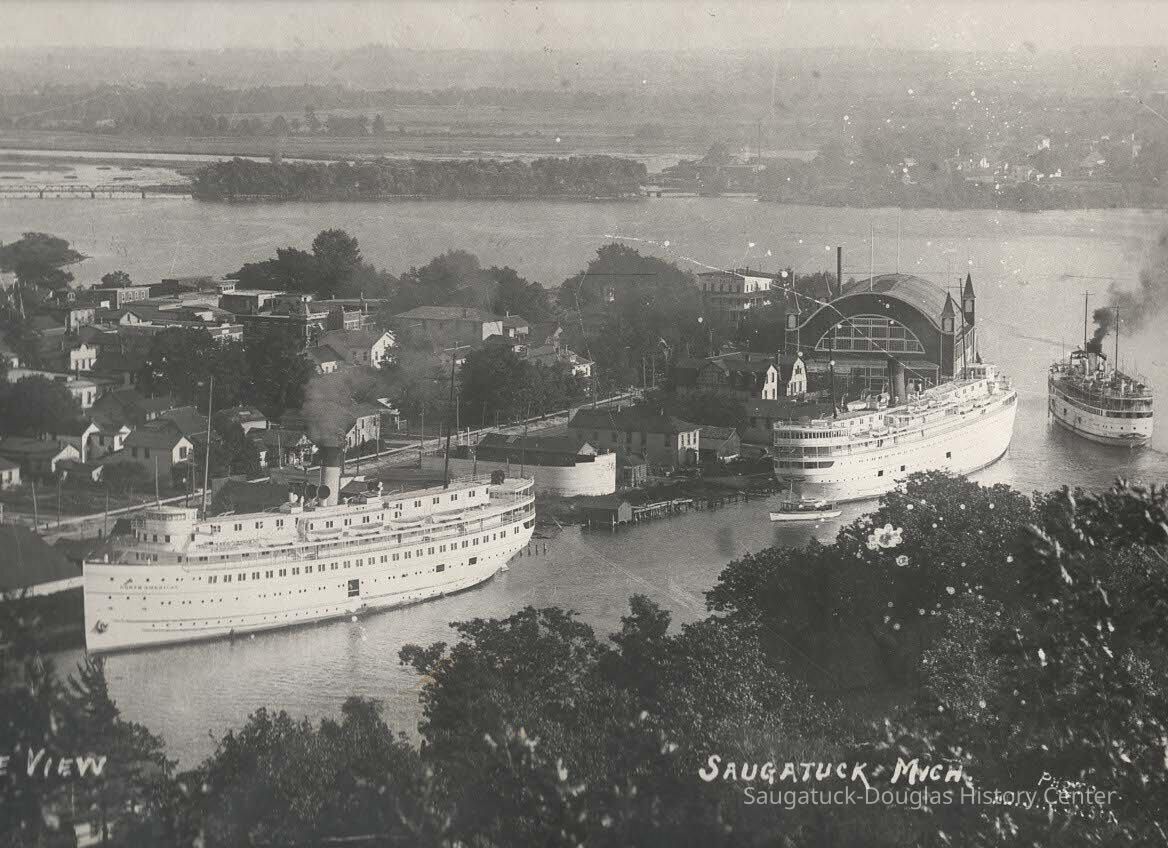 This photo was printed in the August 15, 1968 Commercial Record with the caption "The North American, left, and the South American tied up at Saugatuck docks in the 1920s. (Photo by Simonson)"Collection