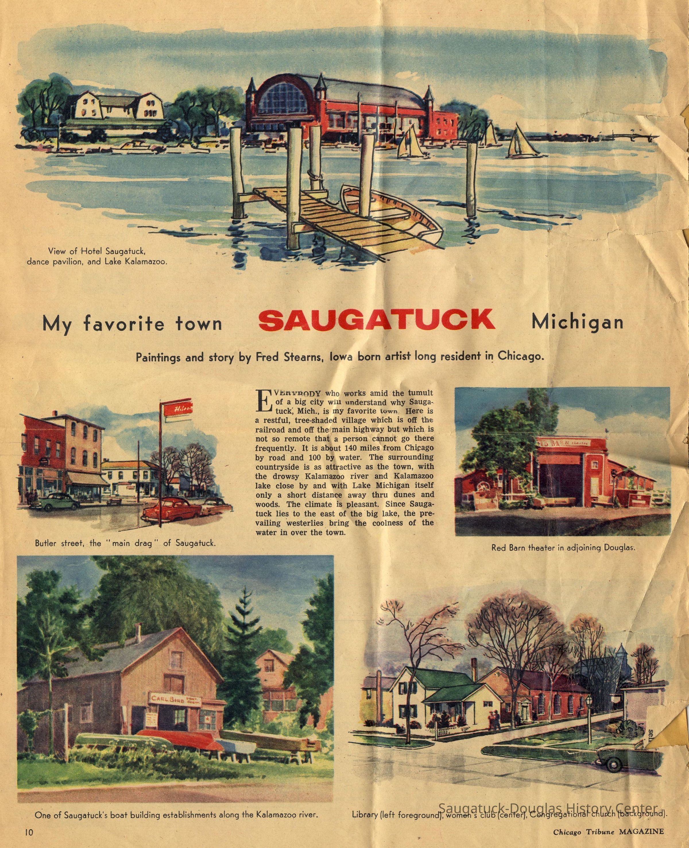Four copies of an article that appeared in the July 4, 1954 issue of the Chicago Tribune Magazine telling about the arts community in Saugatuck Michigan. The article includes illustrations by Fred Stearns.Collection