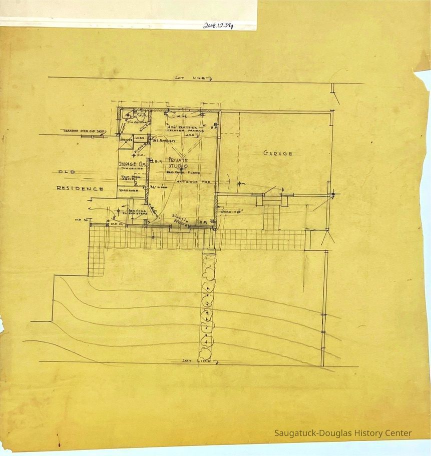 A rough plot map that shows the lot lines and some detail to what appears to be an addition to be built. It also shows some contour of the land.Collection