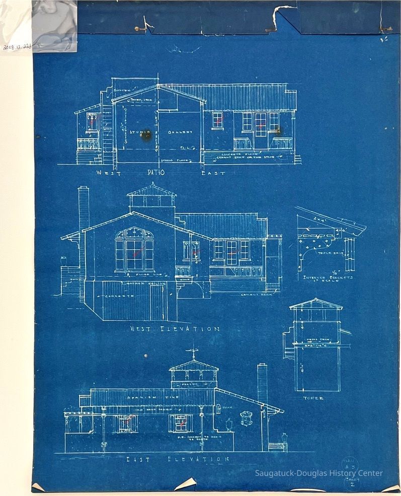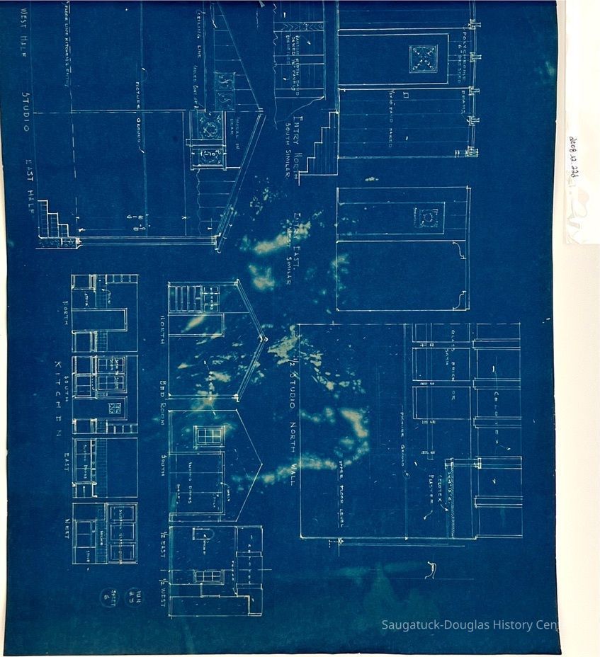 The blueprint booklet consists of four pages of detailed drawings for a studio/residence. It starts at the second page due to a missing page one. This booklet consists of 'Plan #3' for this building and includes interior, exterior and transverse details.Collection