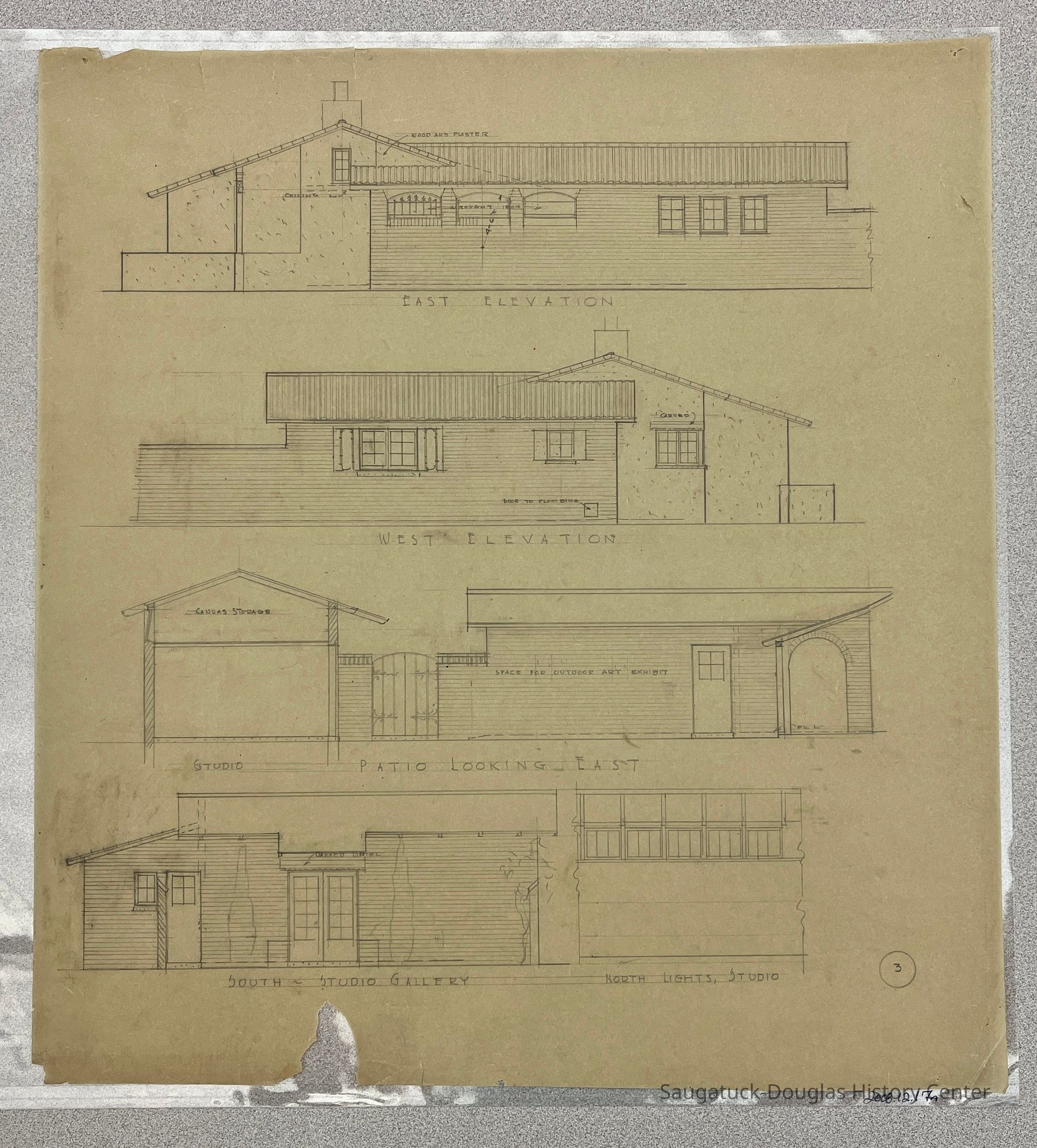 This architectural drawing depicts drawings of varying exterior sections of the Studio/Residence. Minute detailing for each one.Collection