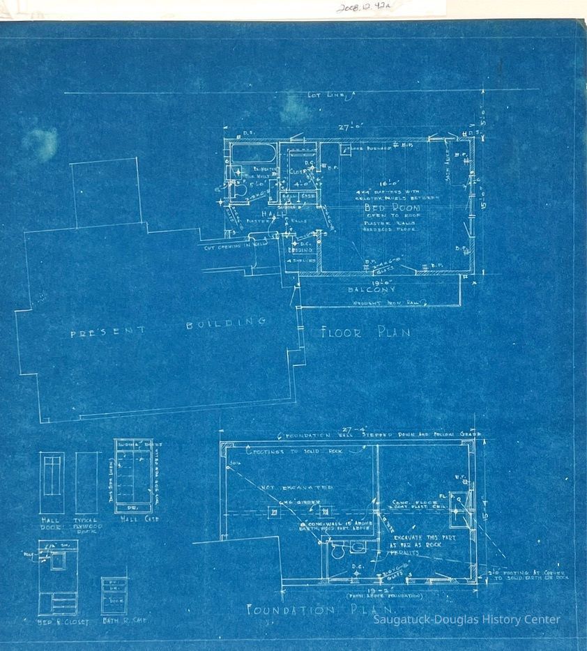 This blueprint shows a floor plan and foundation plan for an addition that is to be built onto a house. It gives some measurements and materials to be used. The same as 2008.12.42b.Collection