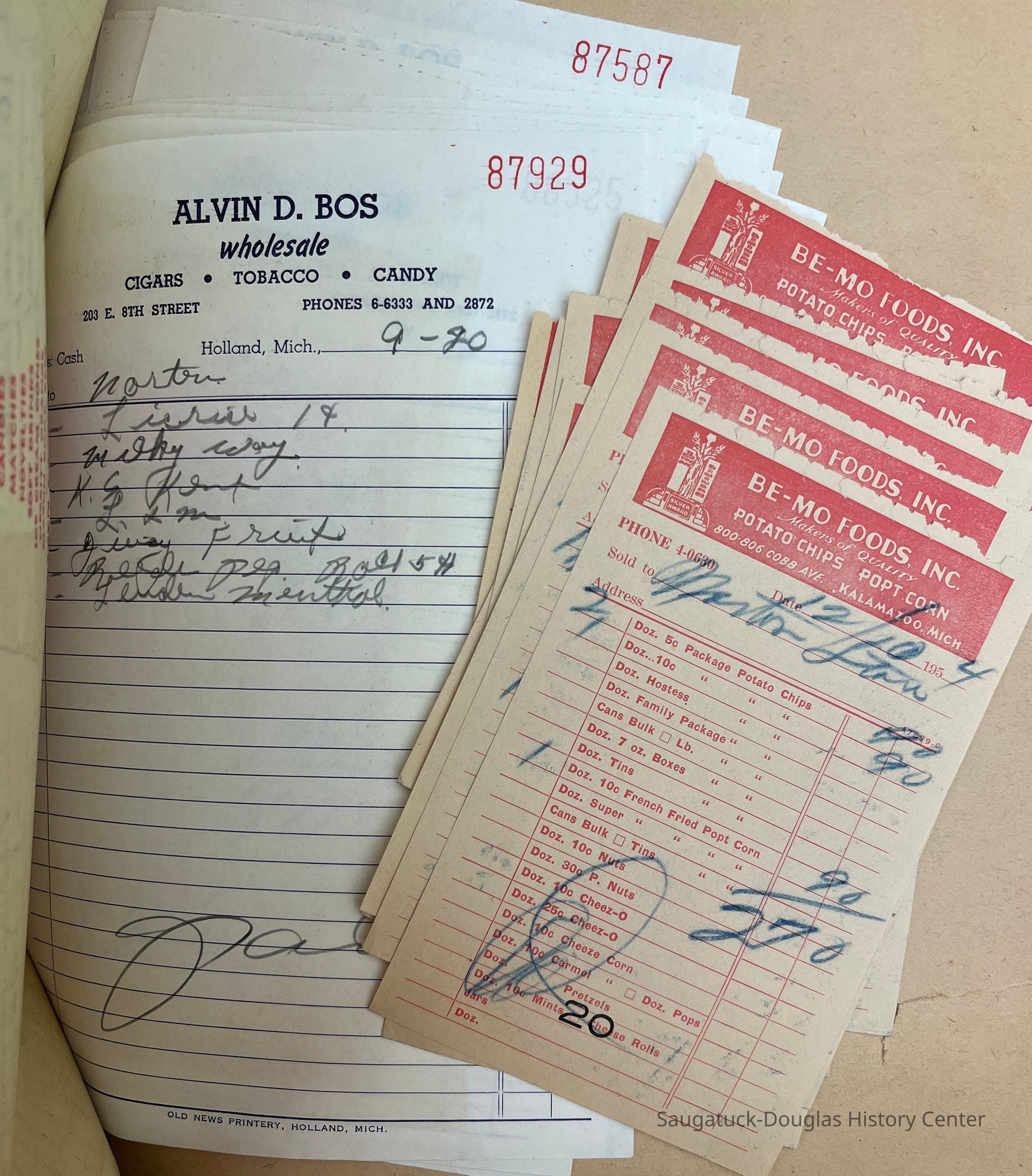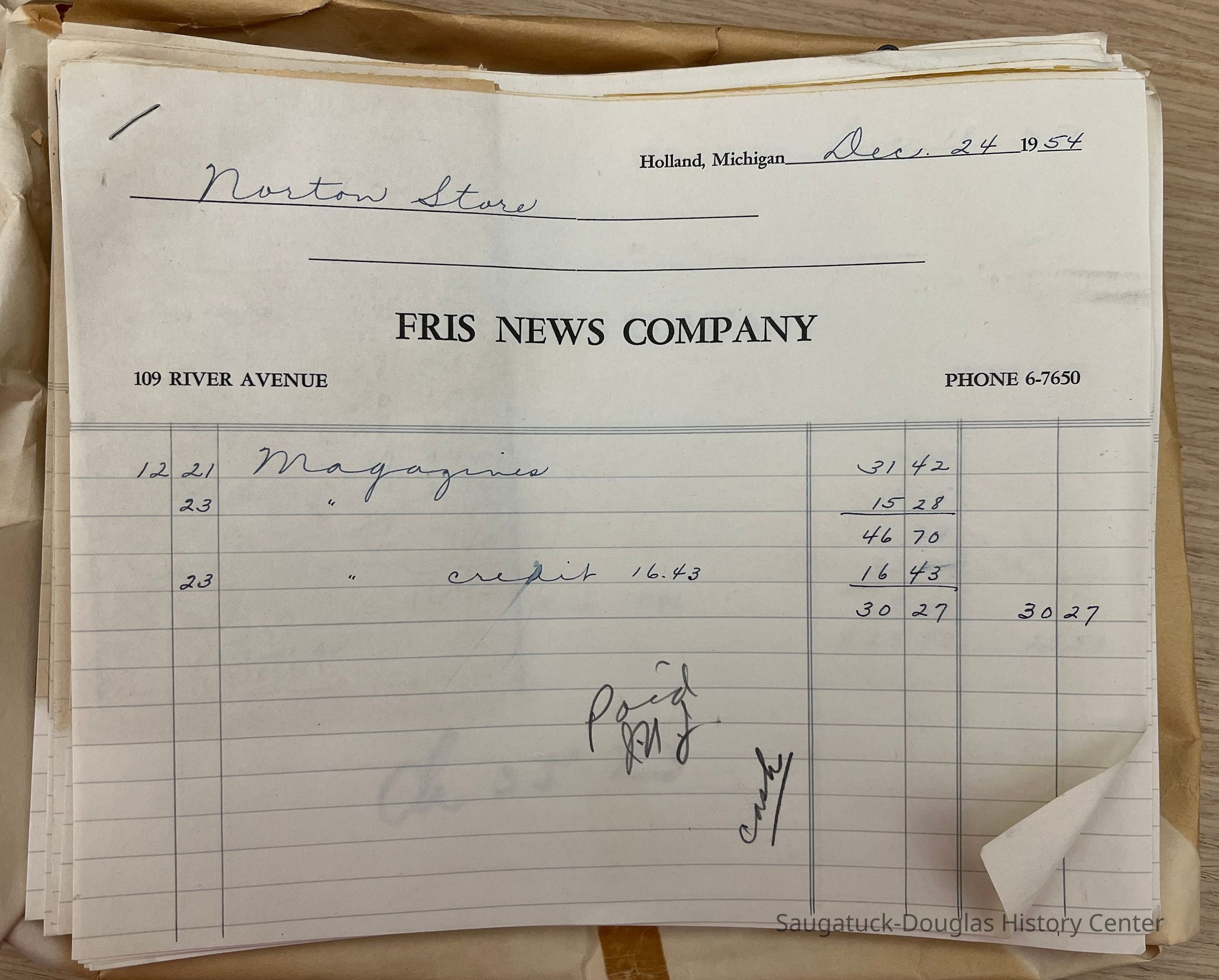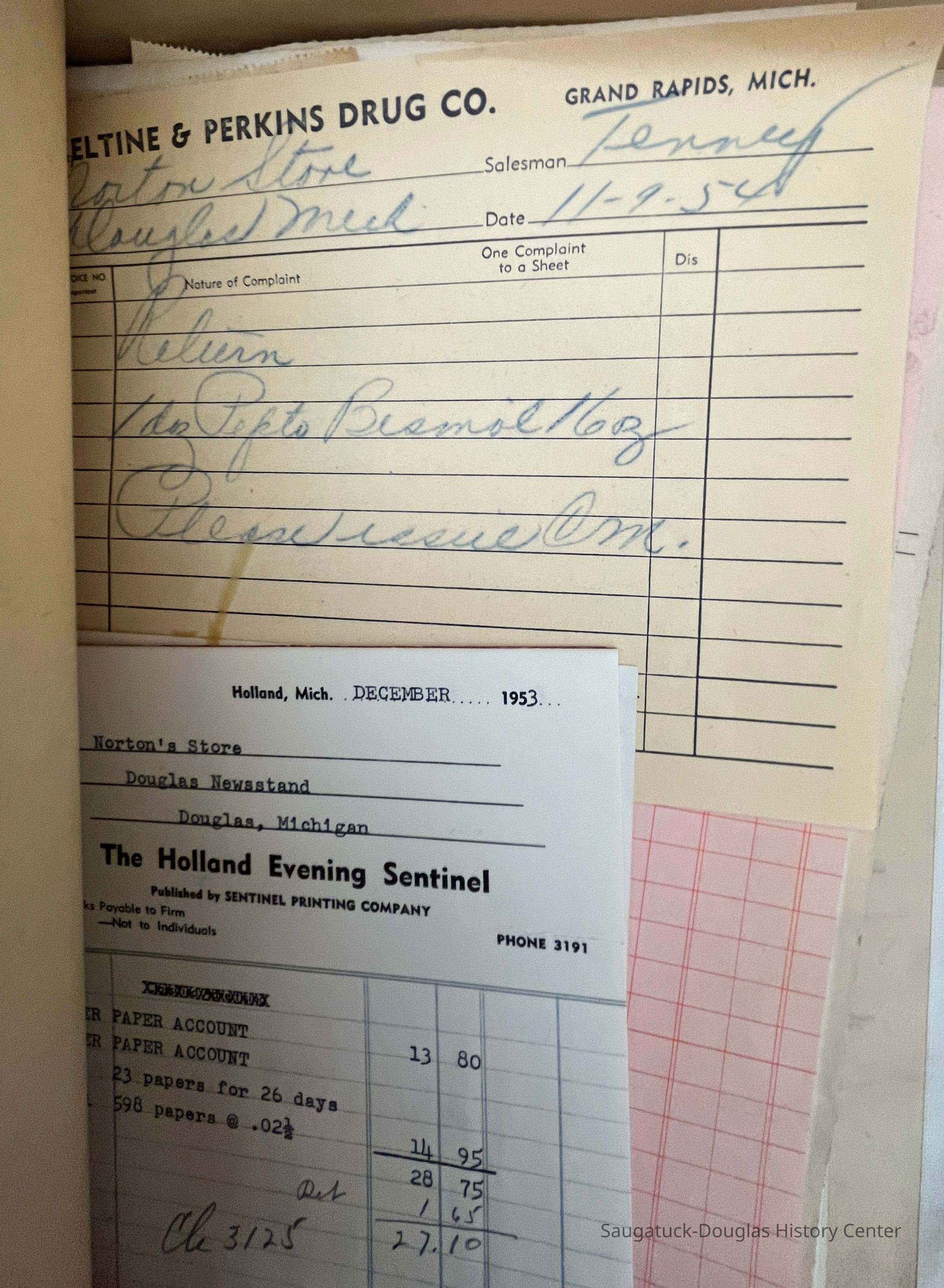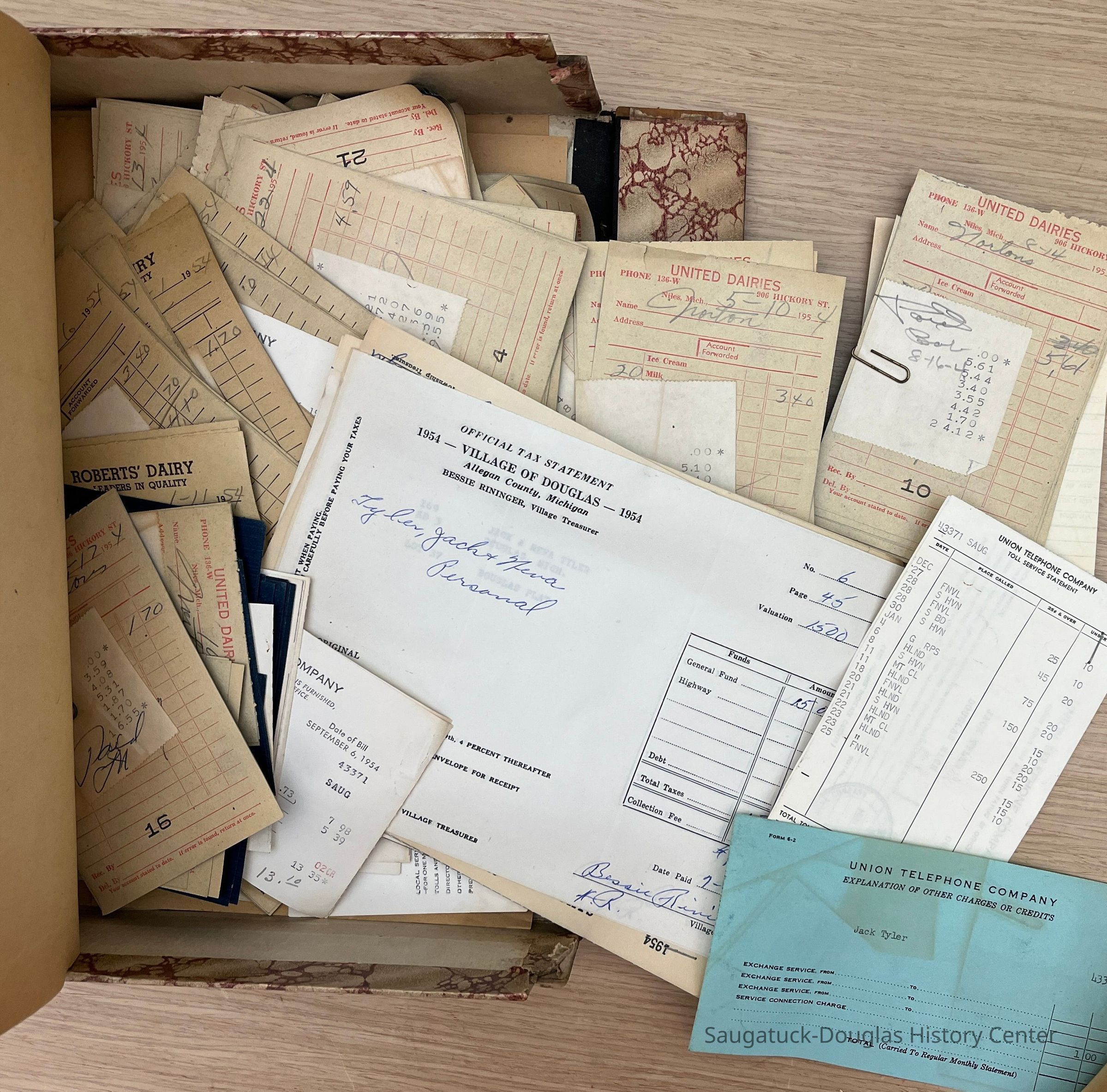 Two "Letters" document filing boxes crammed with receipts from wholesale purchases made to stock the Norton Store in Douglas in the 1950s. The photos attached to this entry give a small sampling of the contents of this collection.Context