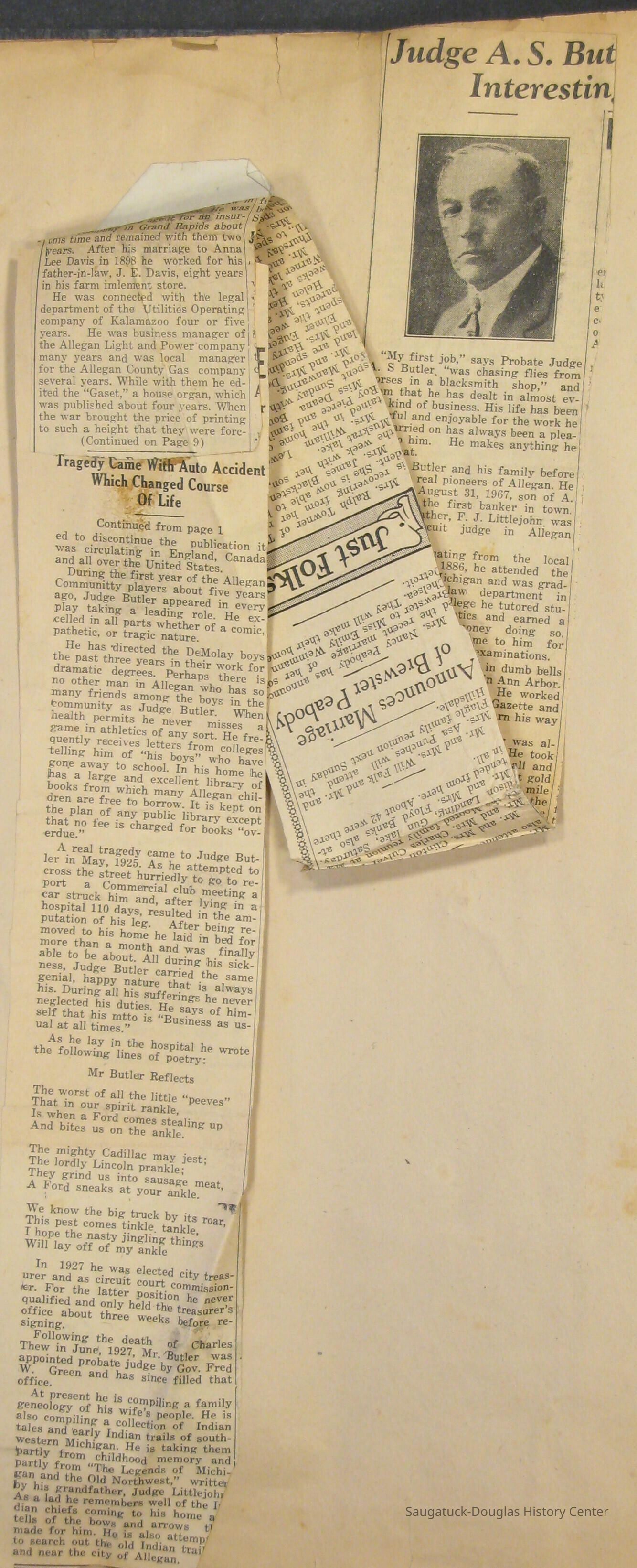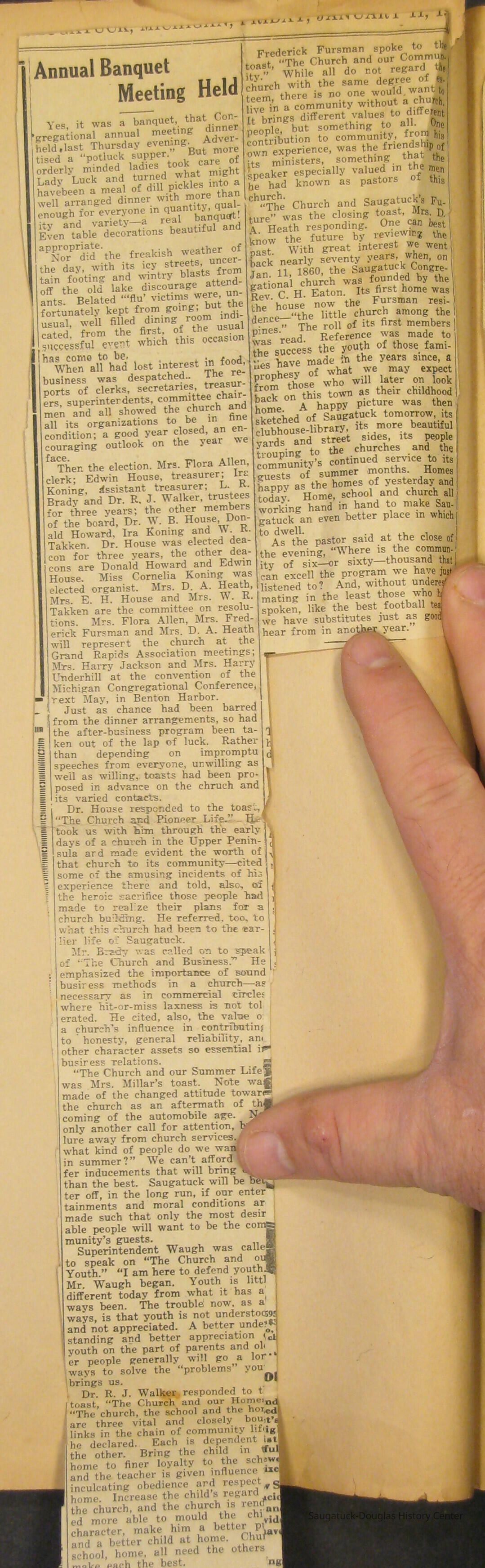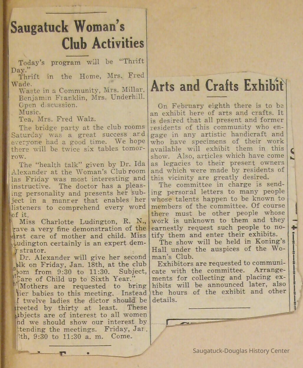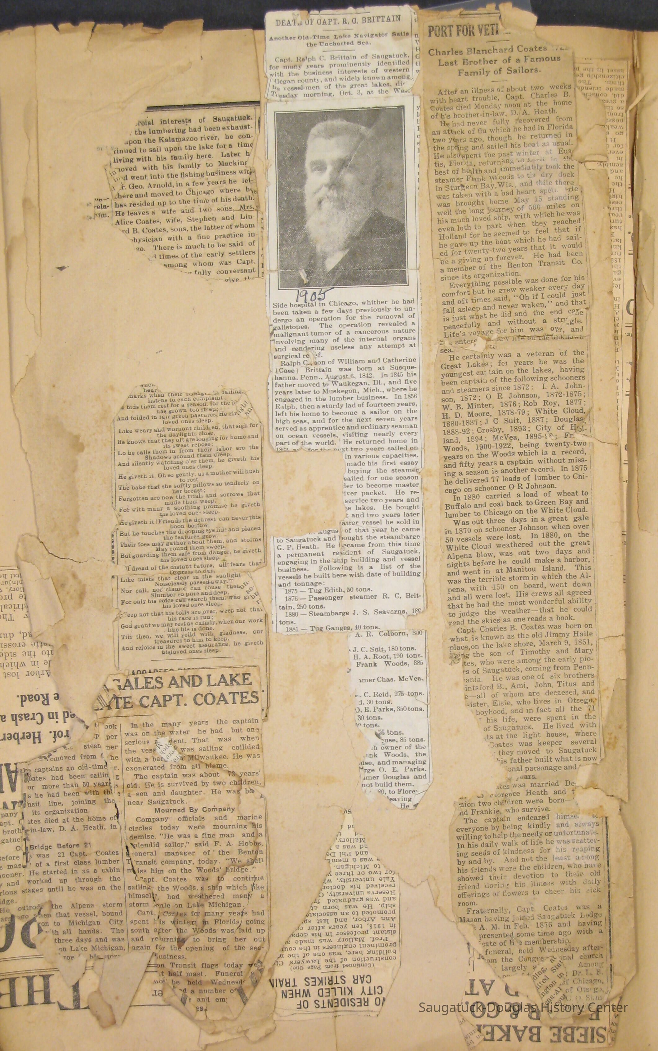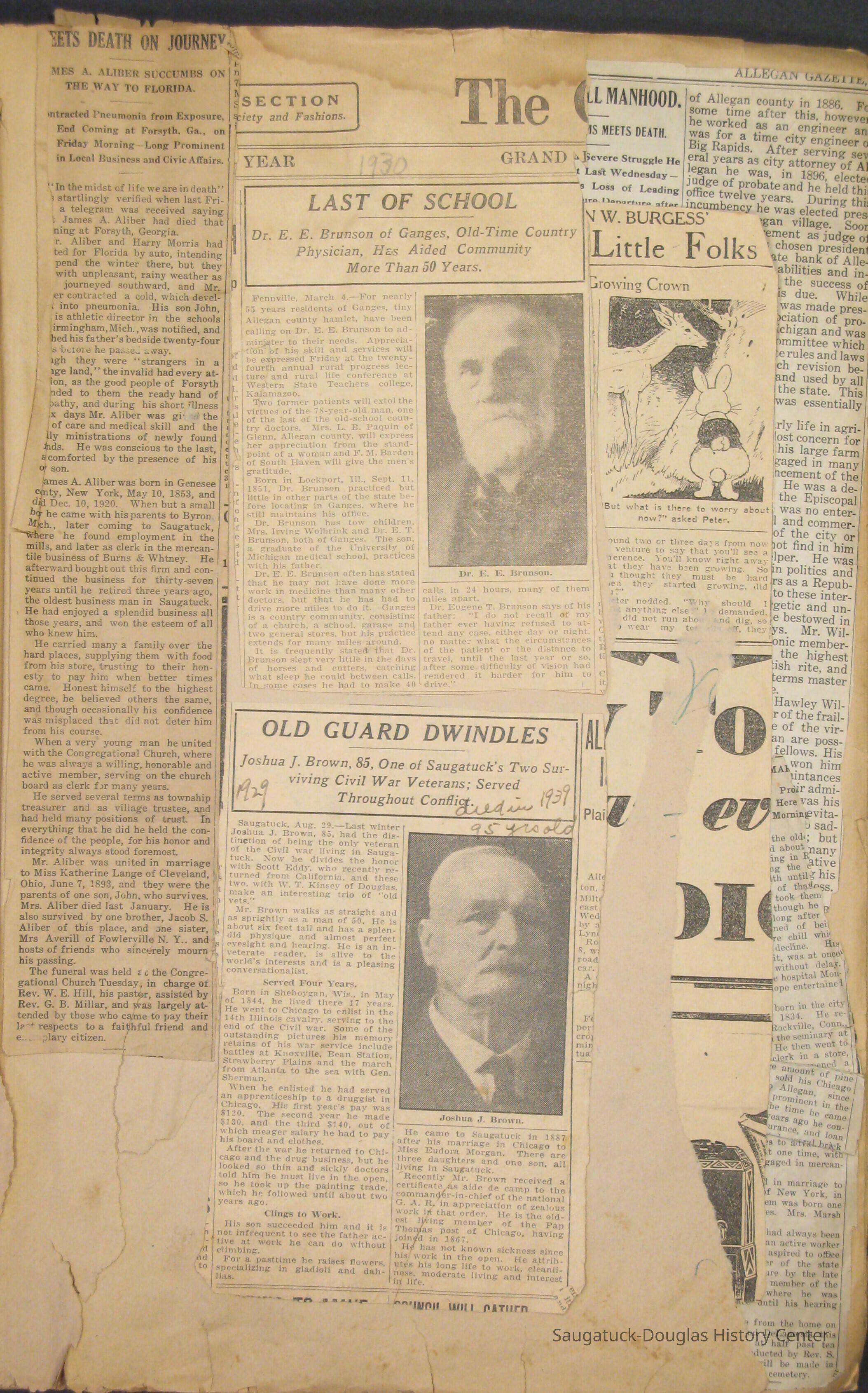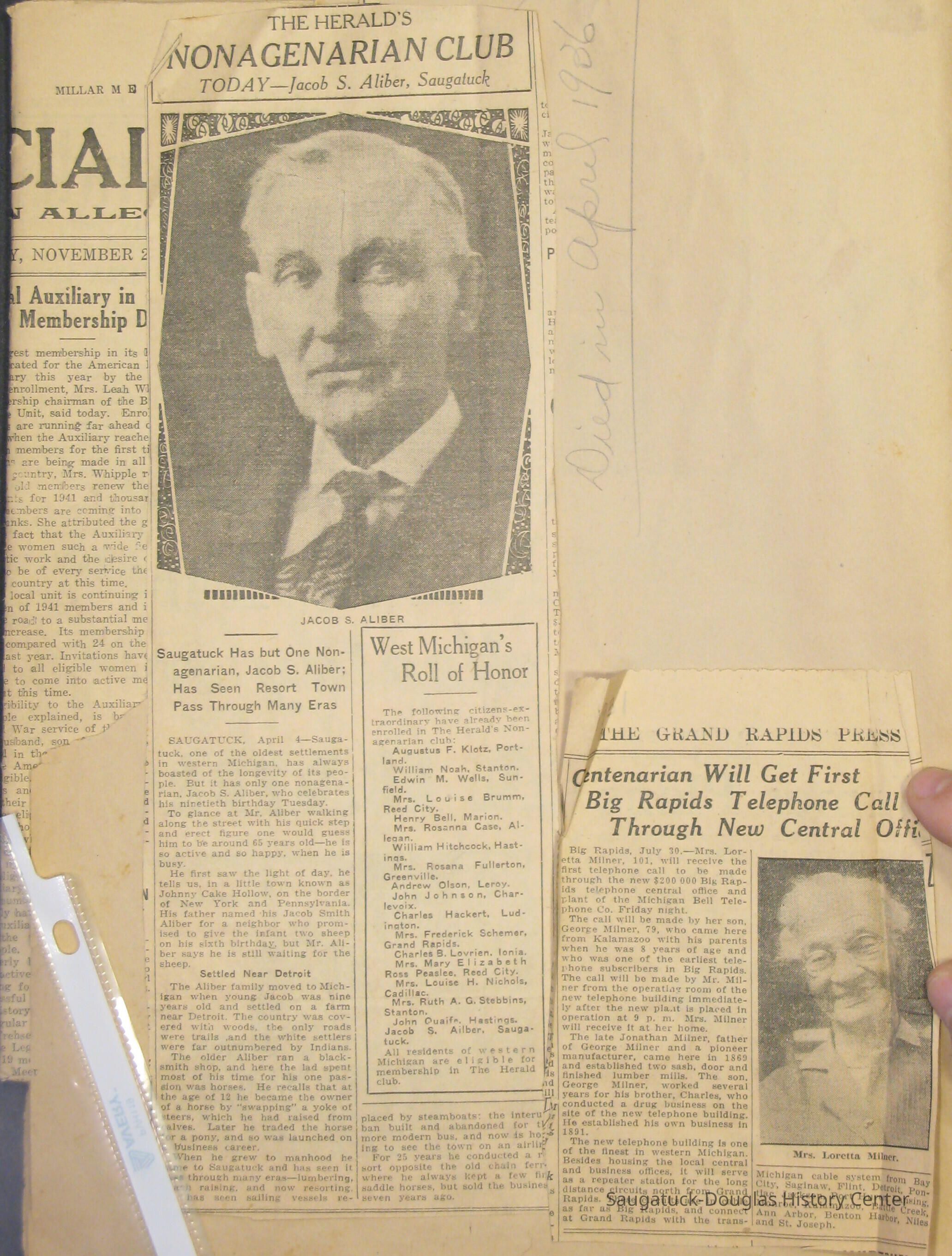 May Heath’s scrap book containing newspaper obituaries or articles about Saugatuck, Douglas and Allegan residents including