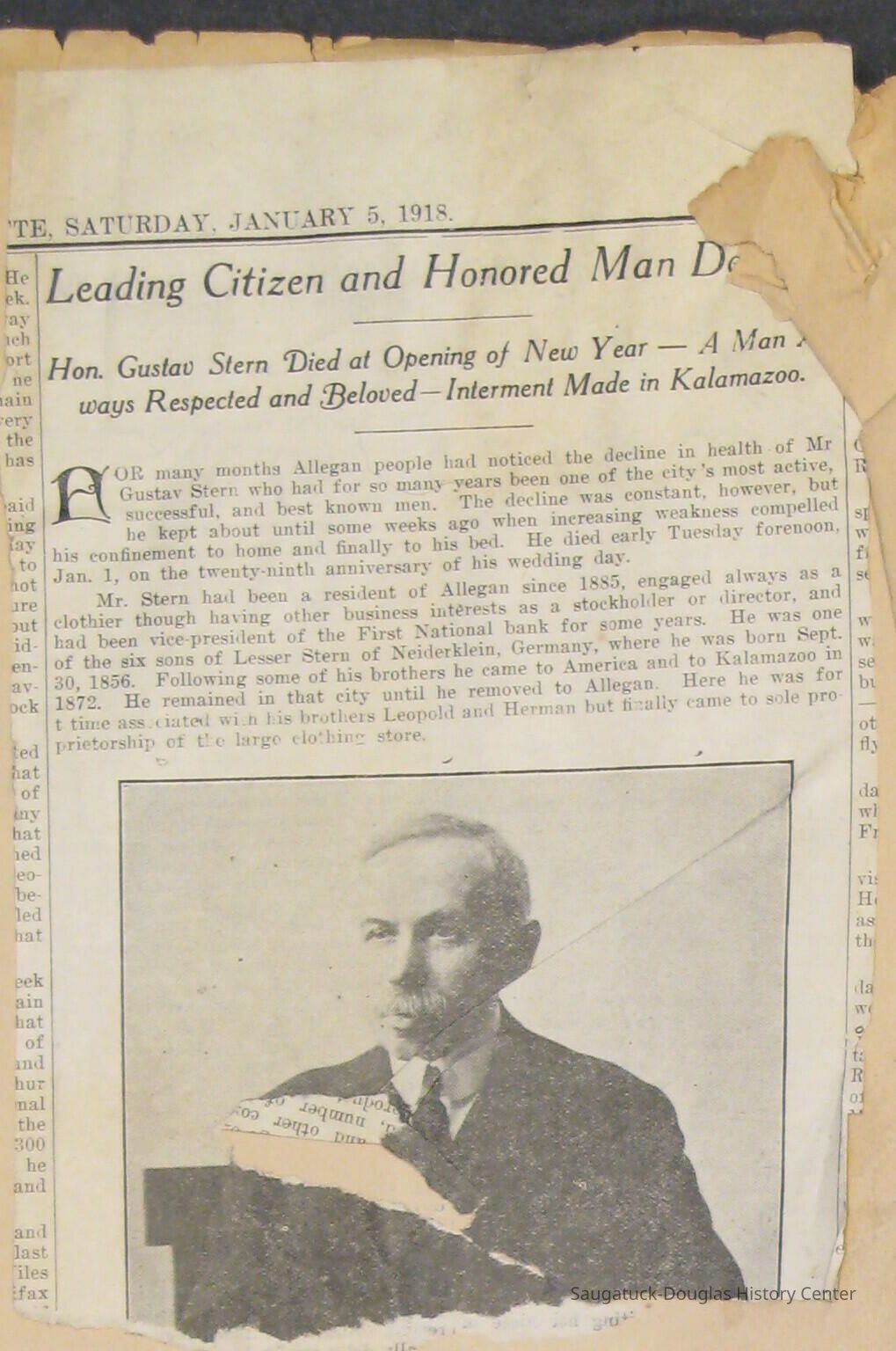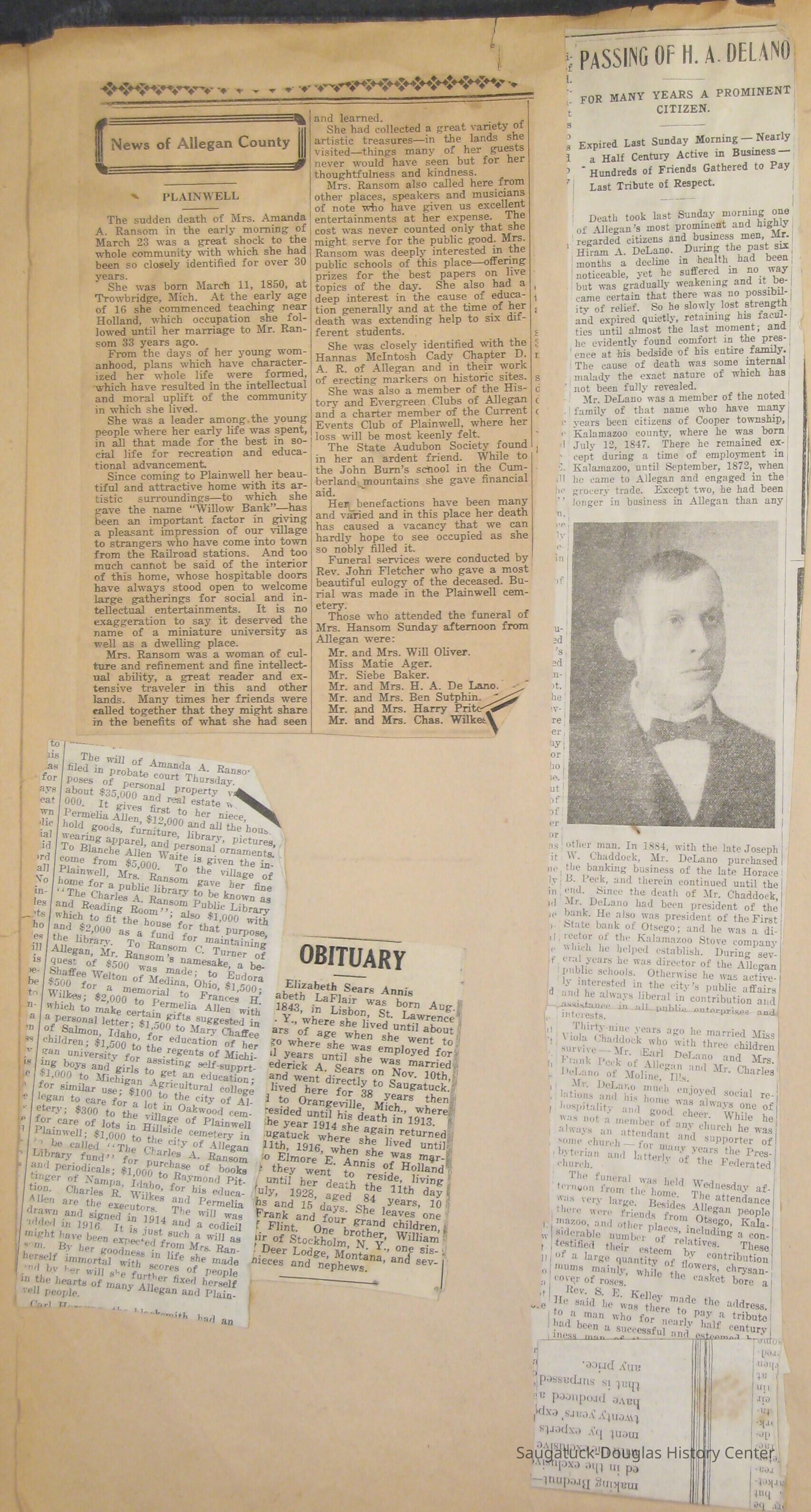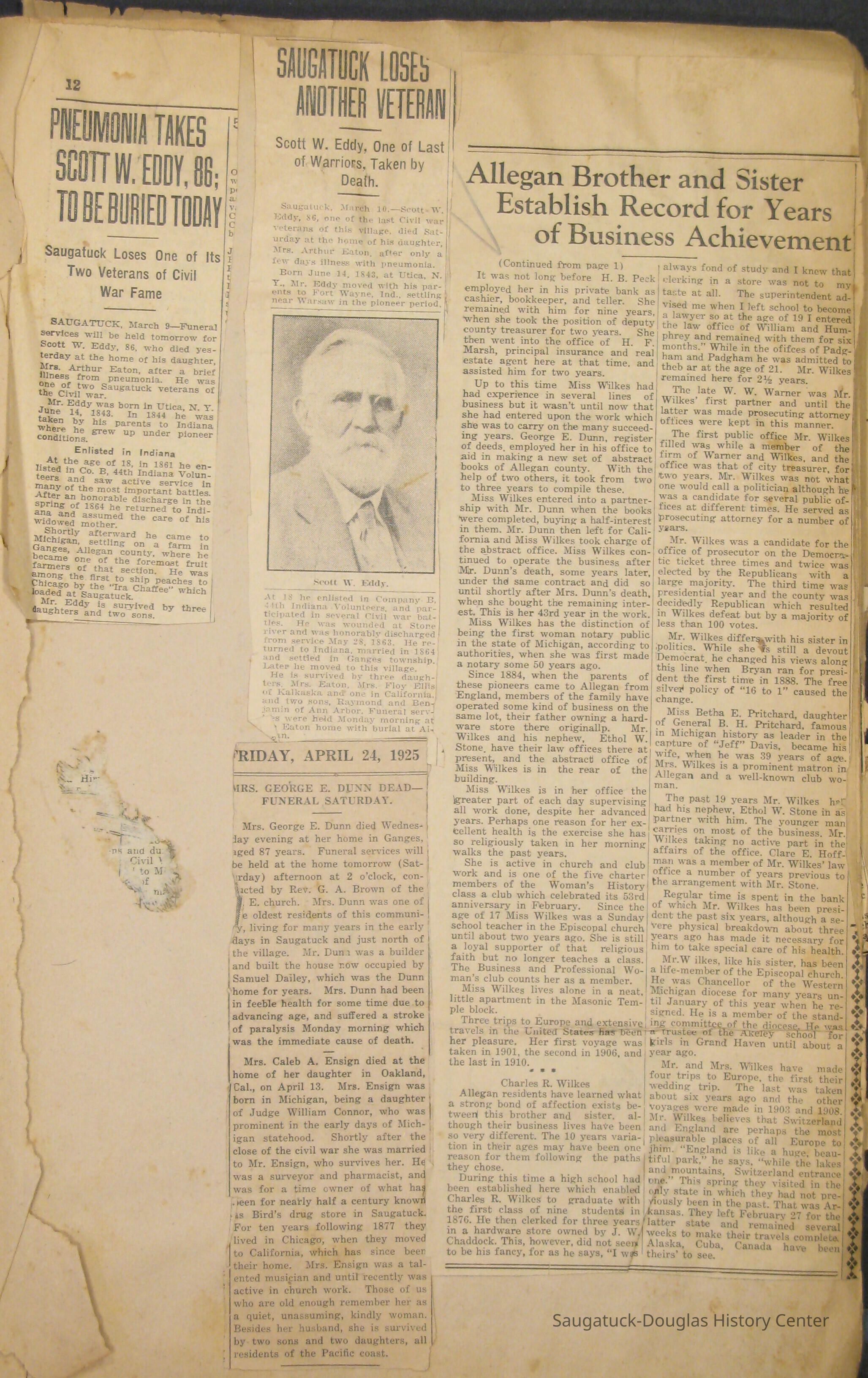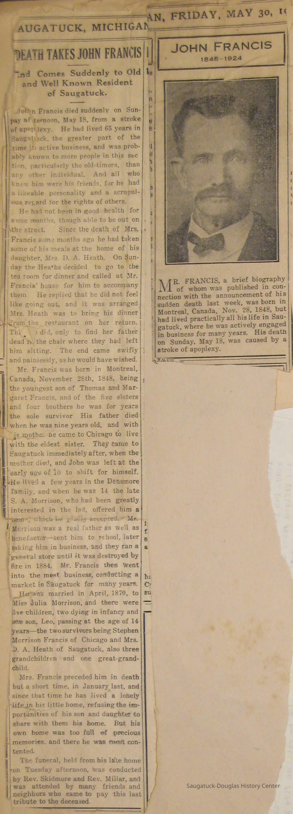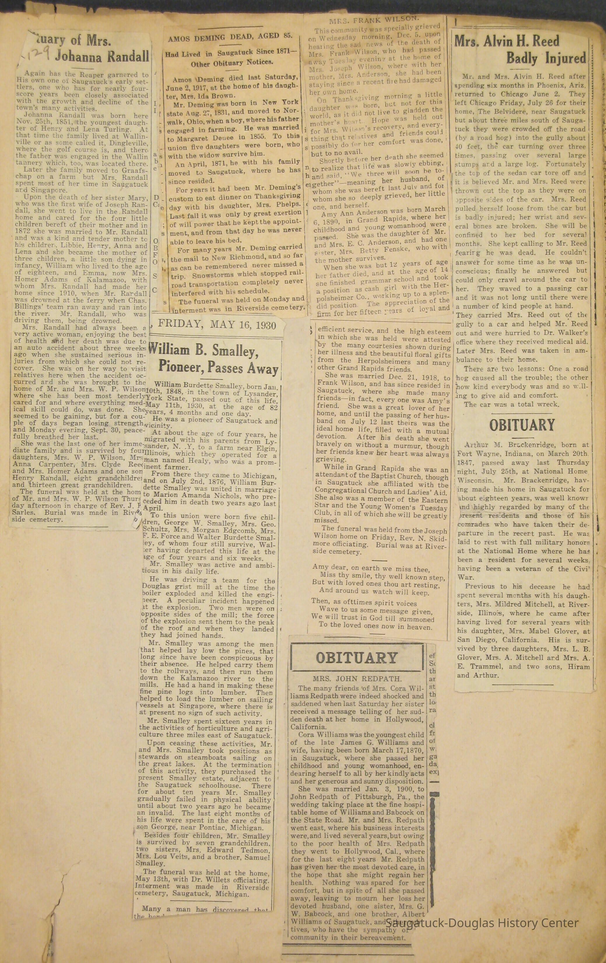 May Heath’s scrap book containing newspaper obituaries or articles about Saugatuck, Douglas and Allegan residents including