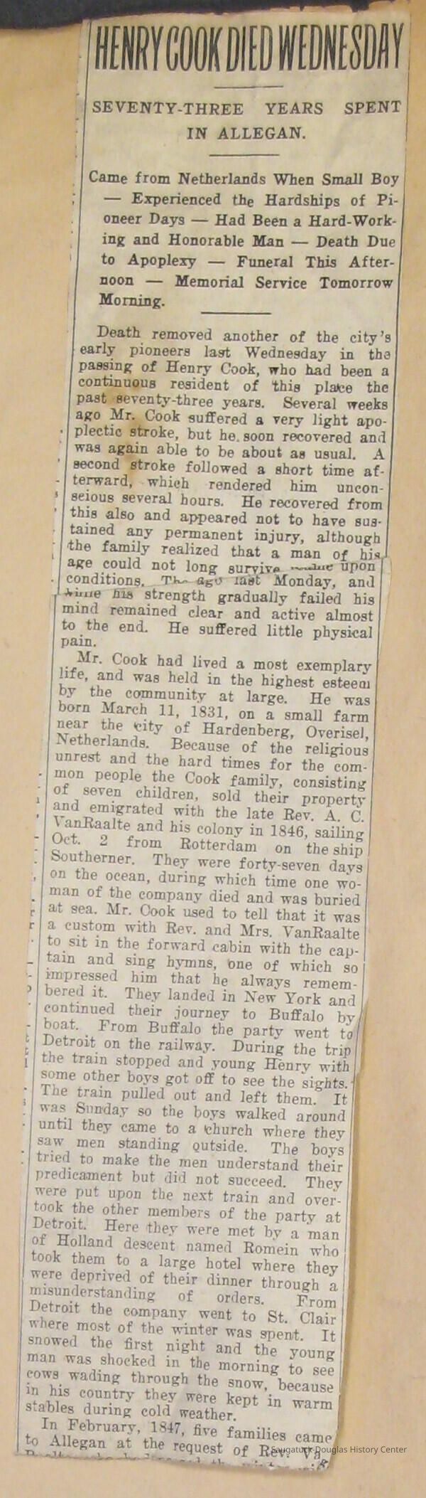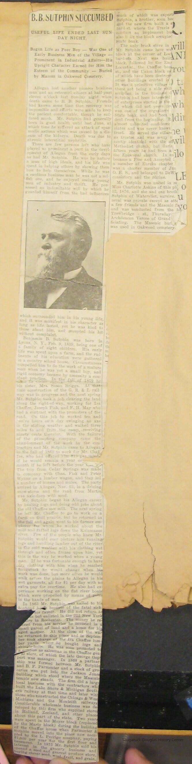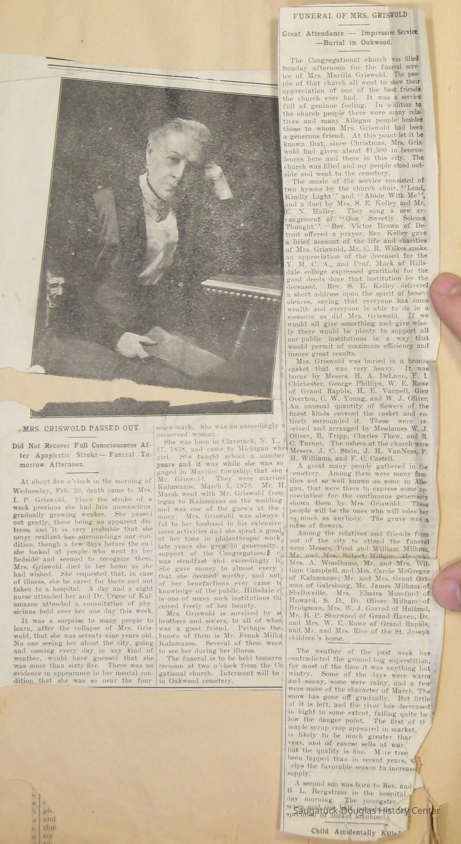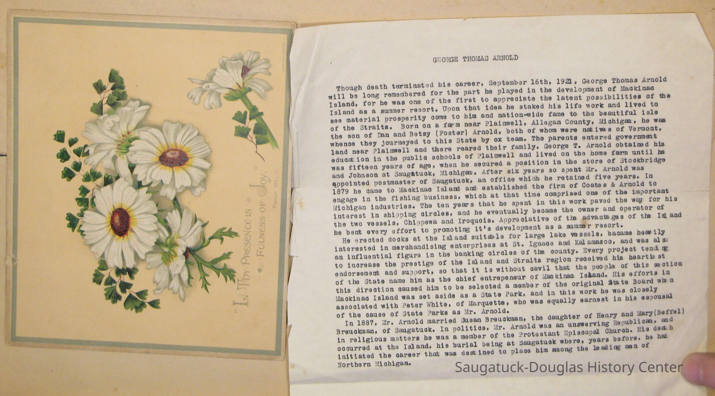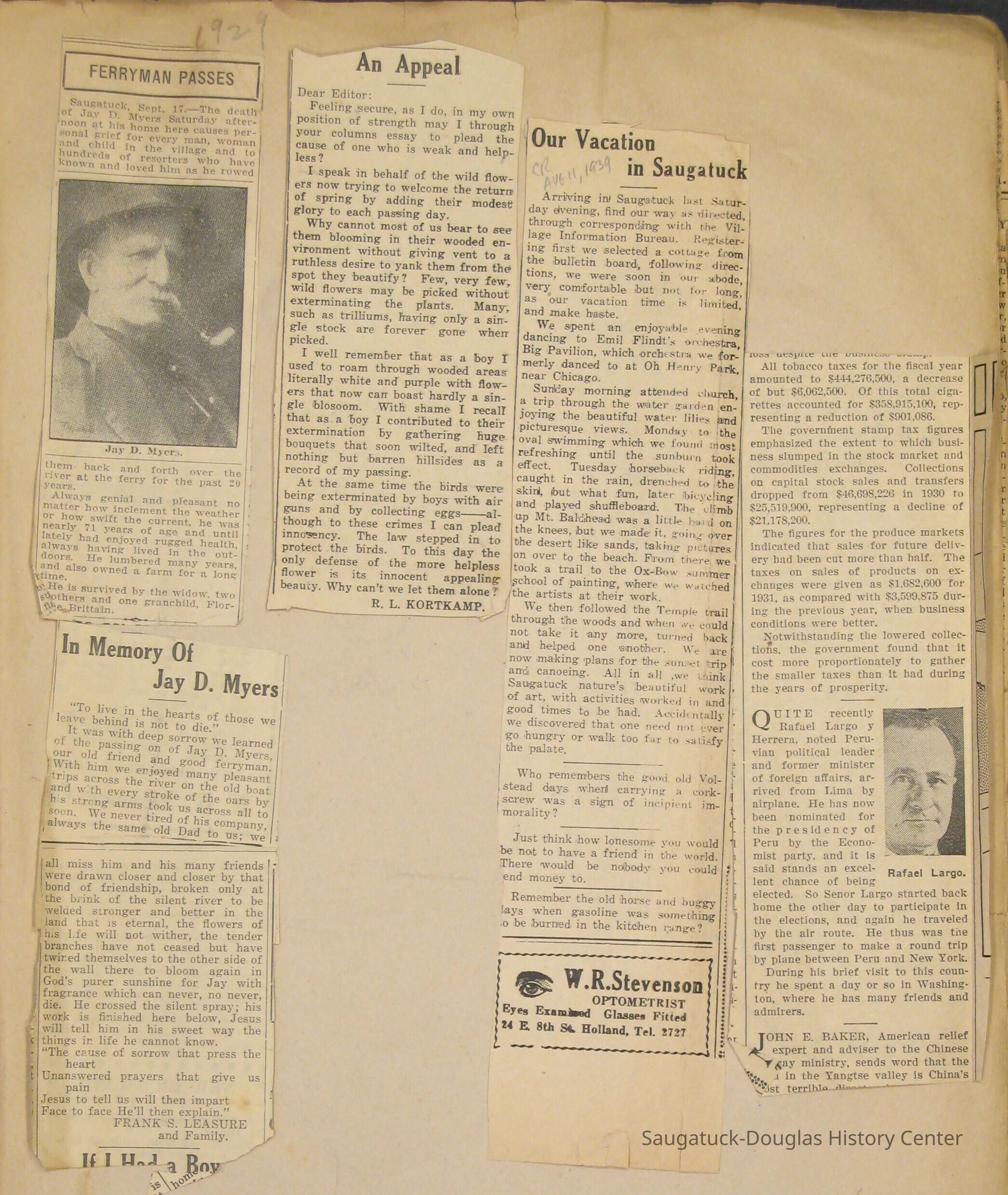 May Heath’s scrap book containing newspaper obituaries or articles about Saugatuck, Douglas and Allegan residents including