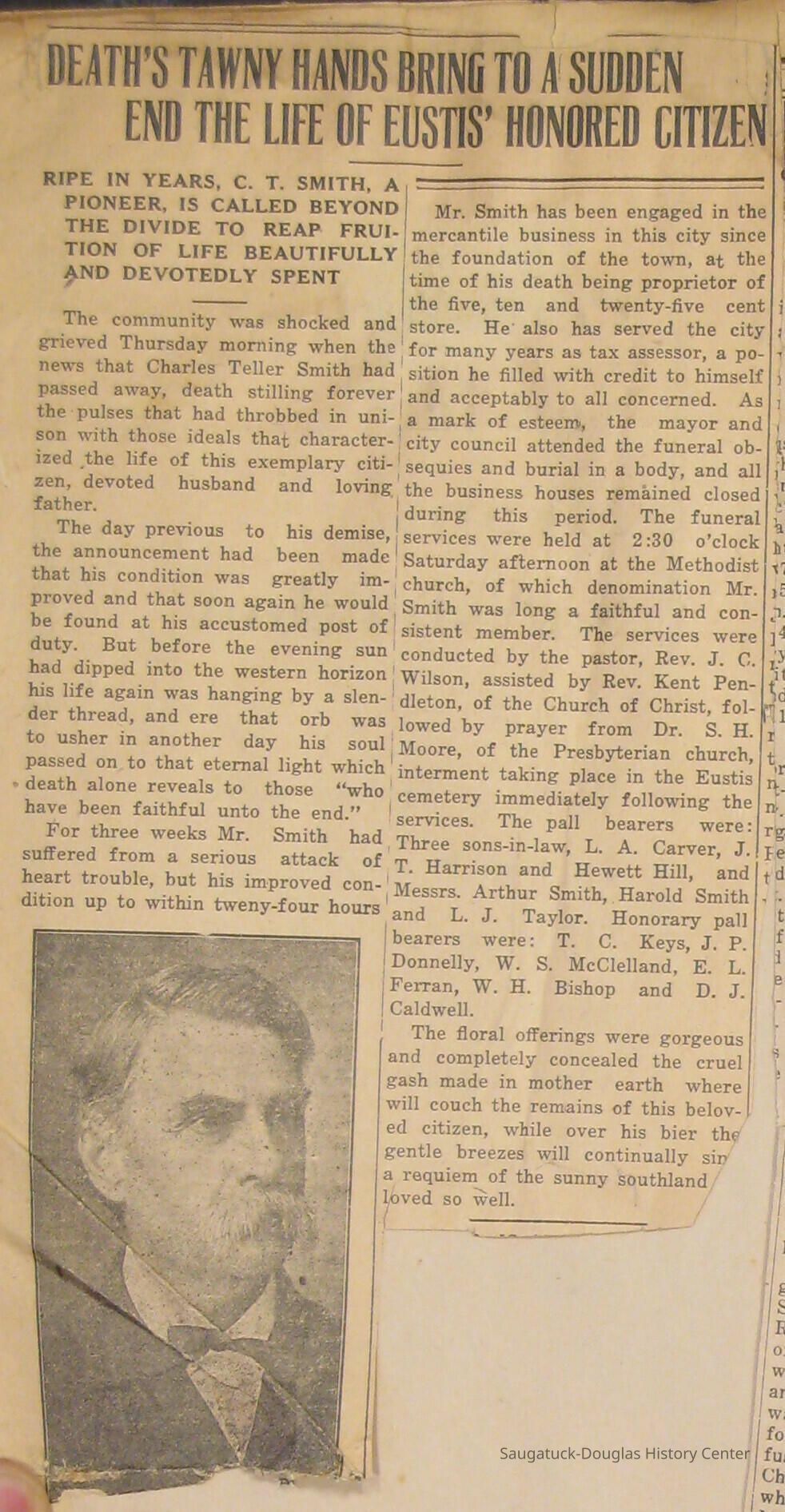 Gustav Stern; Mrs. G. H. Shrizer - mother of Mrs. Henry Winter, Henry Shriver, Alexander Falconer, "Dick" Heuer, Dr. W.B. Bills, Horace D. Moore, John F. Henry, Charles Clark Billings, Henry Cook, B.B. Sutphin, George Hames, Mrs. Margaret Holt, wedding of Miss Helen Henry to Mr. Amos Floyd Everett, Mes. A. Aliber, Dr. E.E. Brunson, Joshua J. Brown, E.R. Priehs, Samuel D. Pond, Frank H. Williams, H.F. Marsh, Jacob S. Aliber, Loretta Miller, George H. Niles, Mrs. Johanna Randall, Amos Deming, William B. Smalley, Mrs. Frank Wilson/Amy Ann Anderson, Mrs. John Redpath/Cora Williams, Mrs. Alvin H. Reed, Arthur M. Breckenridge, Jay D. Myers, R.L. Kortkamp appeal for flowers, description of a 1939 visitor's experience, Rafael Largo Y Herrera, Mrs. I.P. Griswold, C.T. Smith of Eustis/Charles Teller Smith, Frank Ellsworth Wilson, W.H. Allen/William Harrison Allen, Charles A. Plummer, Mrs. Judson Doud, Sid L. Conrad, Mrs. Henry Schnobel/Clara Caroline Margaretha Witimers, Winona Mariam Lindsay, Mr. Hollister F. Marsh, Mr. Henry Cook, Mrs. Amanda A. Ransom, Elizabeth Sears Annis, Hiram A. LeLano, Mrs. William J. Hancock, Archie T. MacDonald, Harriet Natalie Spencer, Nellie Newcomb, Mrs. Jame Koning, Judge A.S. Butler, Adam Schuler, Eliza Simmons, George R. Stone, Mrs. William J. Hancock, Charles J. Frehse, Mrs. Calvin Whitney/Johanna Clara Burns, Winifred Ruth Sewers, Lucy Wiley, Scott W. Eddy, George E. Dunn, Charles R. Wilkes, John F. Henry, Issac Wilson, Loretta Milner, Ward Reid, General B.D. Pritchard, Richard L. Newnham, Mary Phelps, George Thomas Arnold, John Francis, Siebe Baker/founder of Baker furniture, Charles Blanchard Coates, A.B. Taylor, Arnold C. Weeks, and Thornton W. Leland.