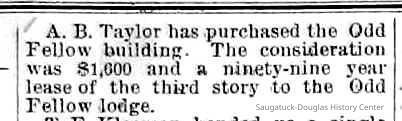 Odd Fellows Saugatuck Lodge #196, Priest, John 1836-1922, Williams, James Grant 1831-1908, Taylor, Alfred Blake Sr. 1846-1920Person or Organization