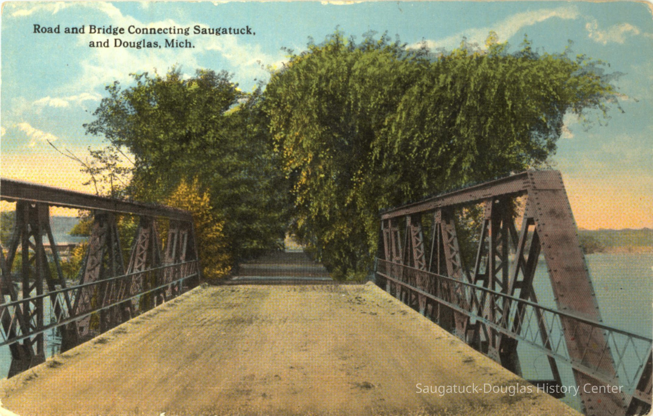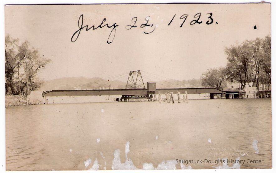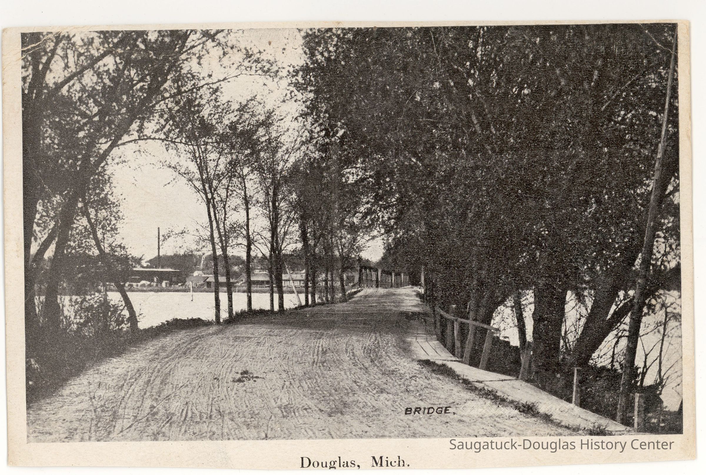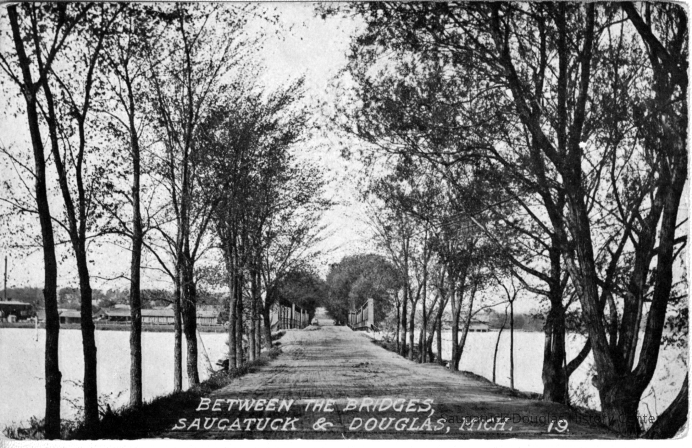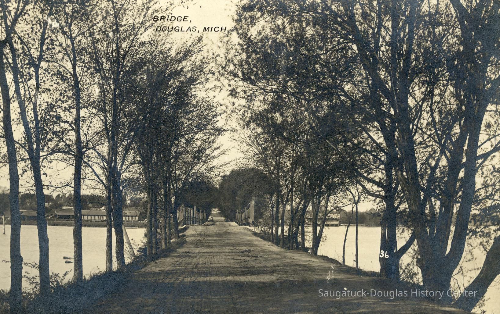 Digital images of the earthen causeway and swing bridge or draw bridge that once crossed the Kalamazoo River and connected Saugatuck and Douglas. This bridge was slightly further upriver than the present Blue Star Highway bridge that was built in 1937.Photograph Details