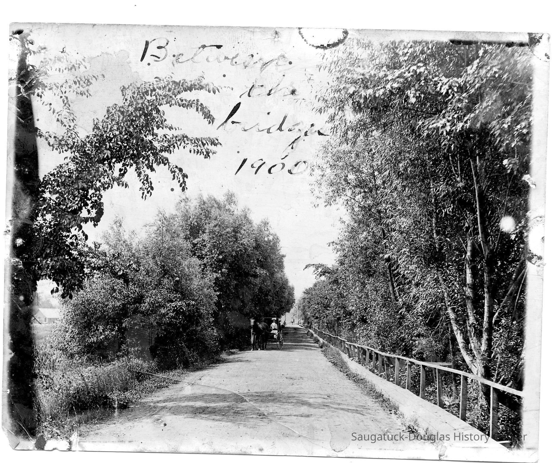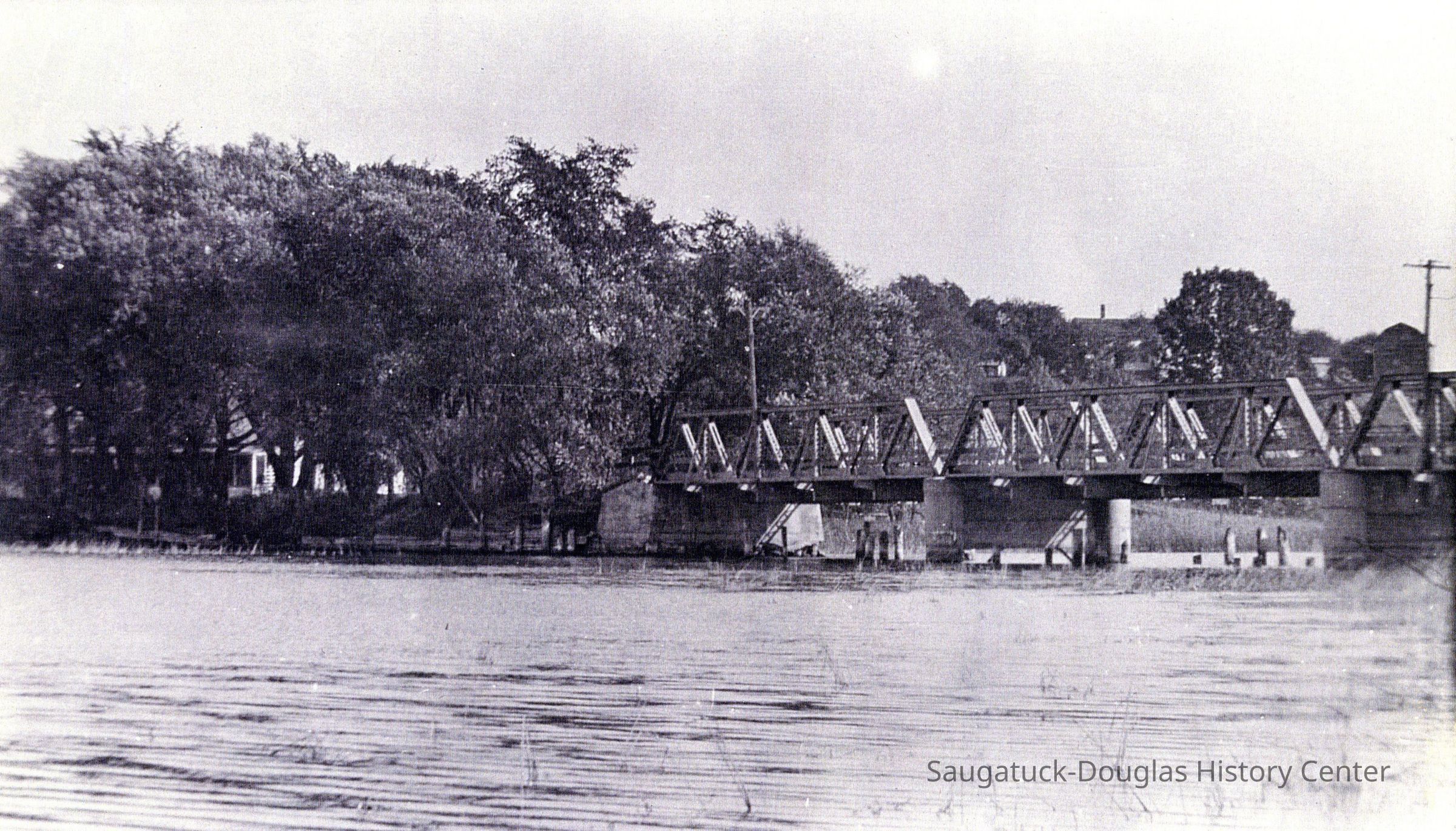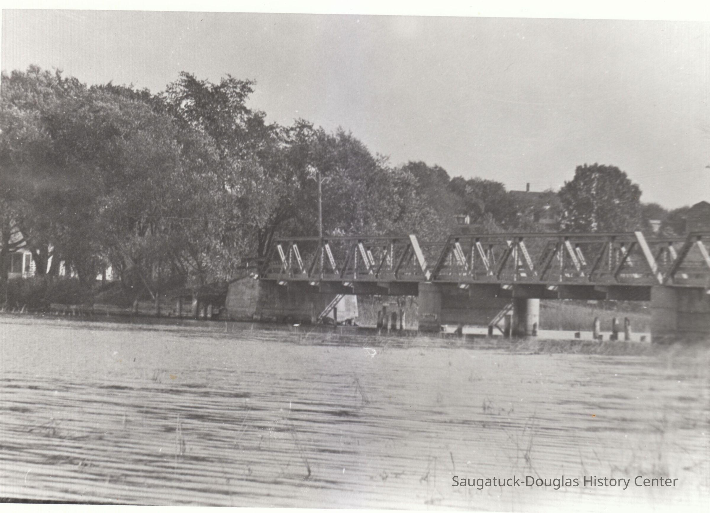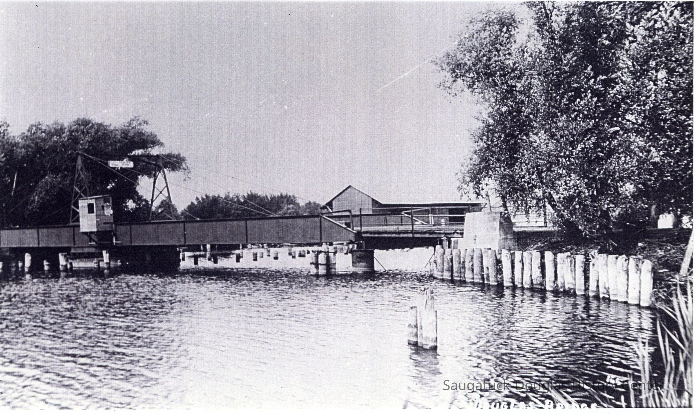 Digital images of the earthen causeway and swing bridge or draw bridge that once crossed the Kalamazoo River and connected Saugatuck and Douglas. This bridge was slightly further upriver than the present Blue Star Highway bridge that was built in 1937.Photograph Details