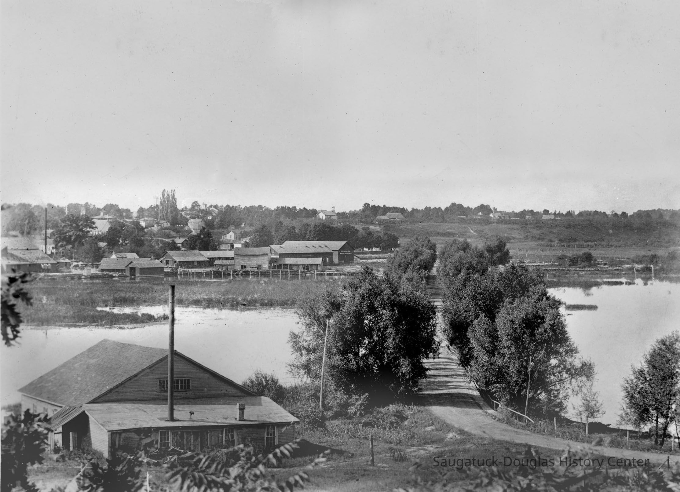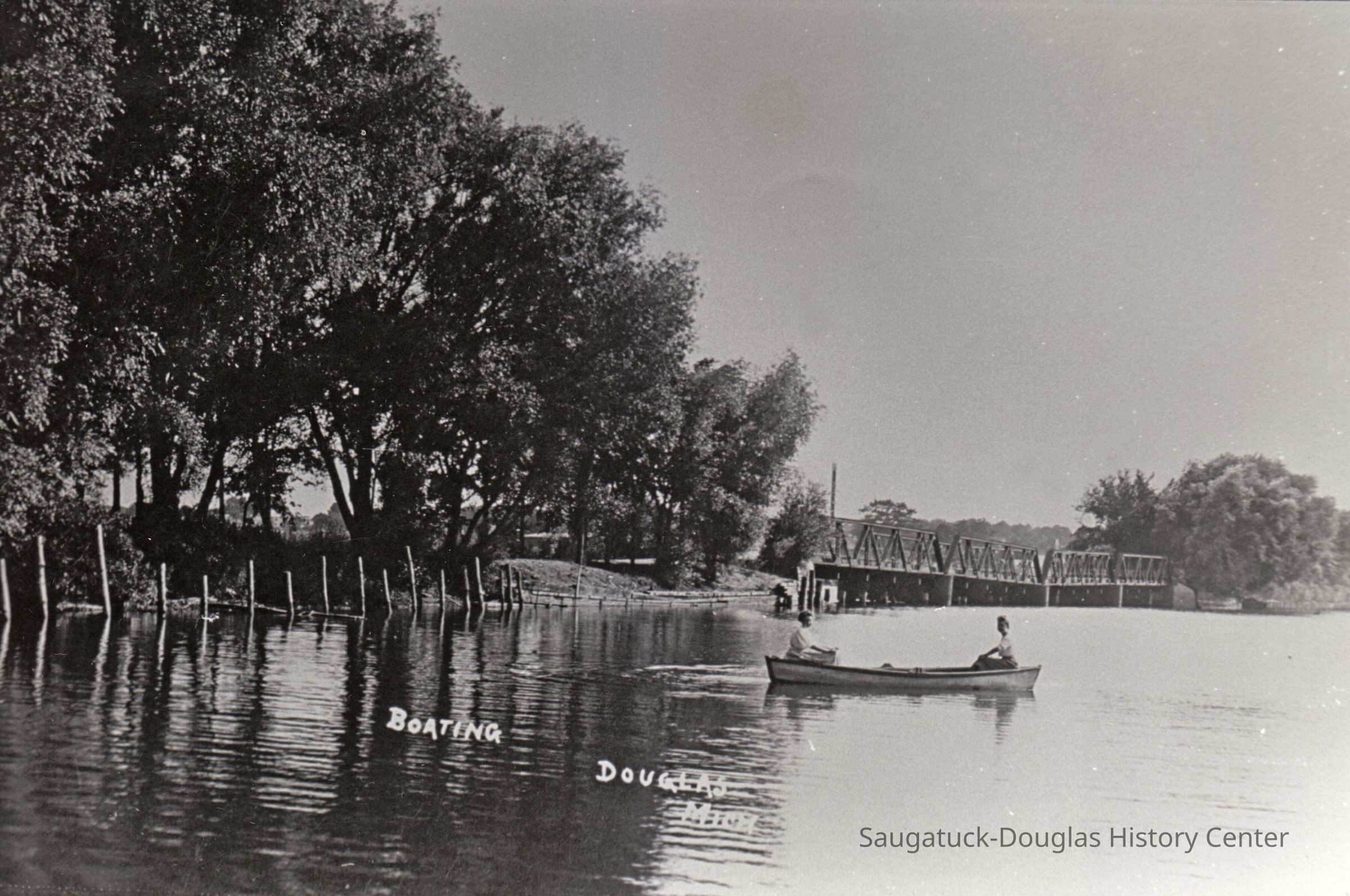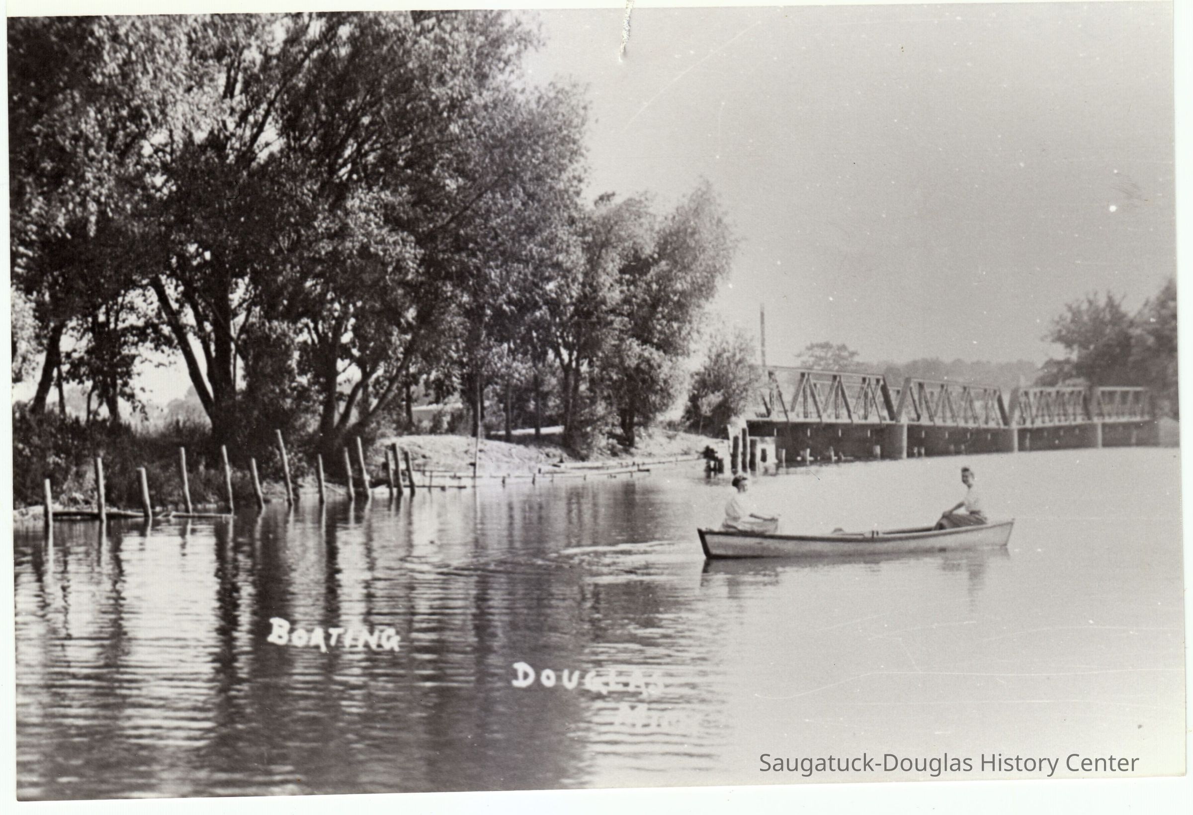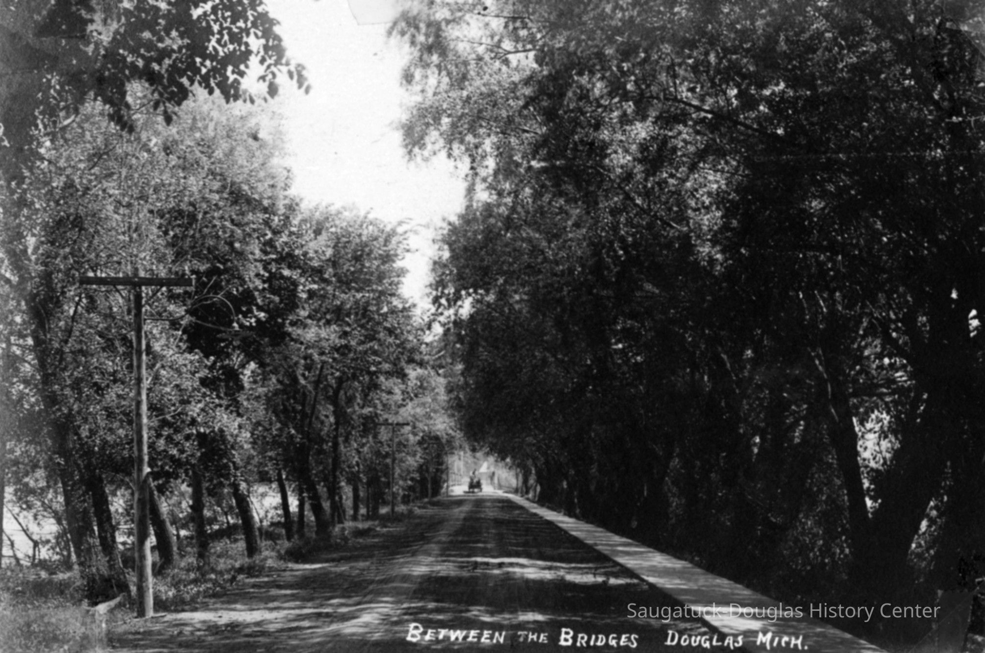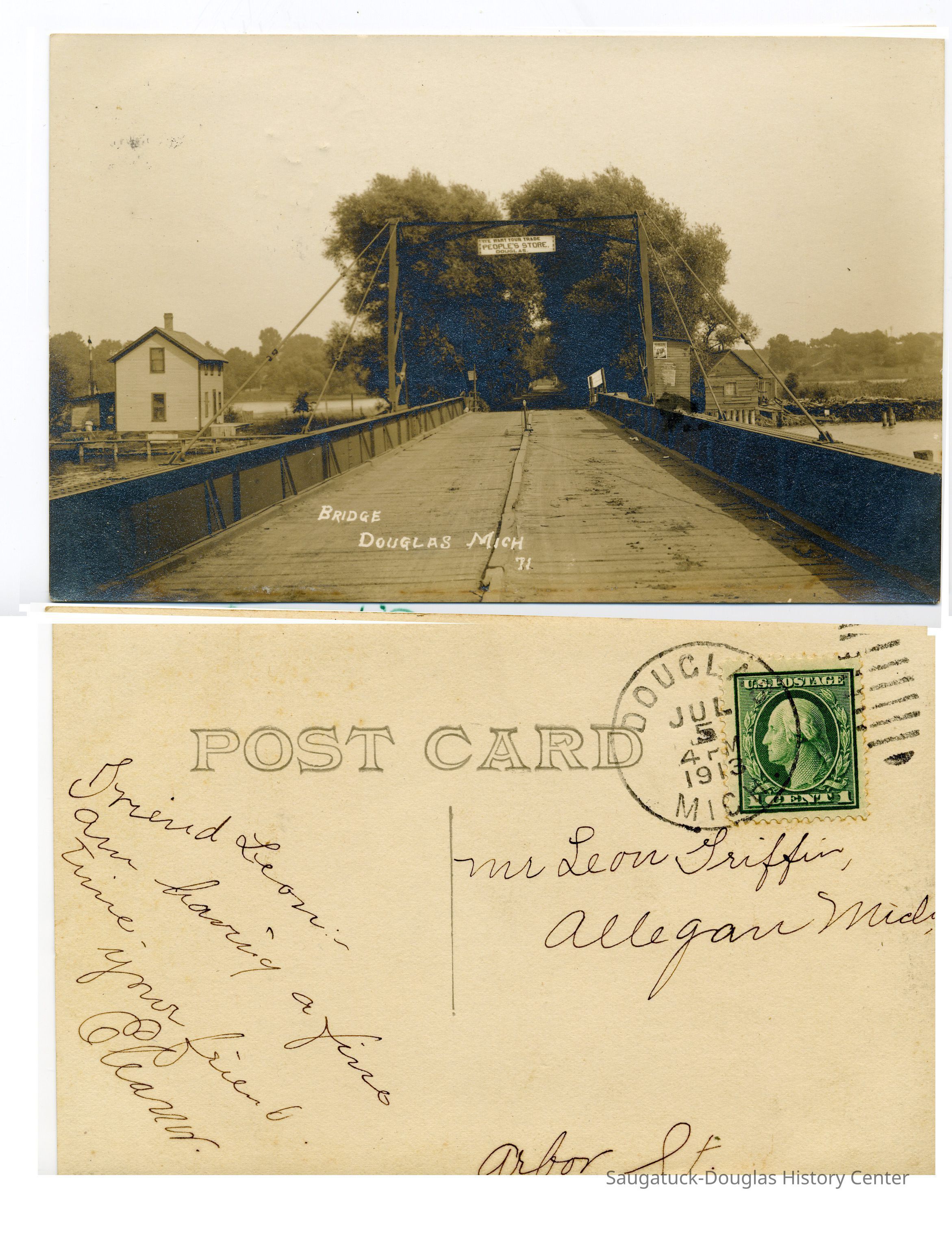 Digital images of the earthen causeway and swing bridge or draw bridge that once crossed the Kalamazoo River and connected Saugatuck and Douglas. This bridge was slightly further upriver than the present Blue Star Highway bridge that was built in 1937.Photograph Details
