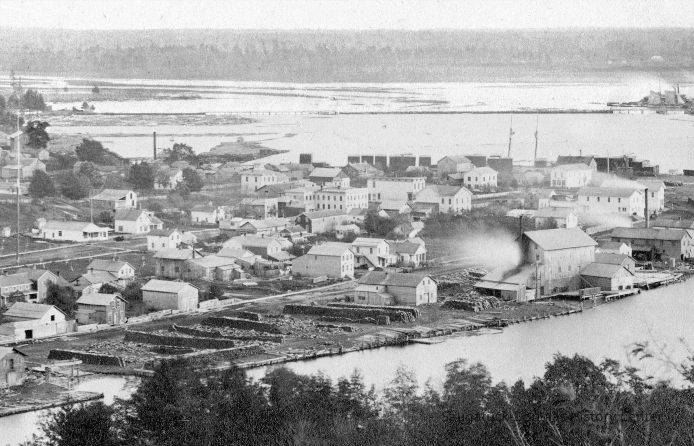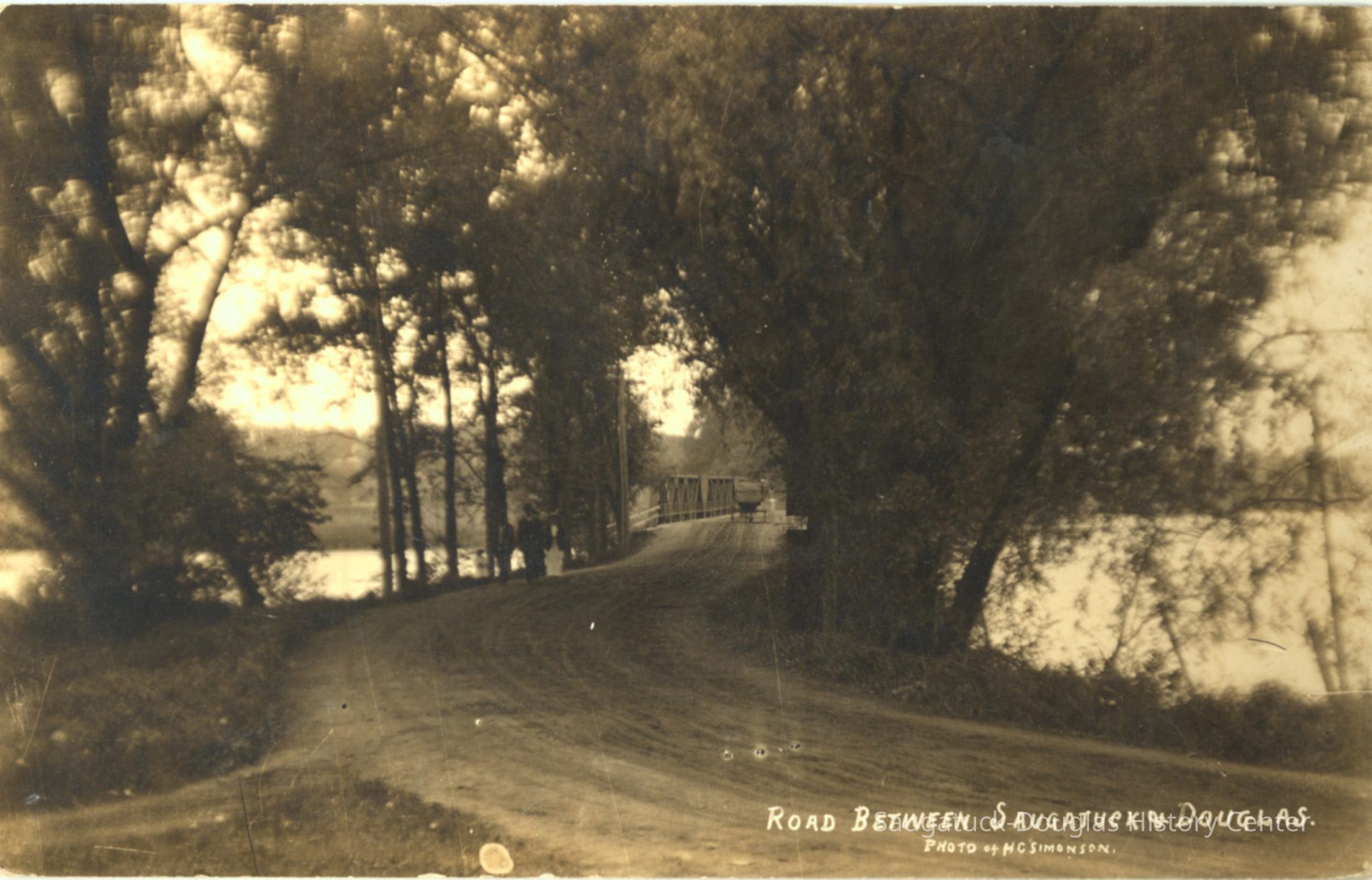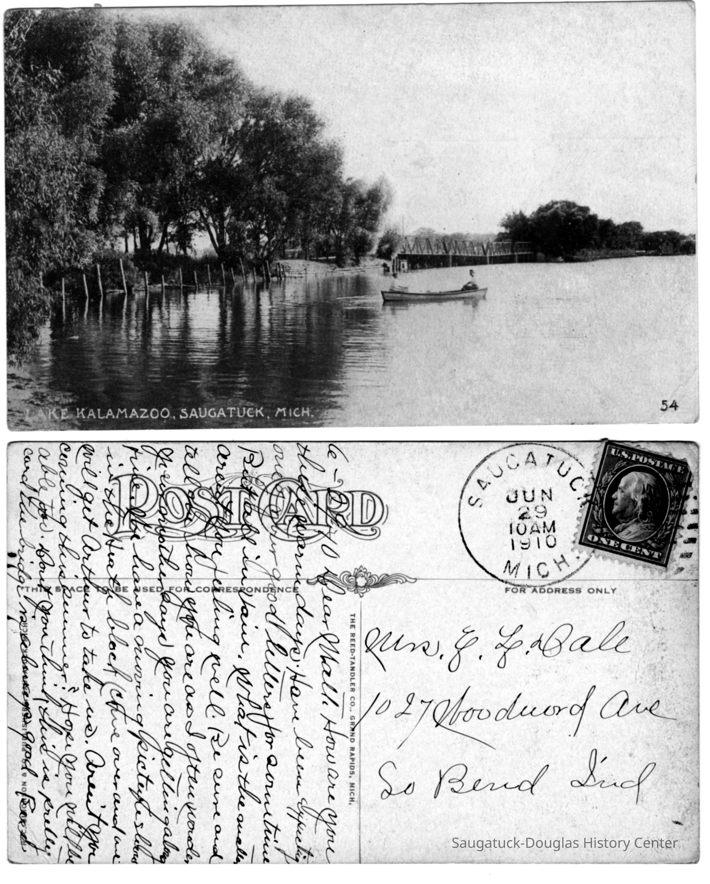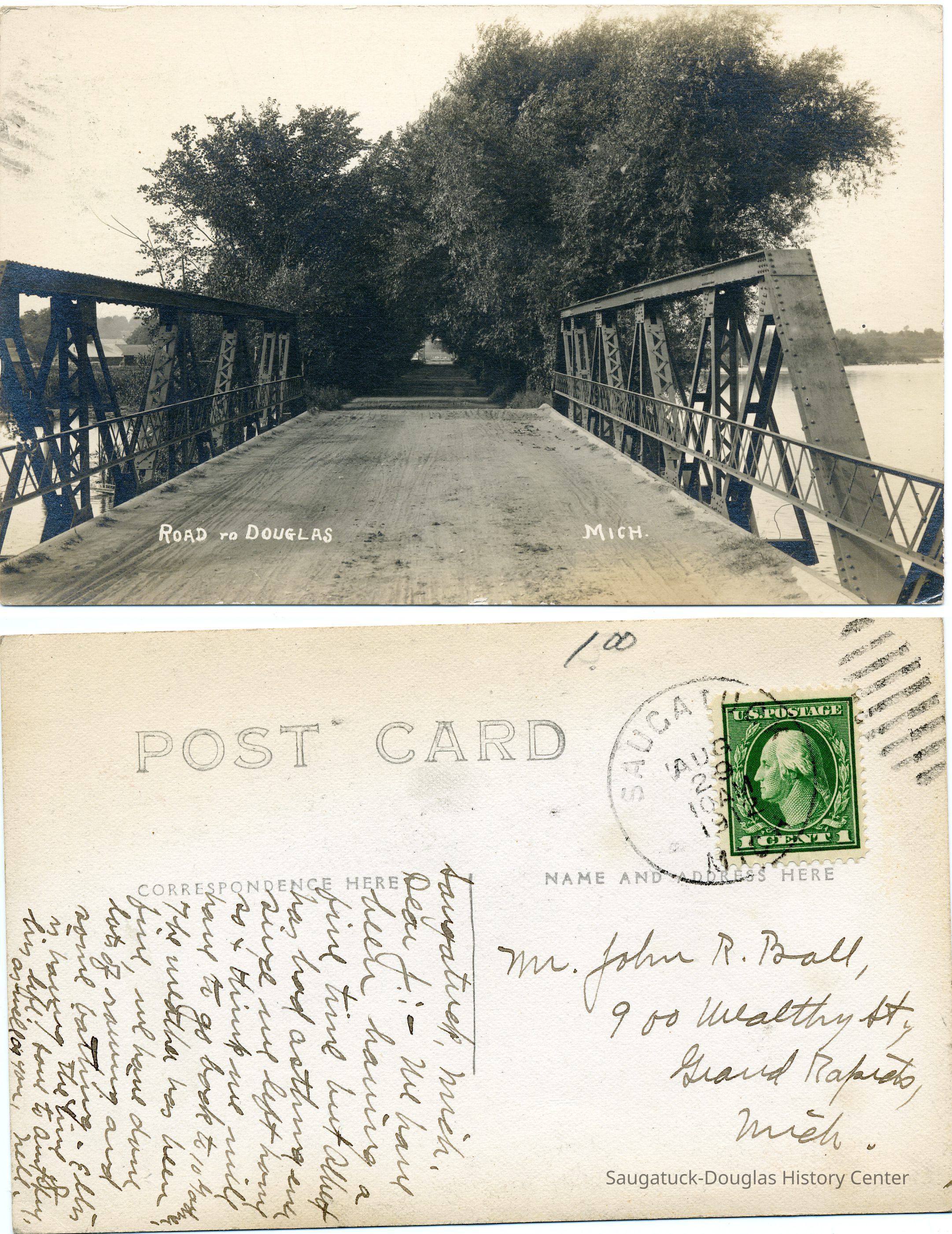 Digital images of the earthen causeway and swing bridge or draw bridge that once crossed the Kalamazoo River and connected Saugatuck and Douglas. This bridge was slightly further upriver than the present Blue Star Highway bridge that was built in 1937.Photograph Details